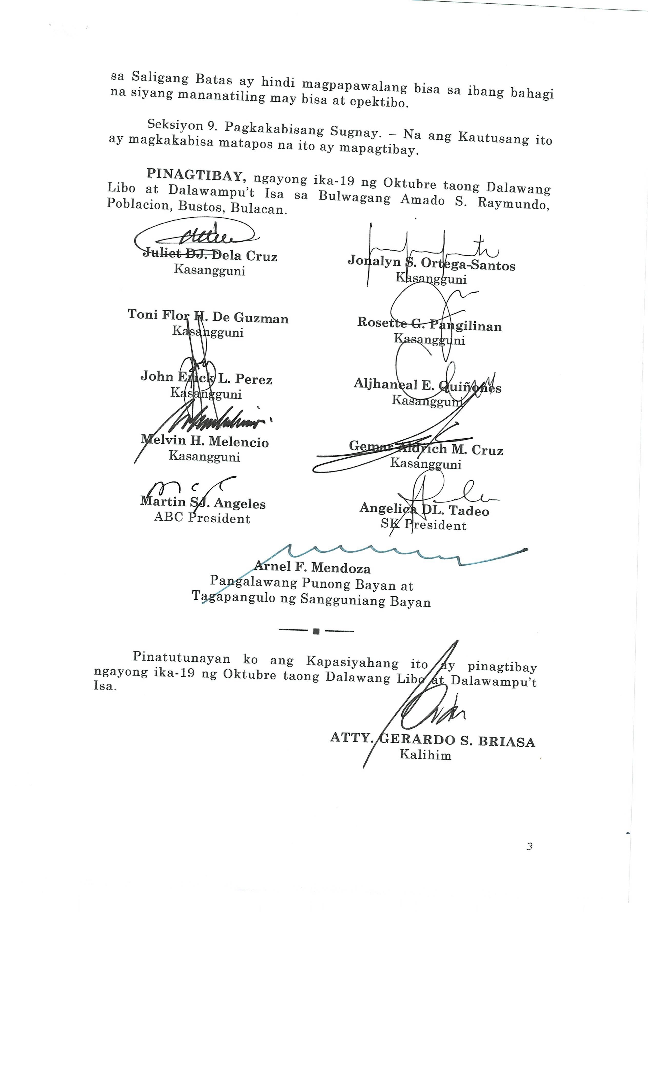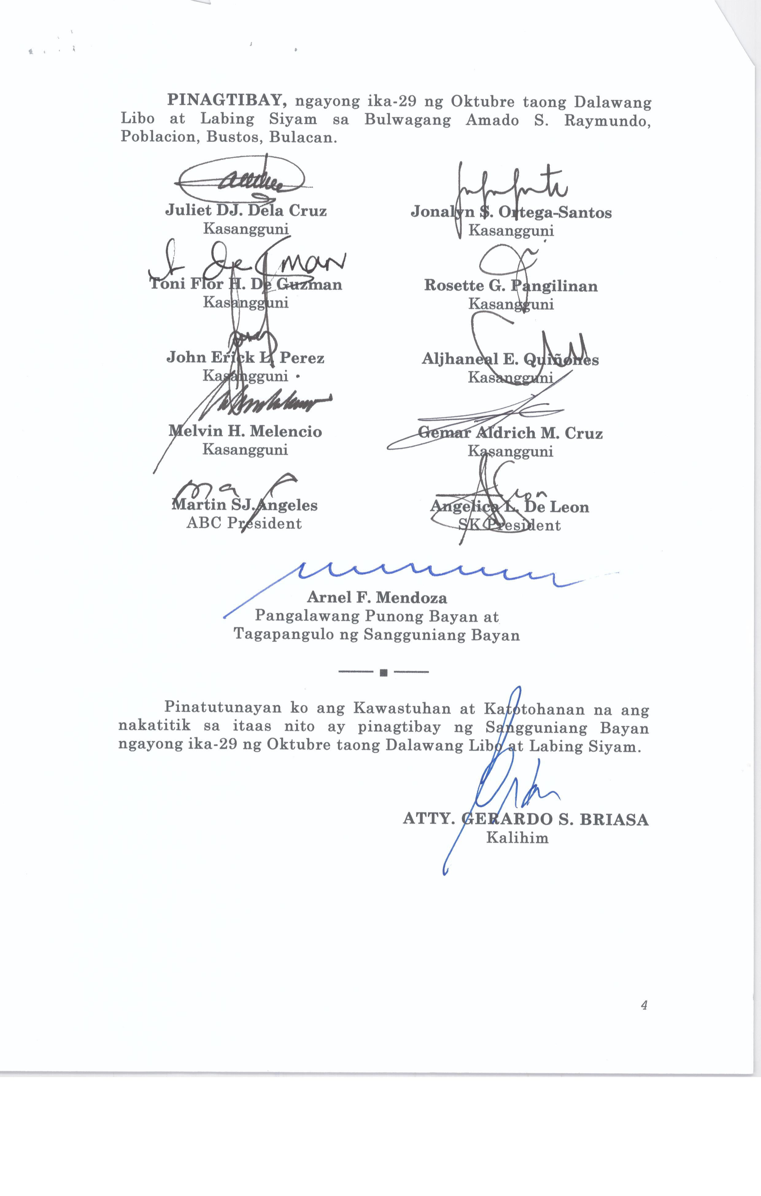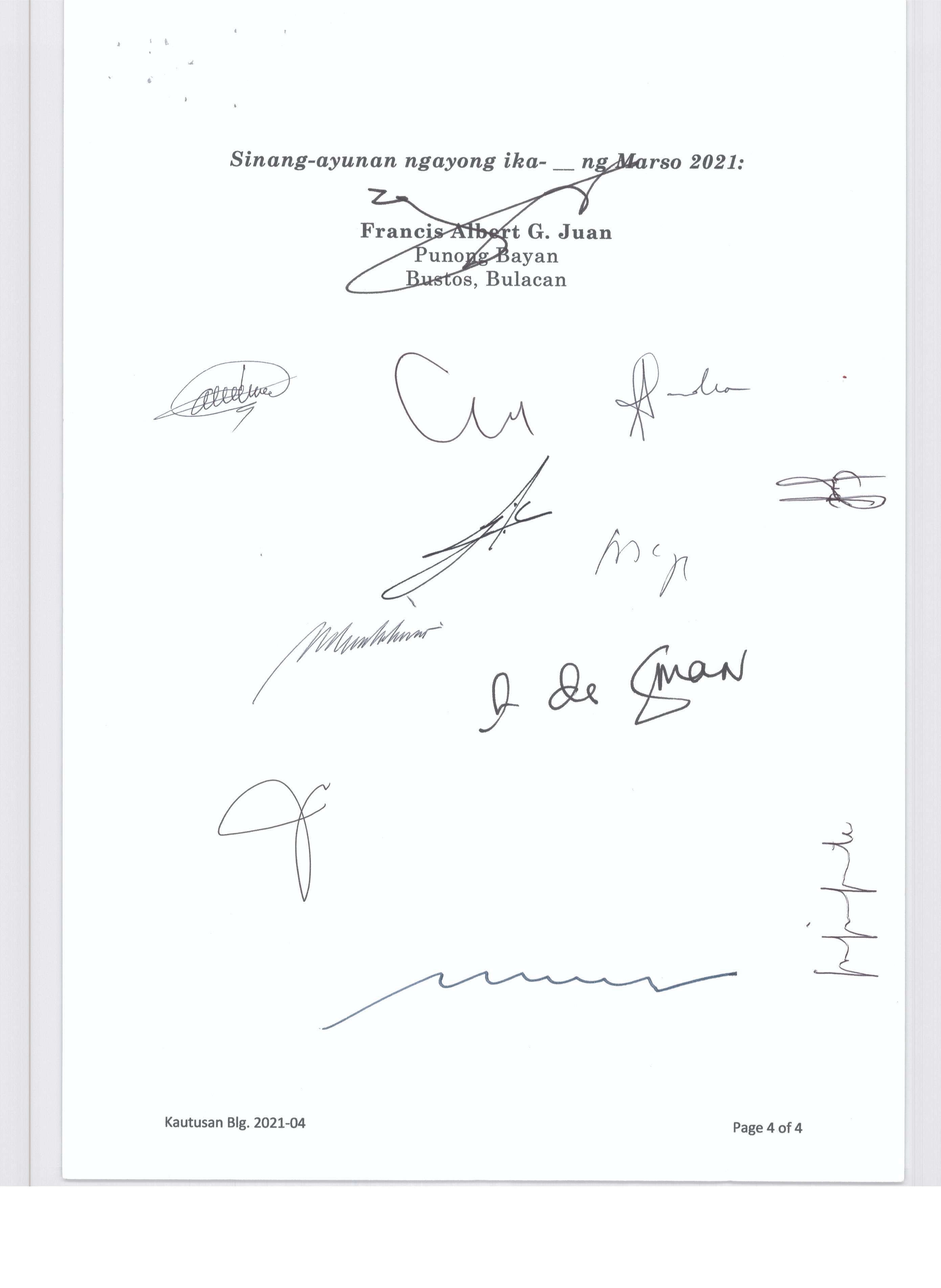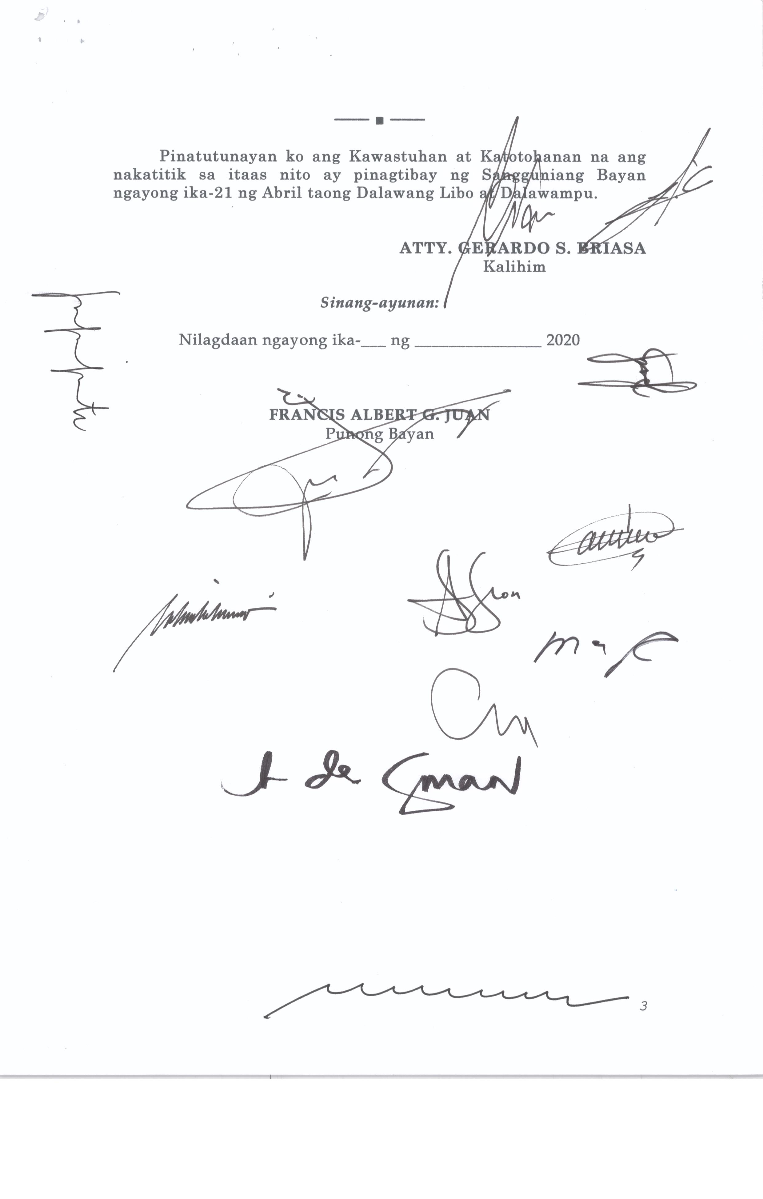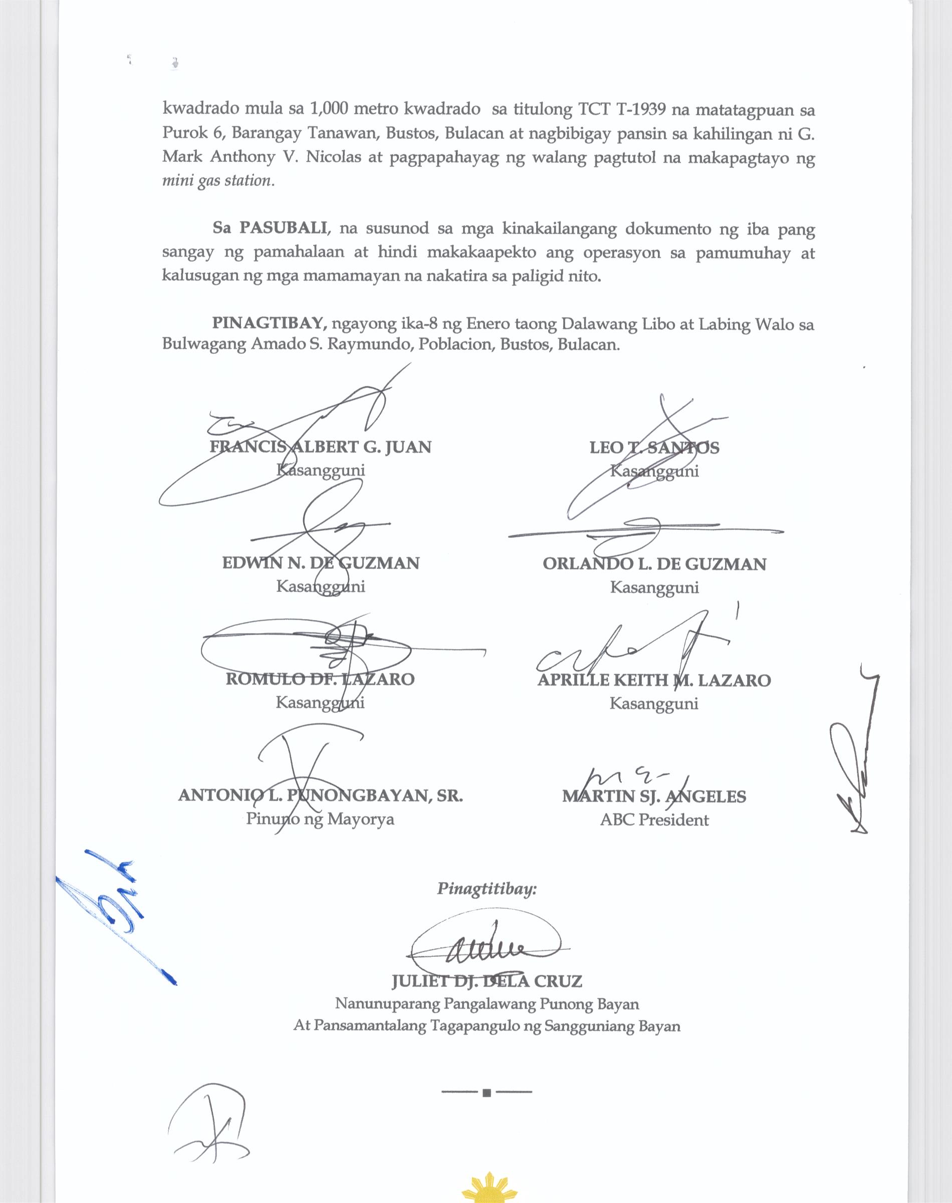 Pambayang Kautusang nagpapatibay sa kahilingan ni G. Adrian G. Santiago na muling pag-uuri ng lupa sa Barangay Bonga Menor Bustos Bulacan na may sukat na 2 ektarya buhat sa kabuuangsukat na 4.3 ektarya na isinasalarawan sa Transfer Certificate Title No. 039-2016006393 (LOT 4-A of the Subd. Plan PSD-03-177744)