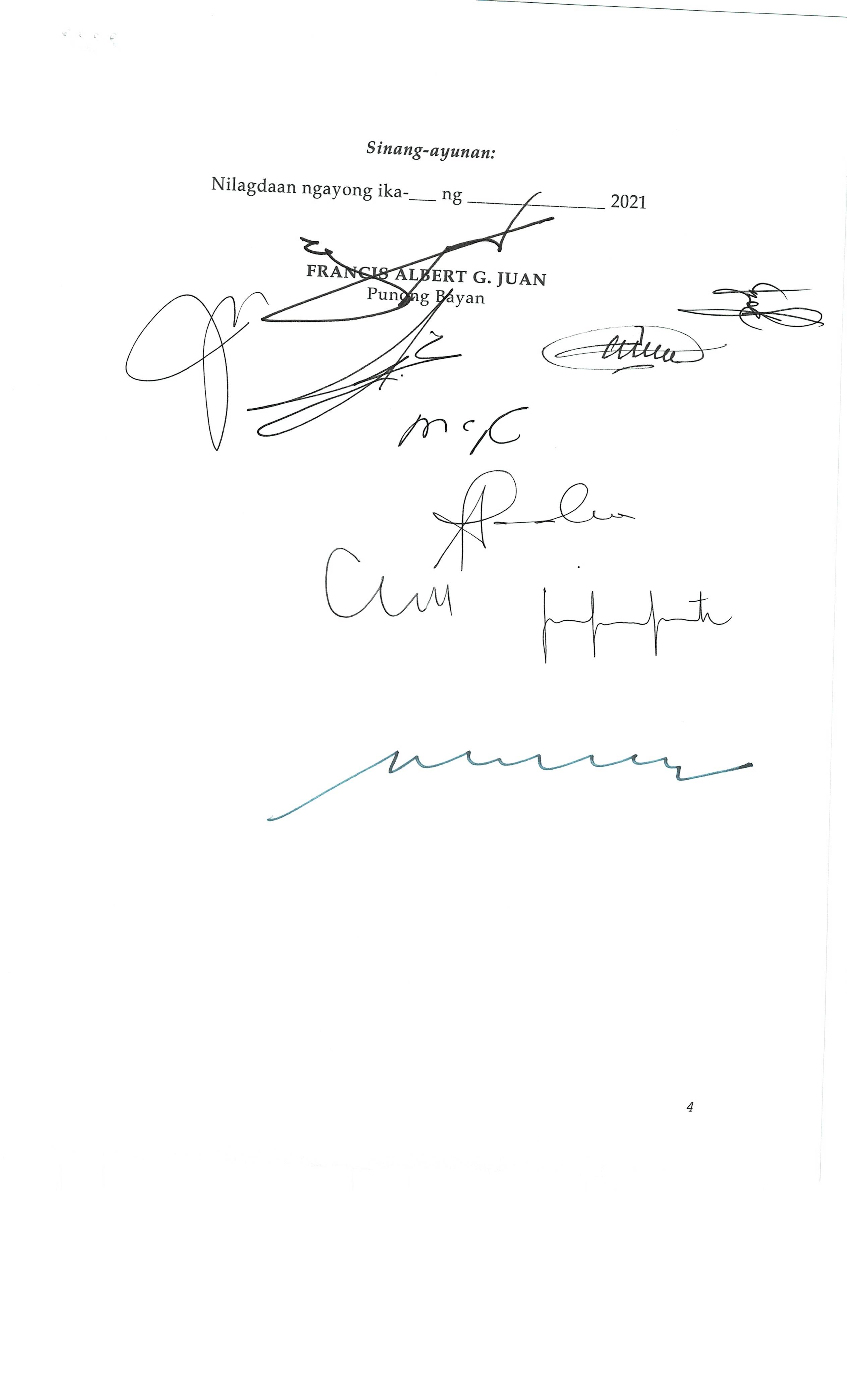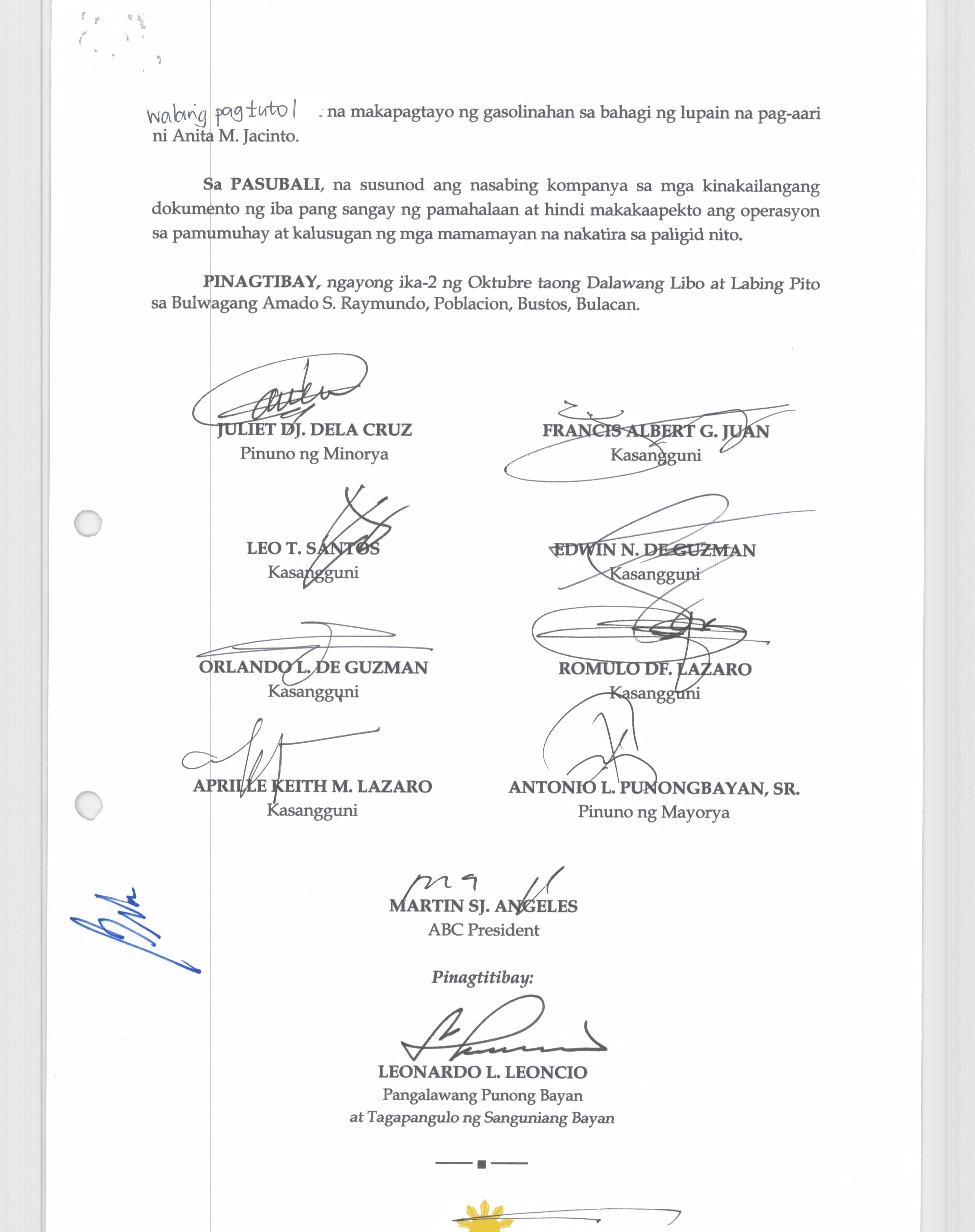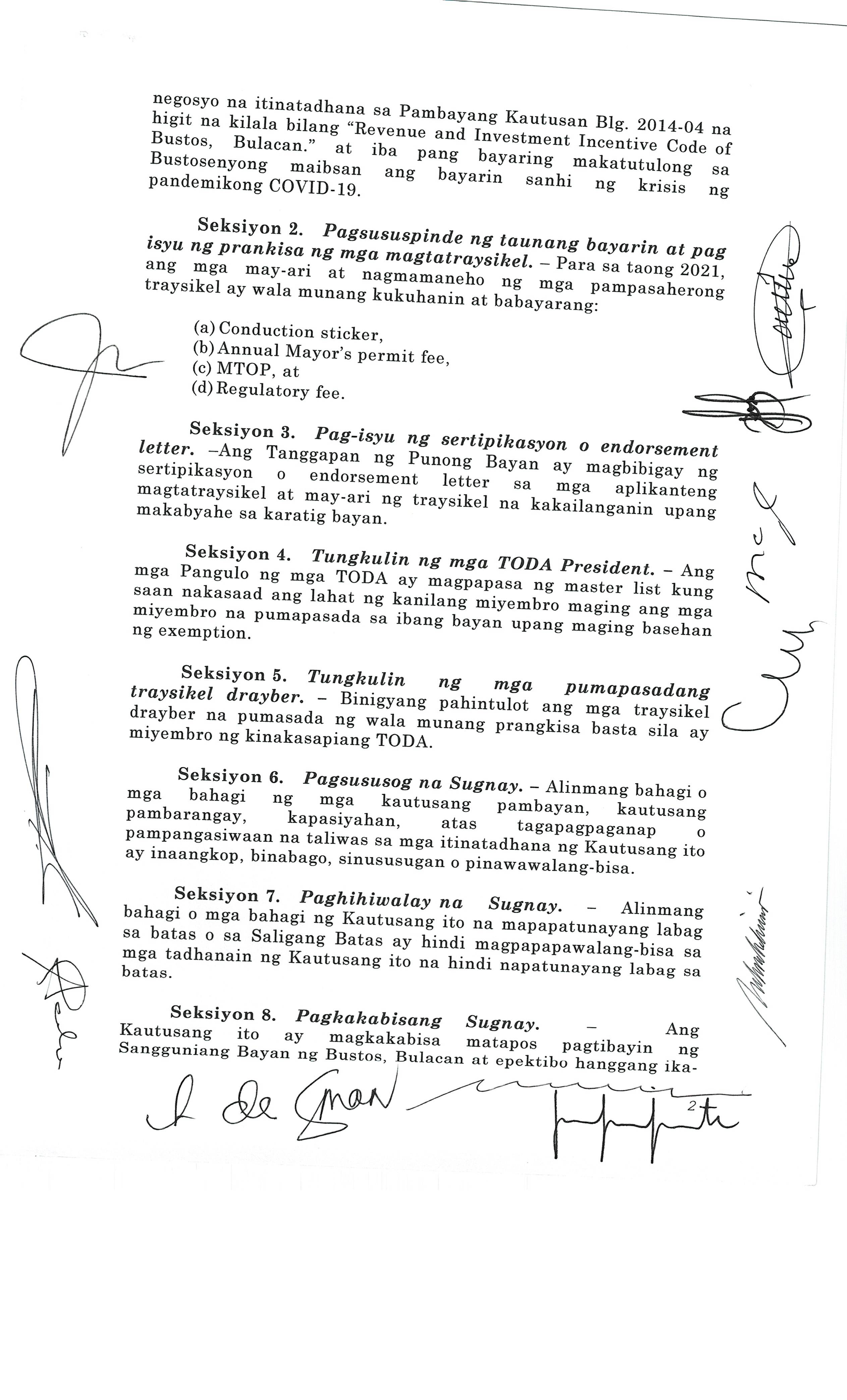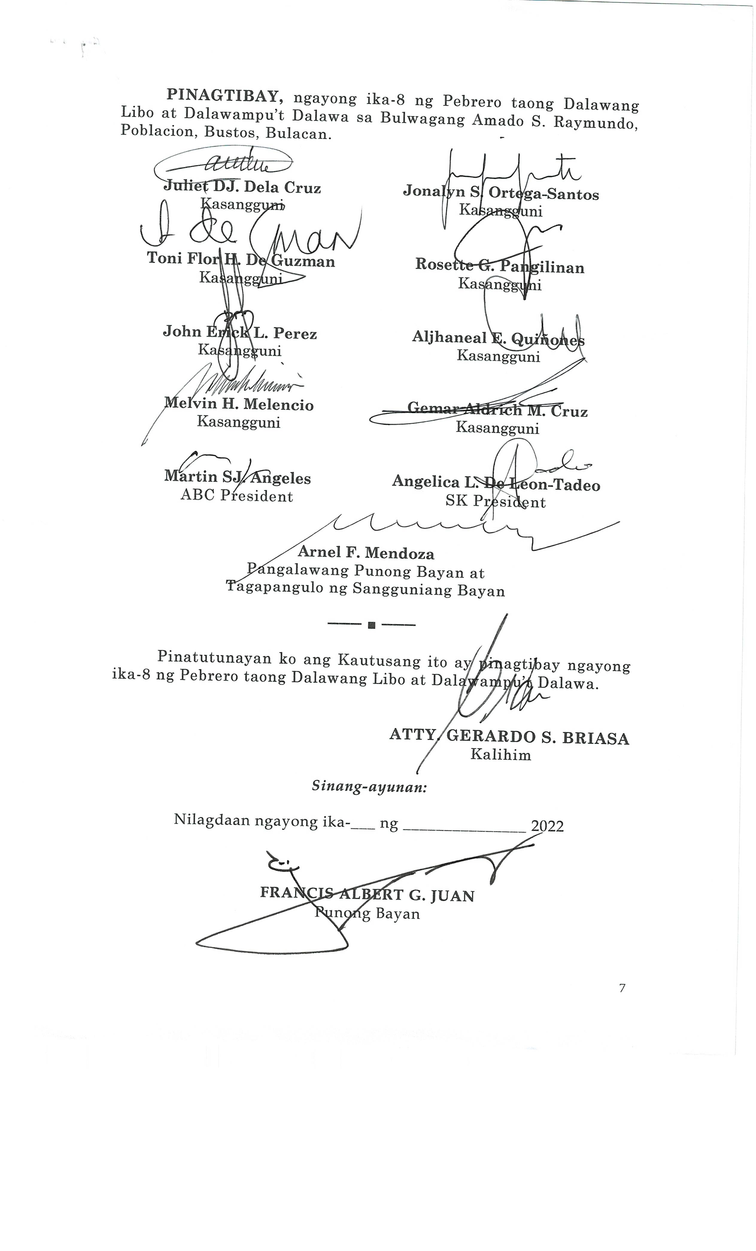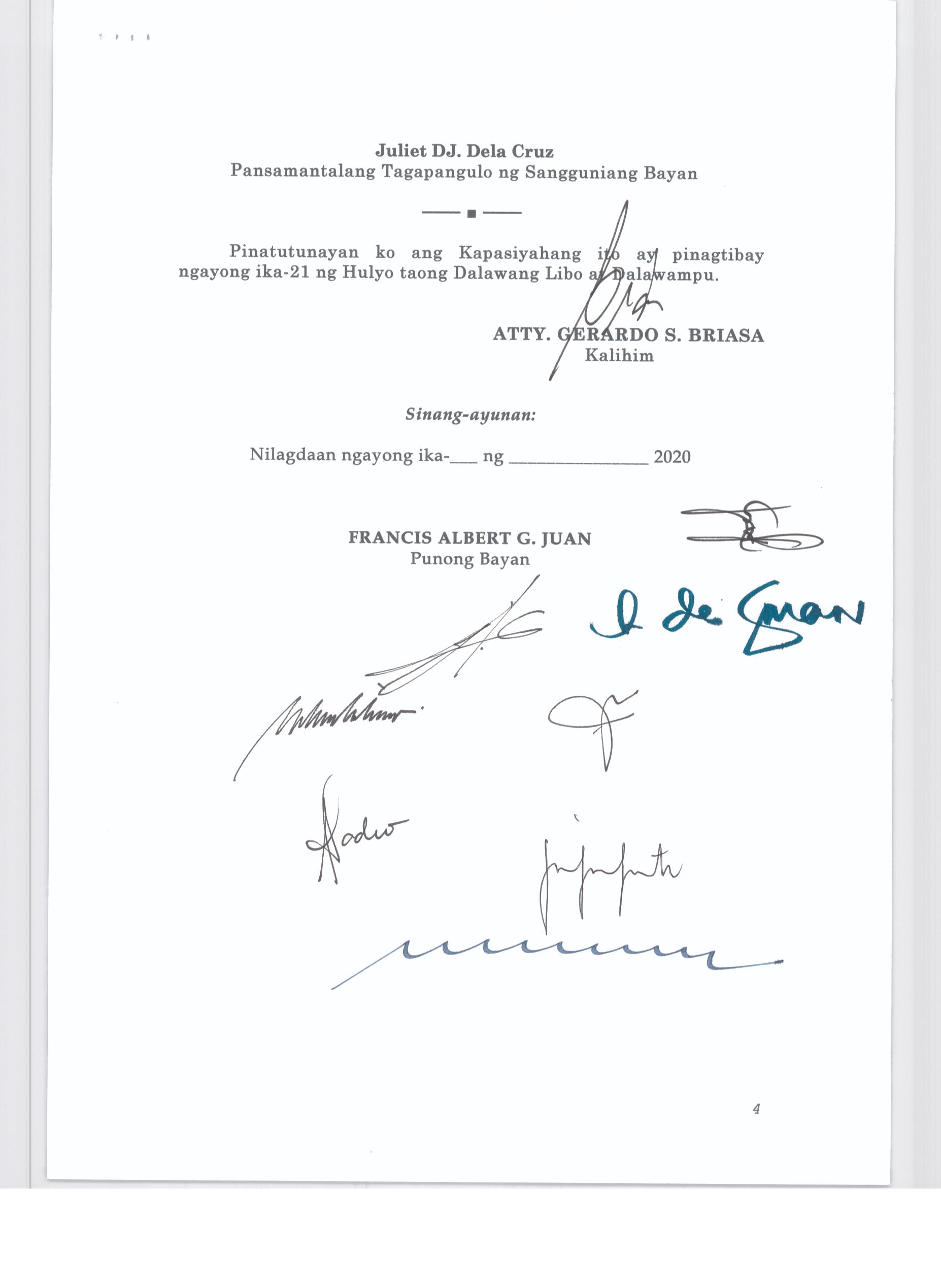 Pambayang Kautusang nagpapatibay sa kahilingan ni G. Adrian G. Santiago na muling pag-uuri ng lupa sa Barangay Bonga Menor Bustos Bulacan na may sukat na 2 ektarya buhat sa kabuuangsukat na 4.3 ektarya na isinasalarawan sa Transfer Certificate Title No. 039-2016006393 (LOT 4-A of the Subd. Plan PSD-03-177744)