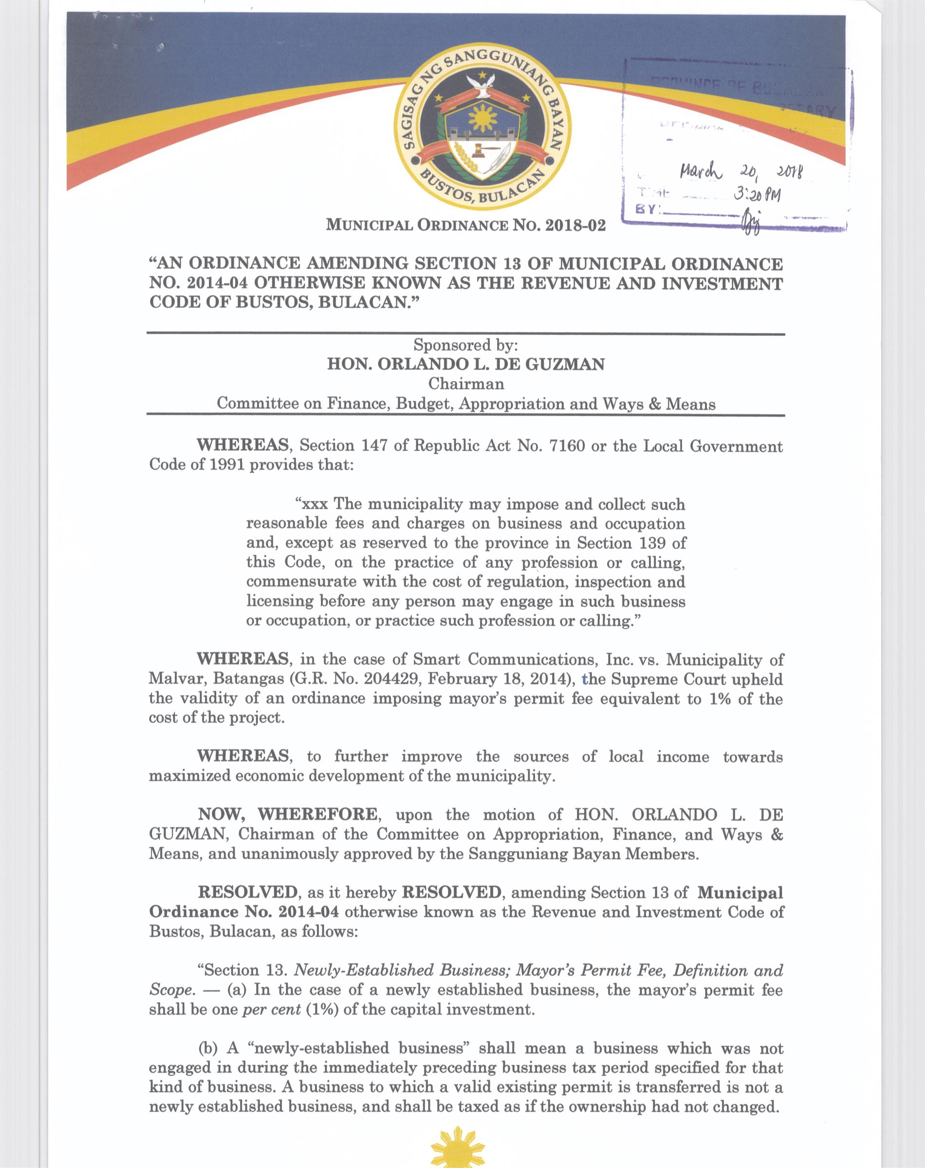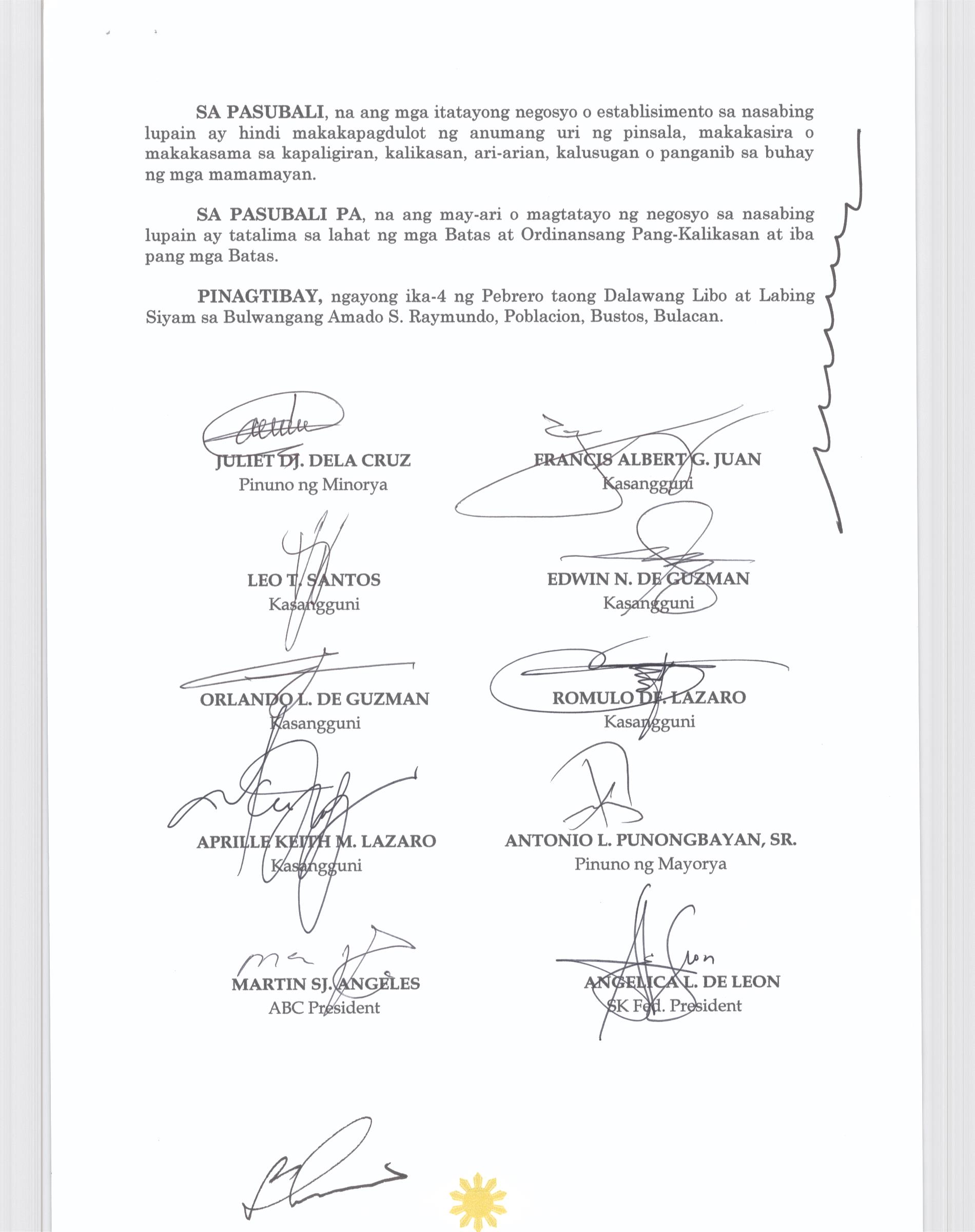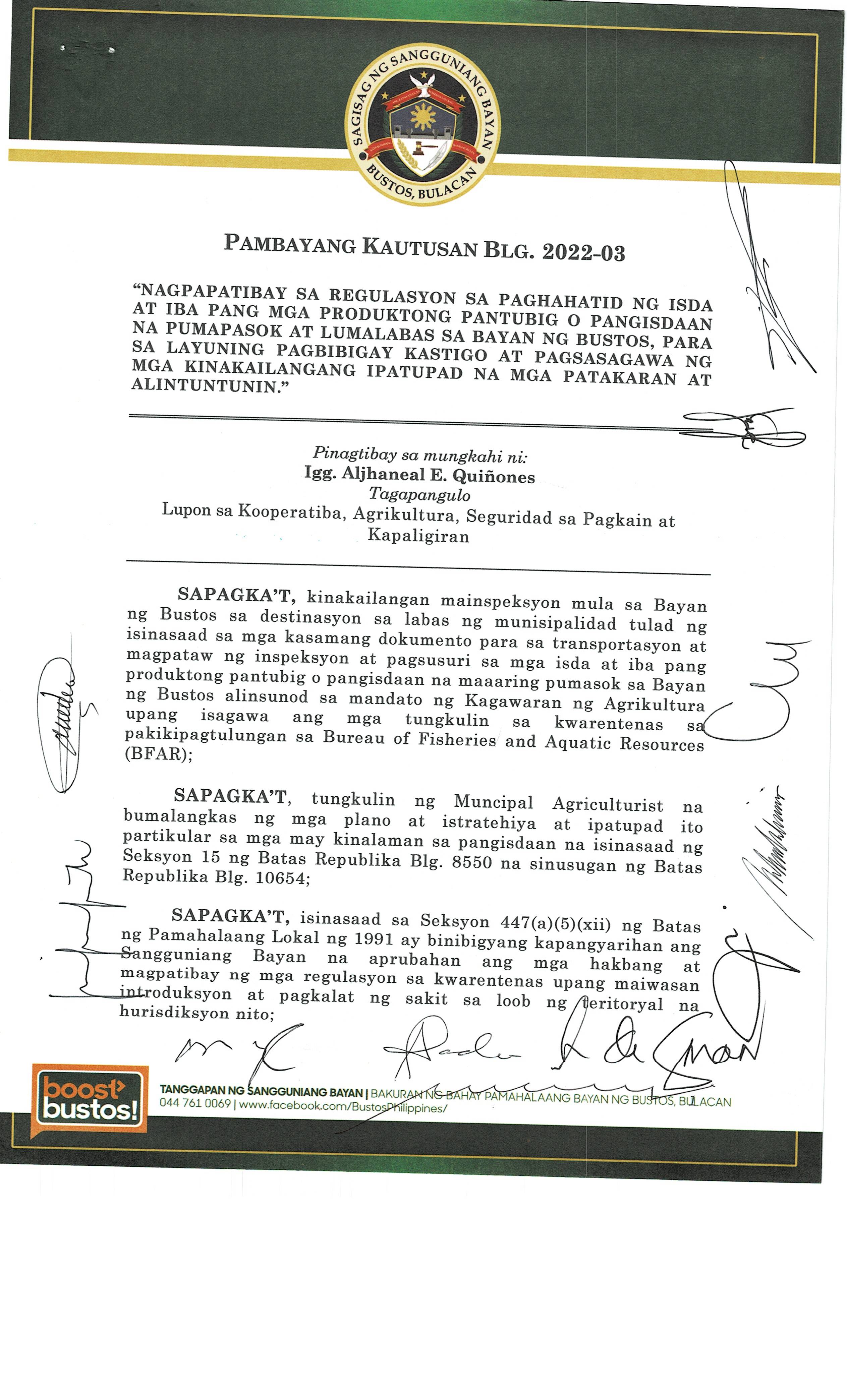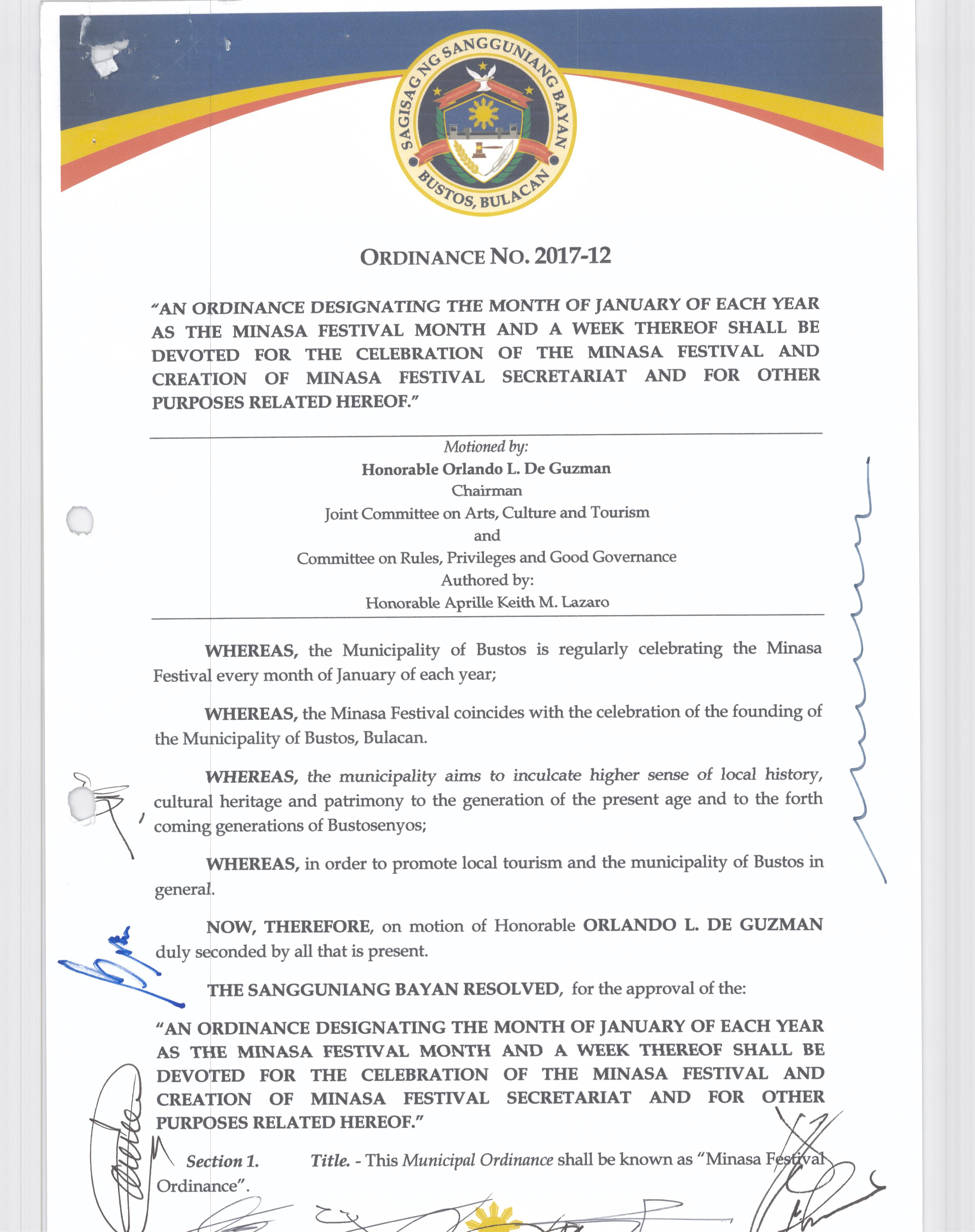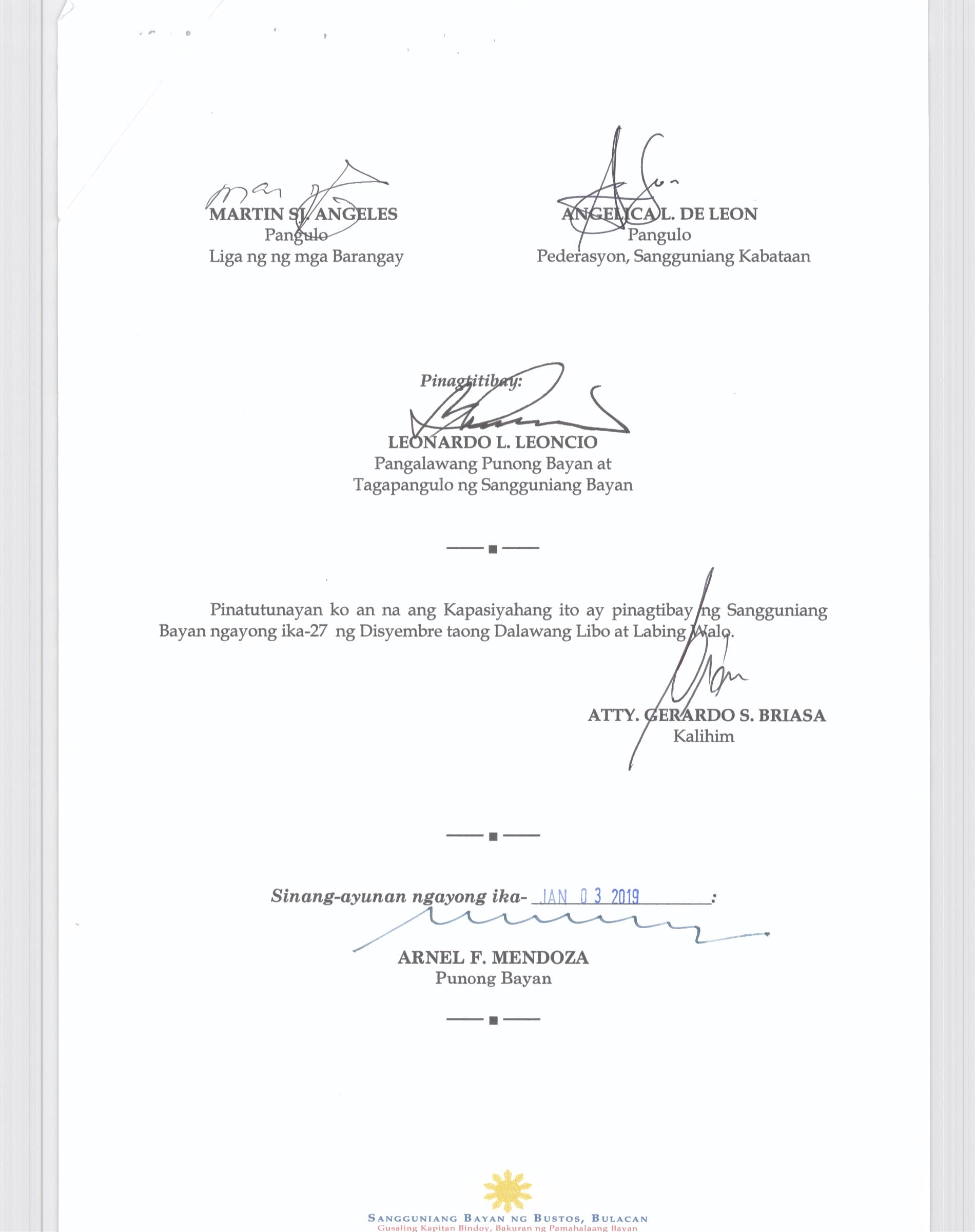 Browse through the official ordinances passed by the Sangguniang Bayan of Bustos, Bulacan