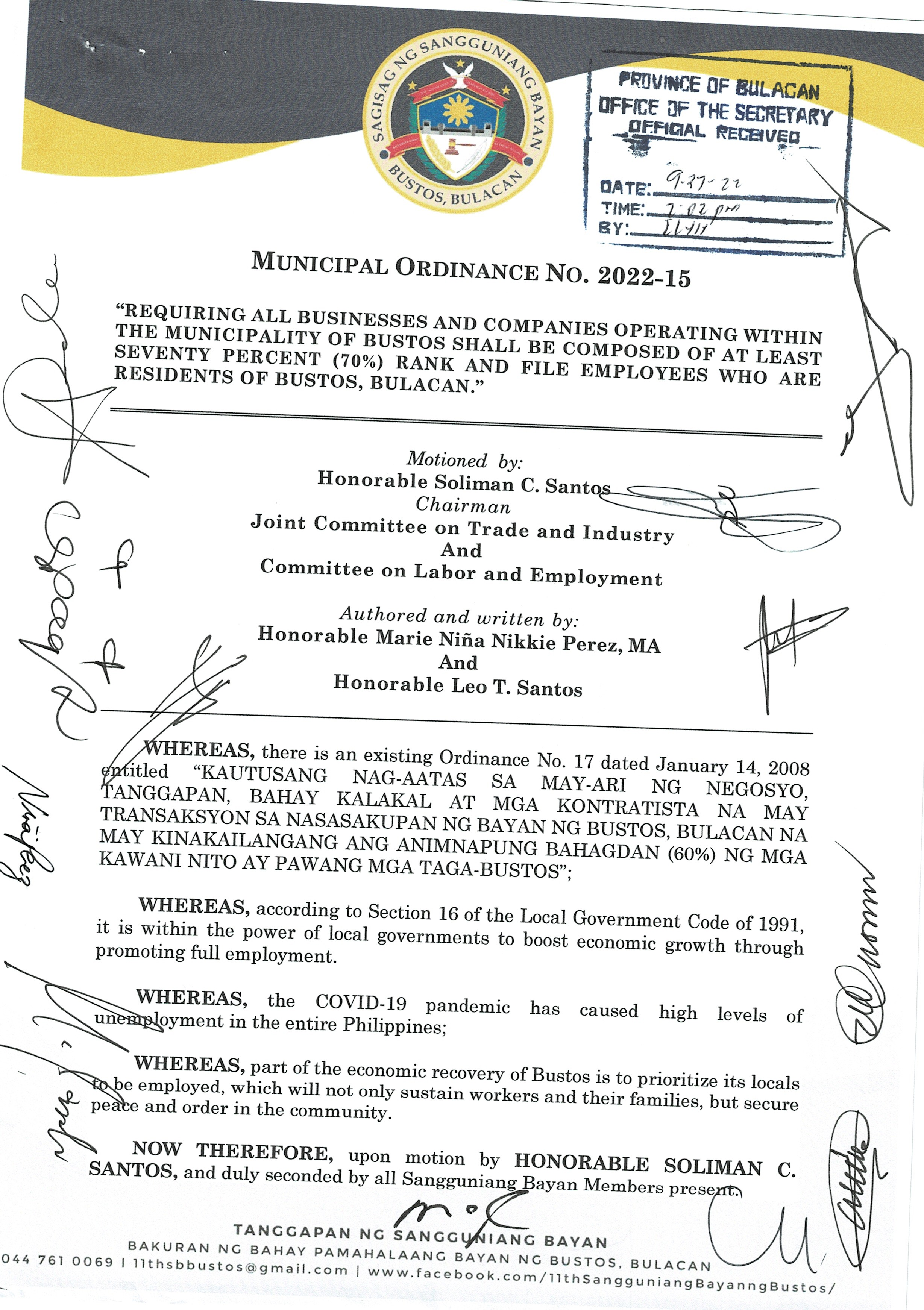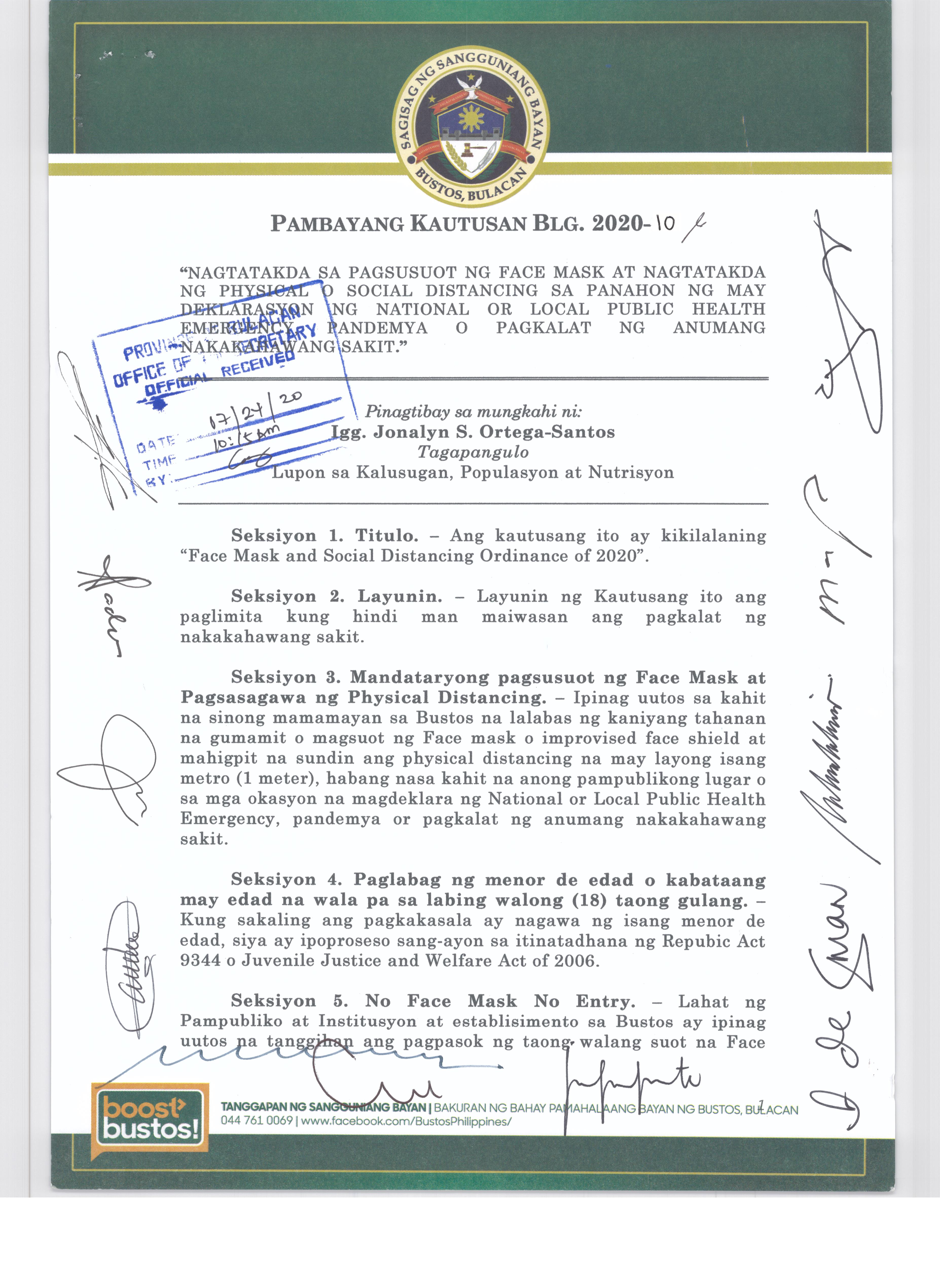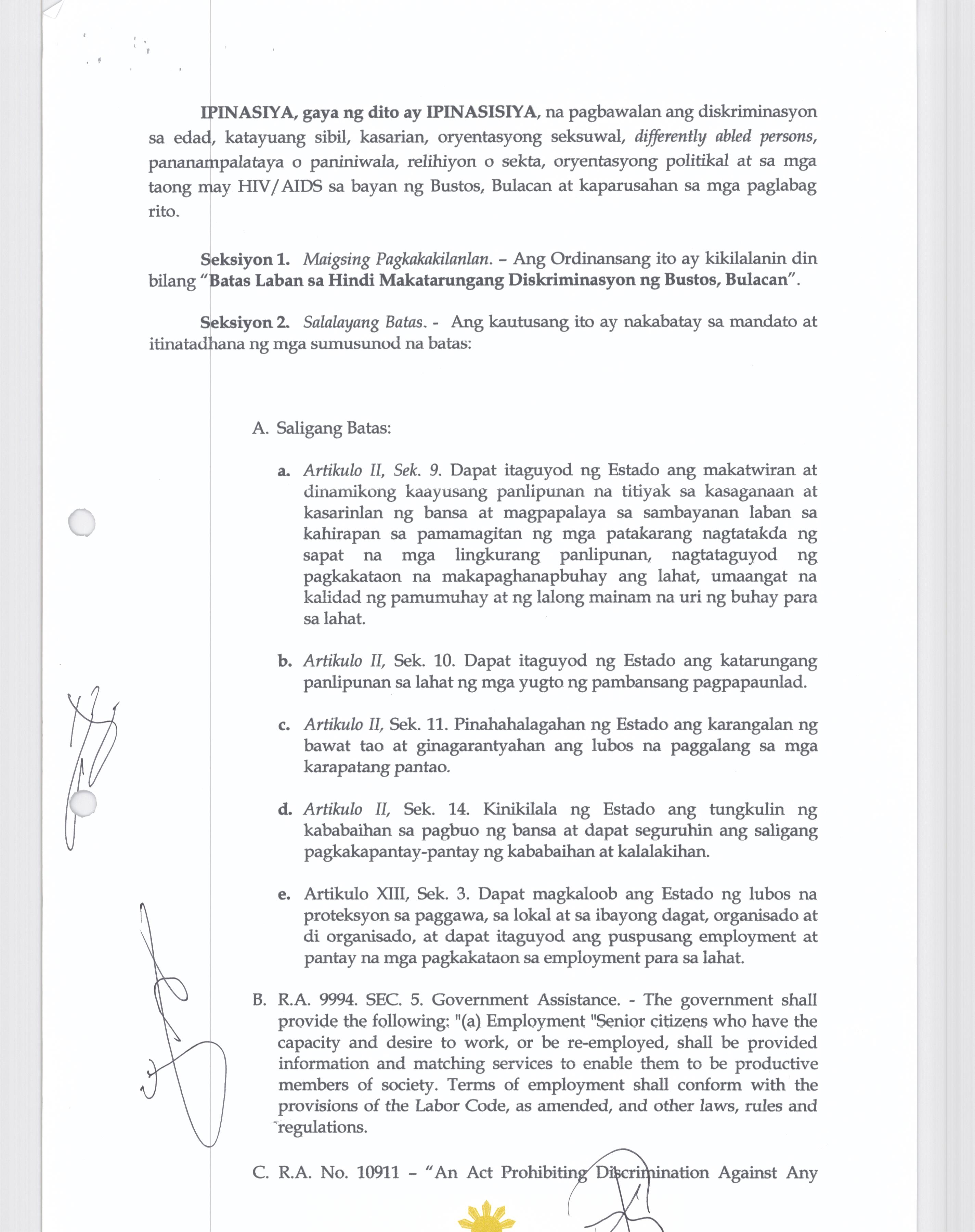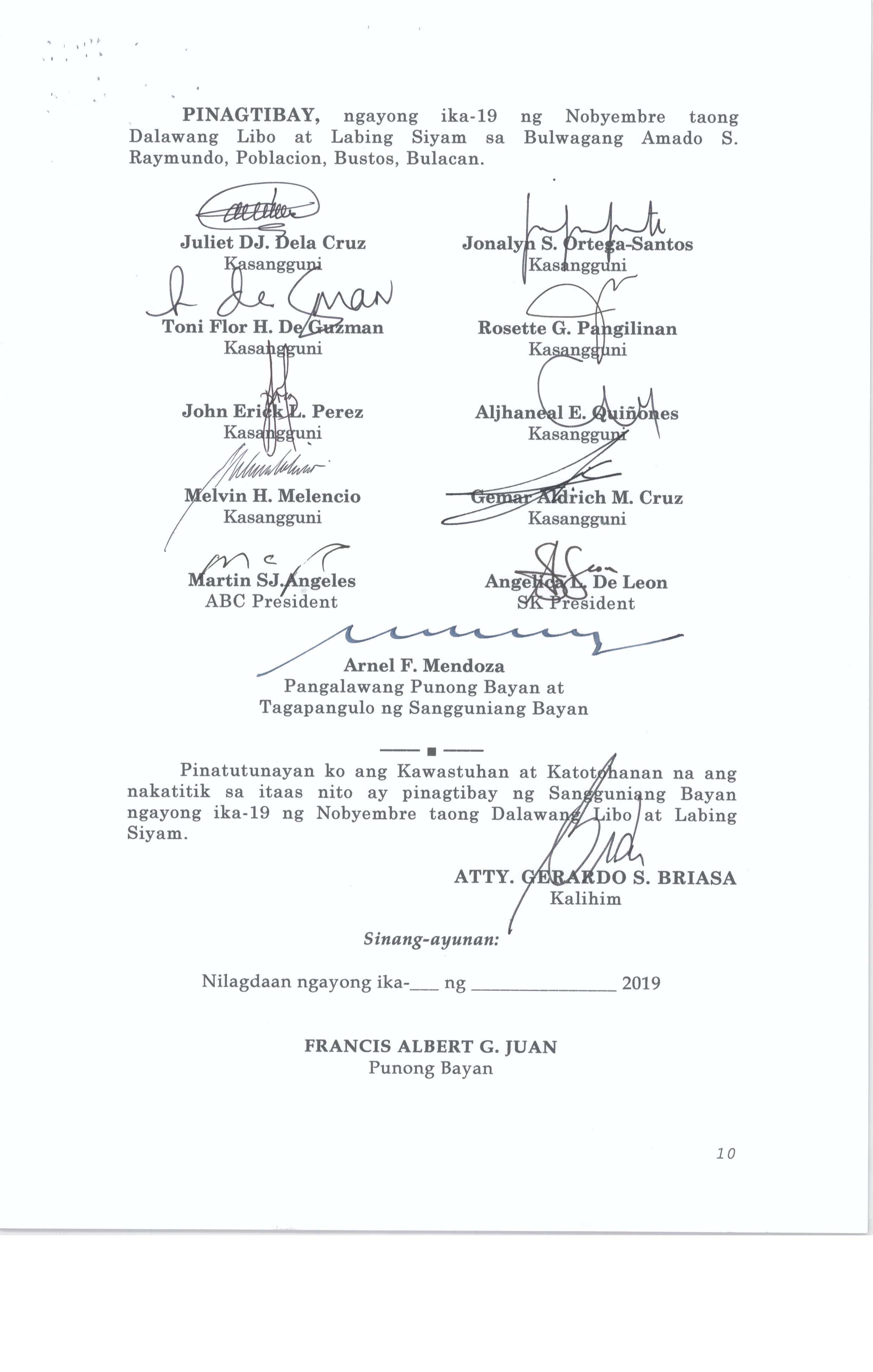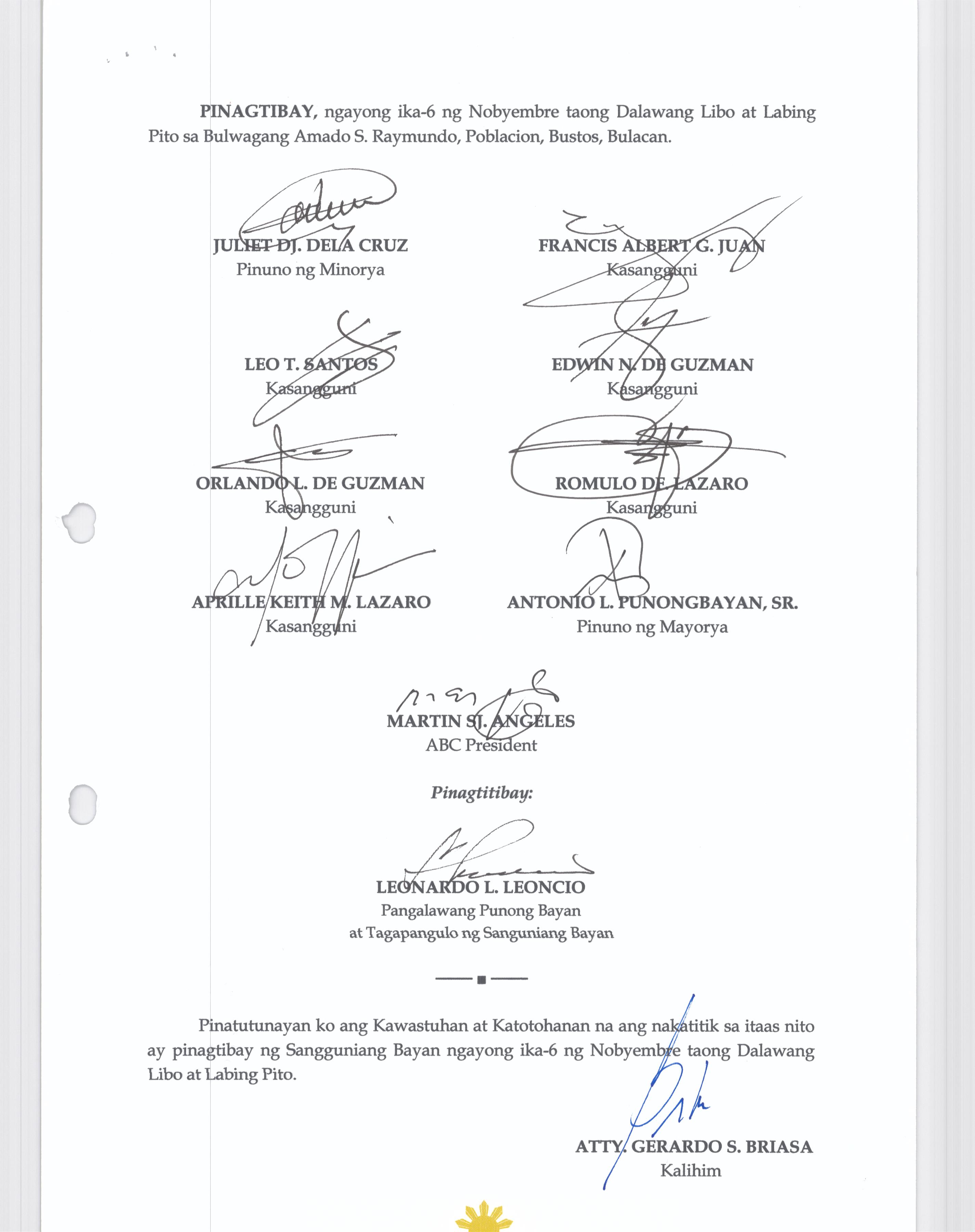 Browse through the official ordinances passed by the Sangguniang Bayan of Bustos, Bulacan