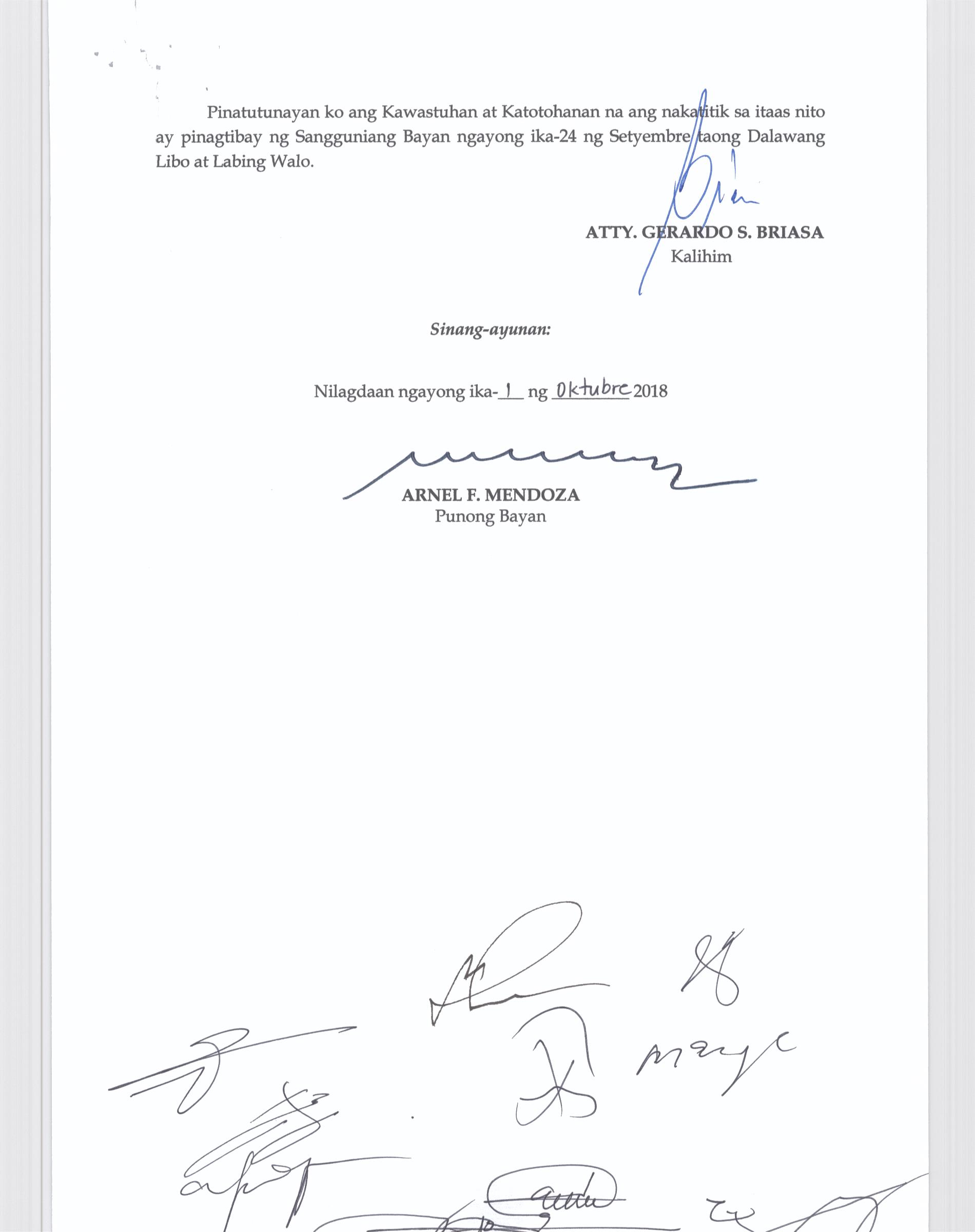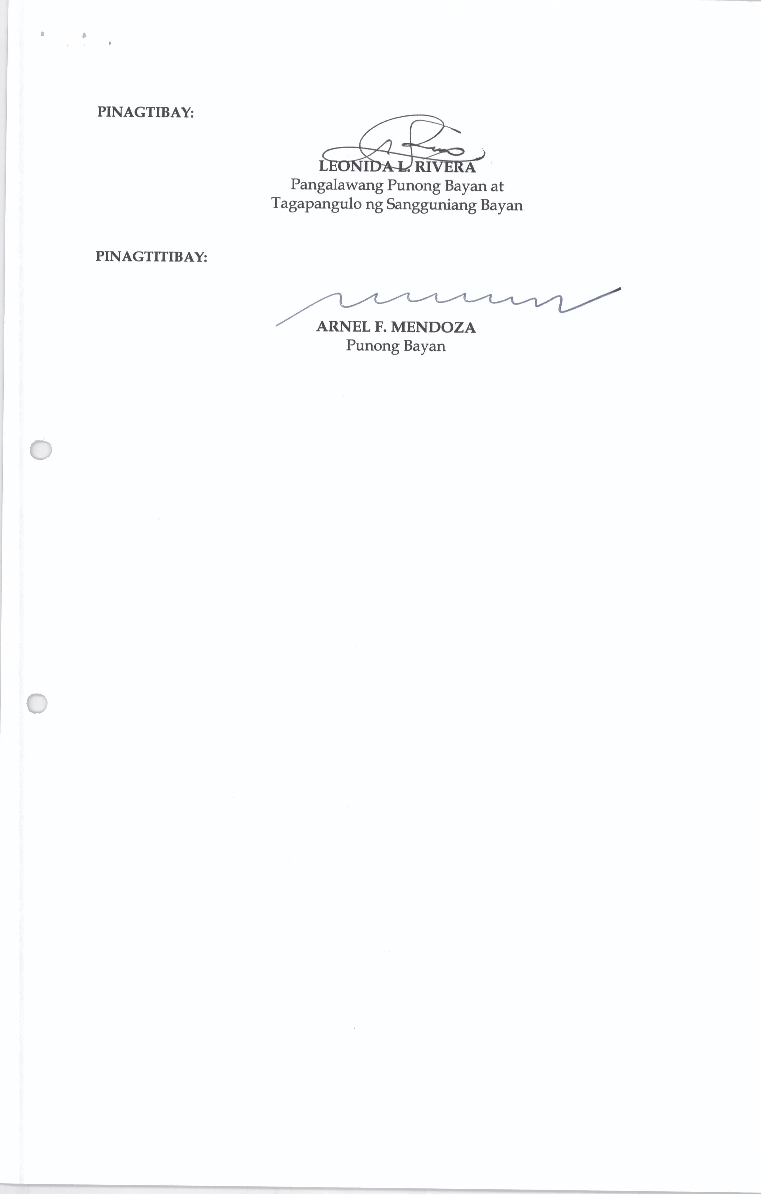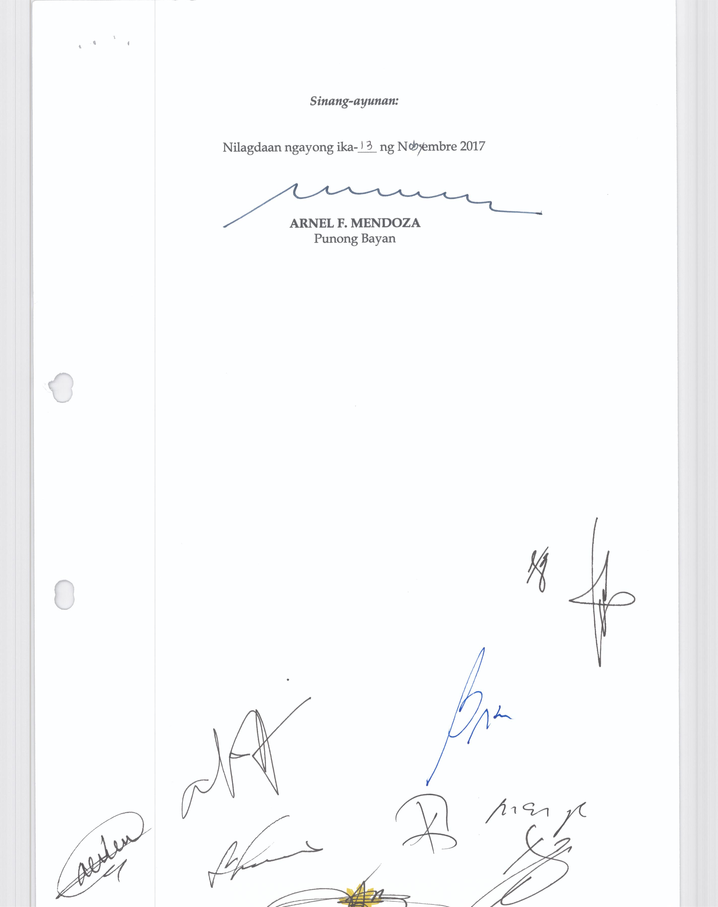 Isang Kautusang nagpapatibay sa Paglikha ng Posisyon ng Municipal risk Reduction and Management Officer lll na may salary Grade 18 (1) sa Ilalim ng Tanggapan ng Punong Bayan.
