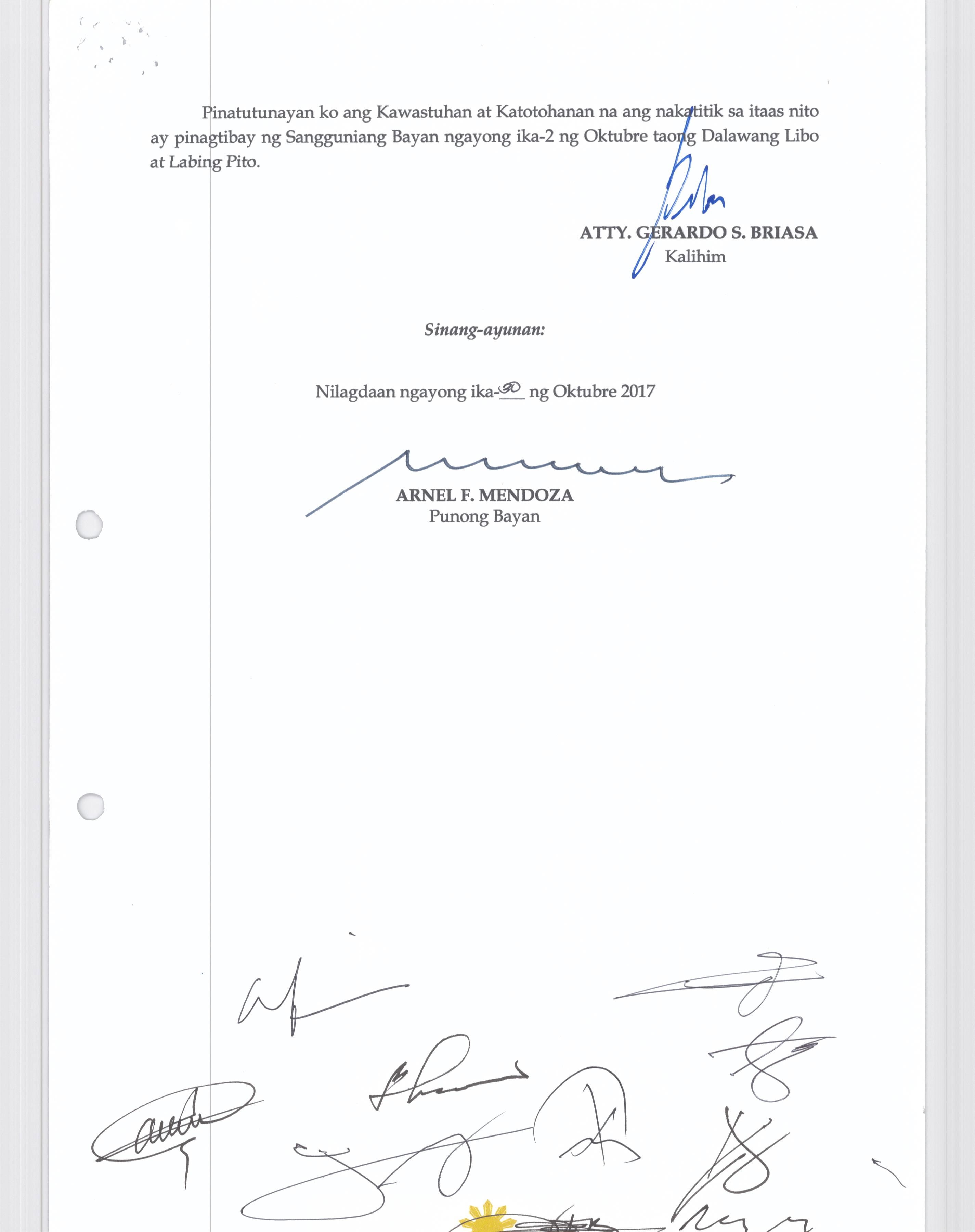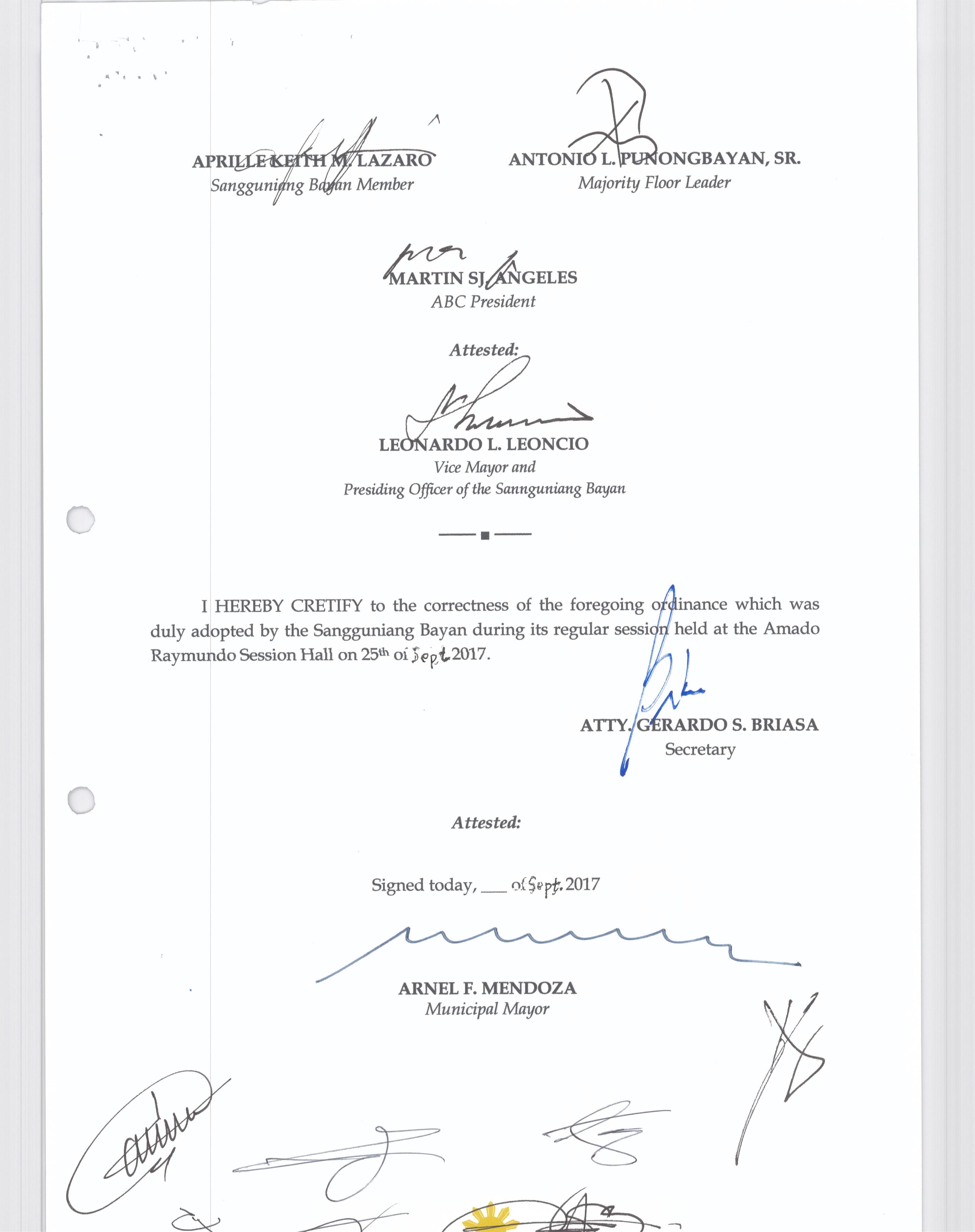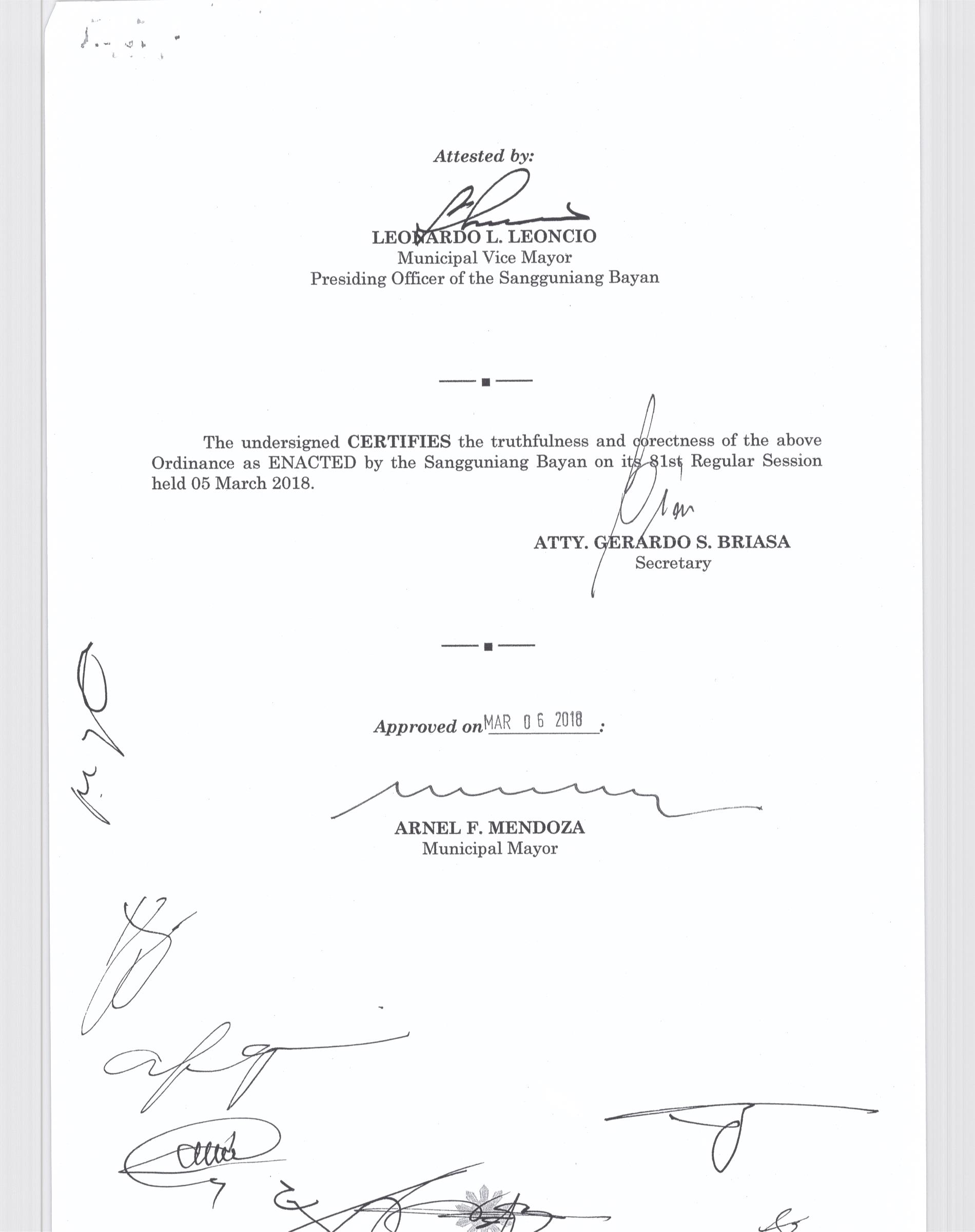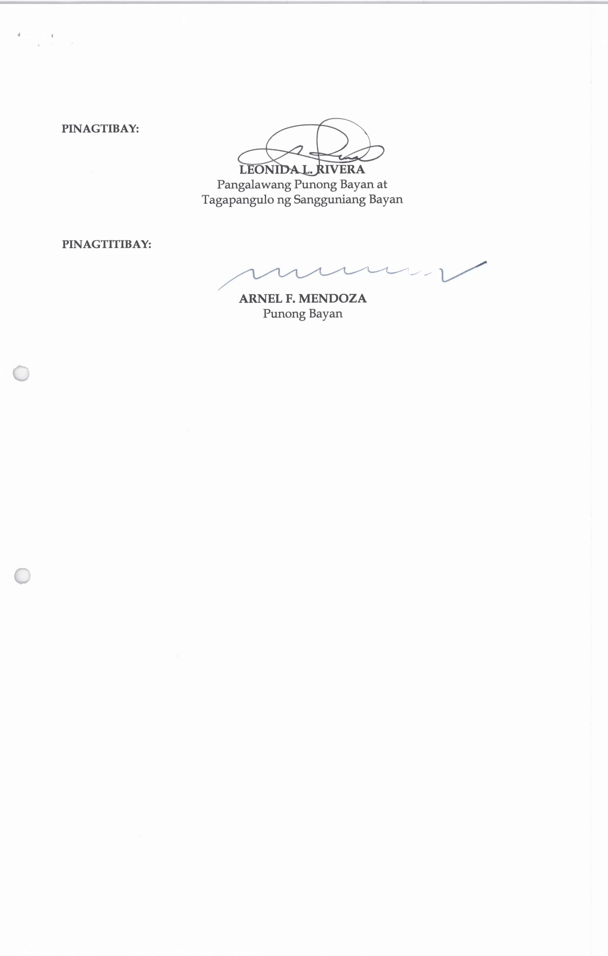 Isang Kautusang nagpapatibay sa Paglikha ng Posisyon ng Municipal risk Reduction and Management Officer lll na may salary Grade 18 (1) sa Ilalim ng Tanggapan ng Punong Bayan.