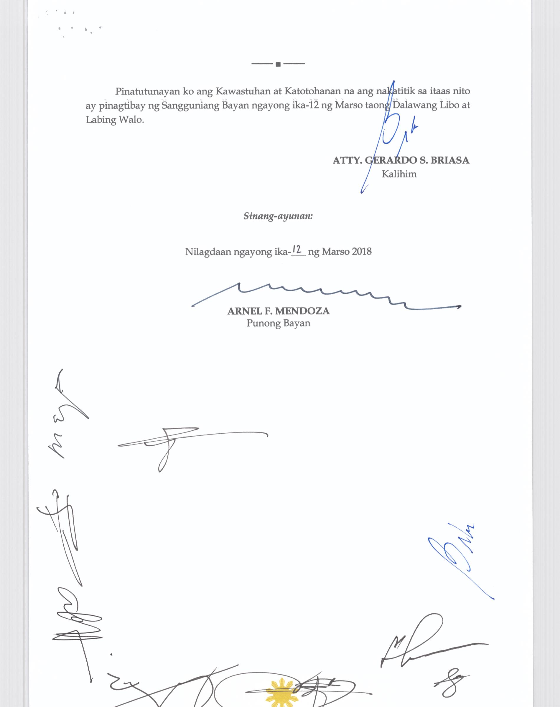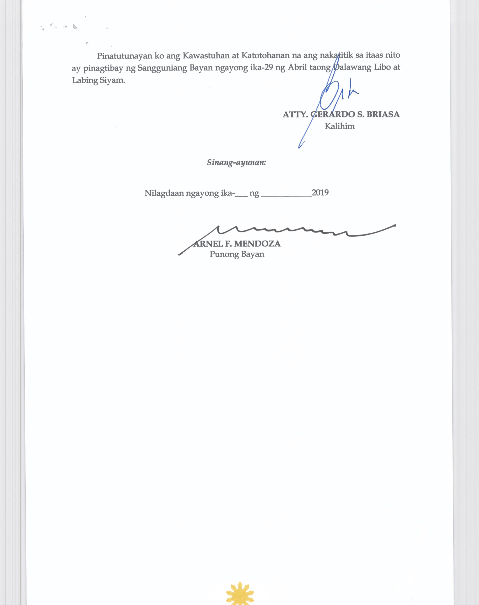 Isang Kautusang Nagpapatibay sa bagong Disenyo ng Sagisag ng Sangguniang Bayan