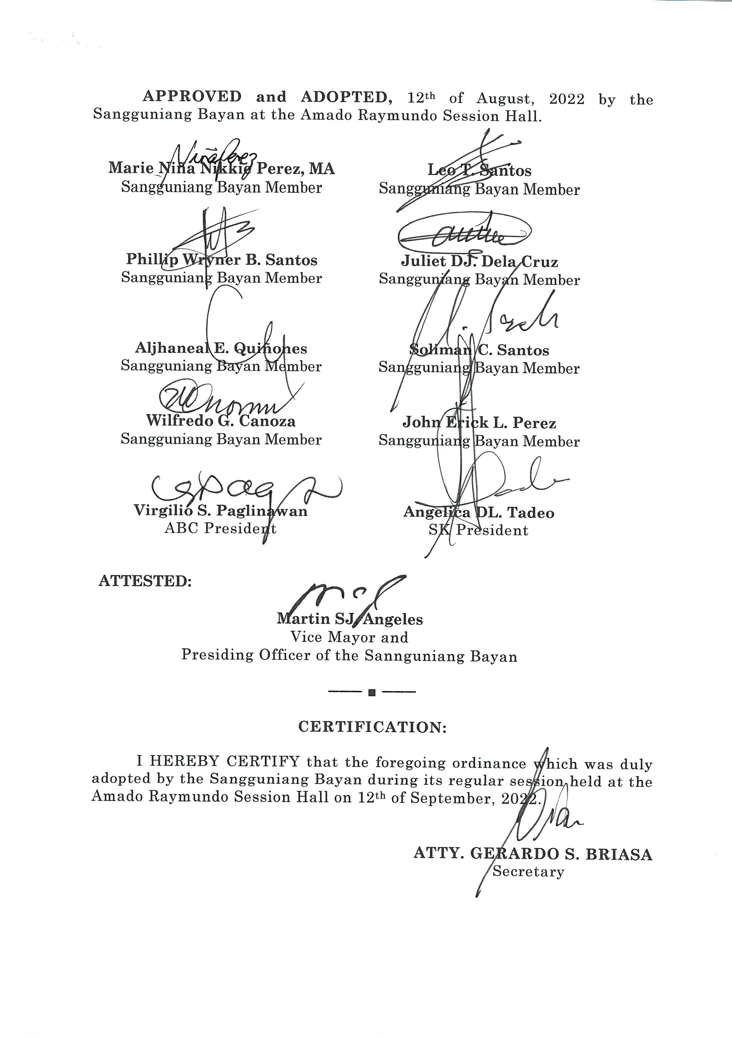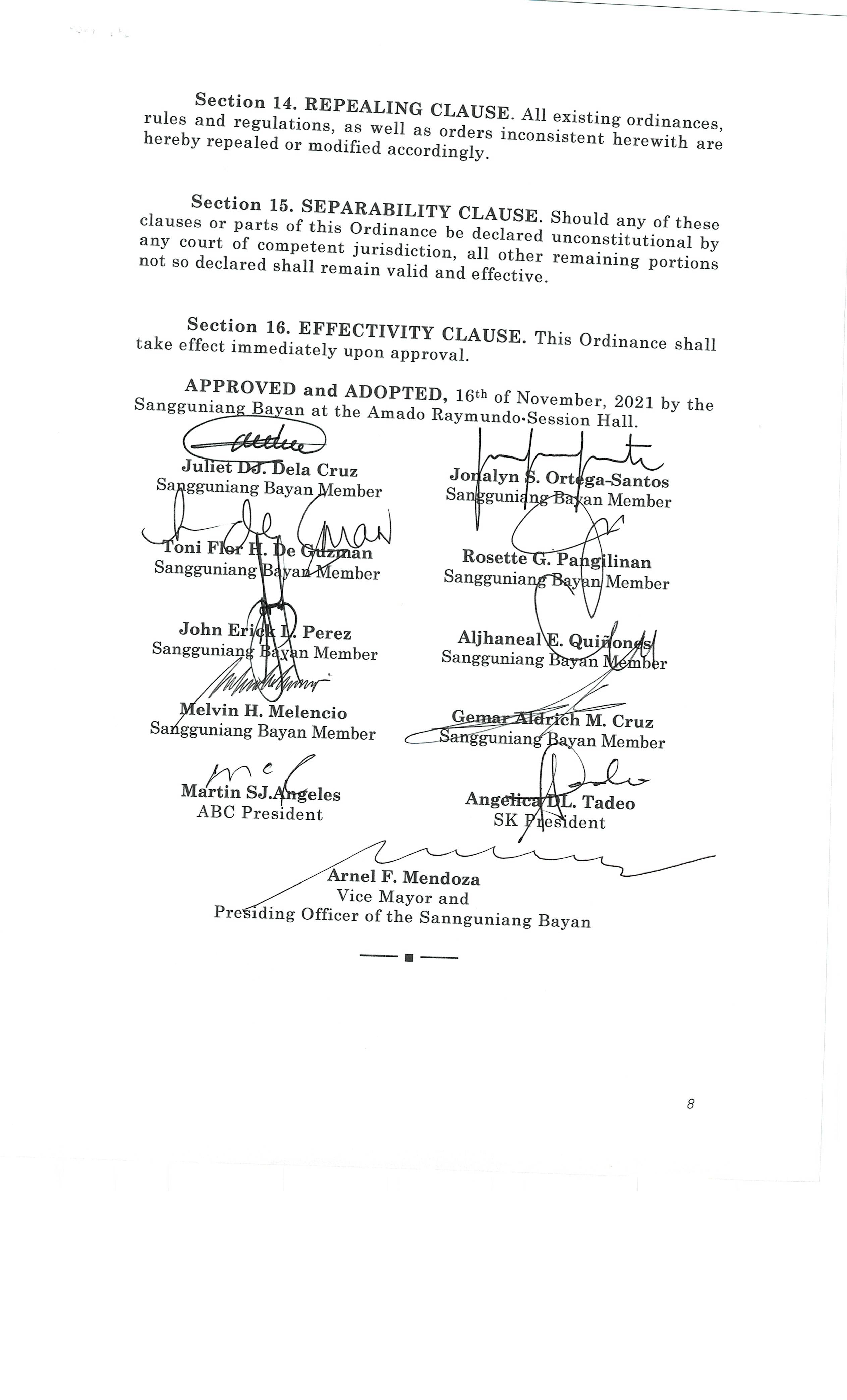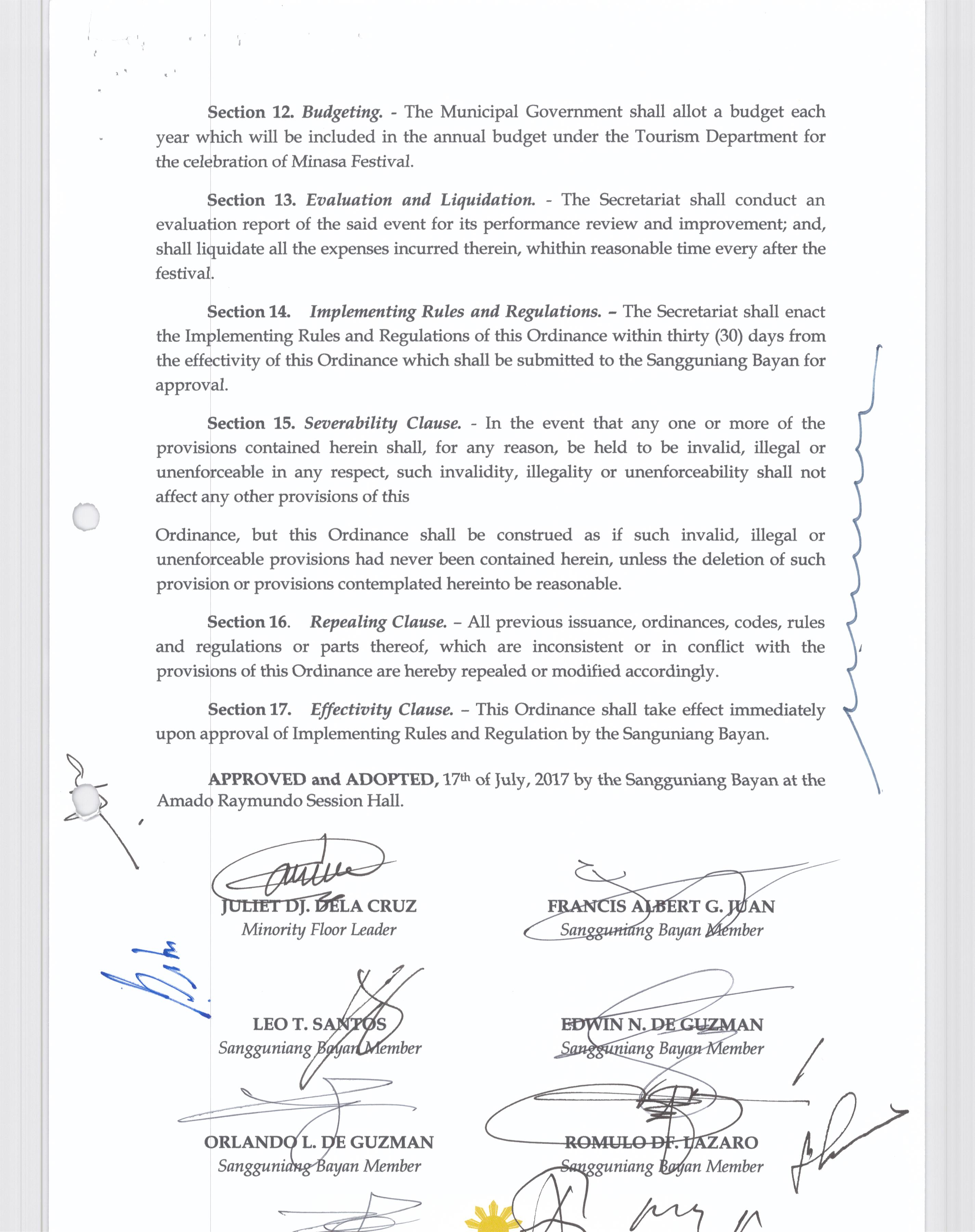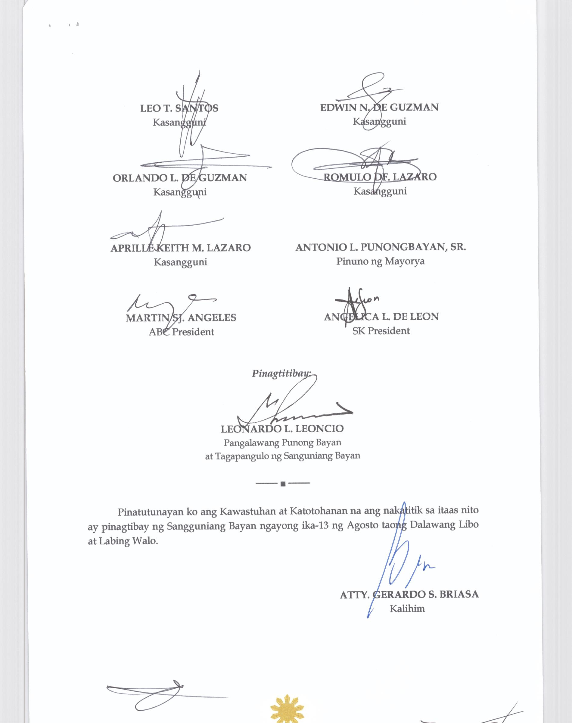 Isang kautusang nagpapatibay sa kahilingan ng Mega land Estate Corporation, sa pamamagitan ng Tanggapan ng Punong Bayan na muling pag-uuri (reclassification) ng 45 ektaryang lupain na sumasaklaw sa Barangay Liciada, Buisan at Camachilihan mula gamit agricultural tungo sa Industriyal.