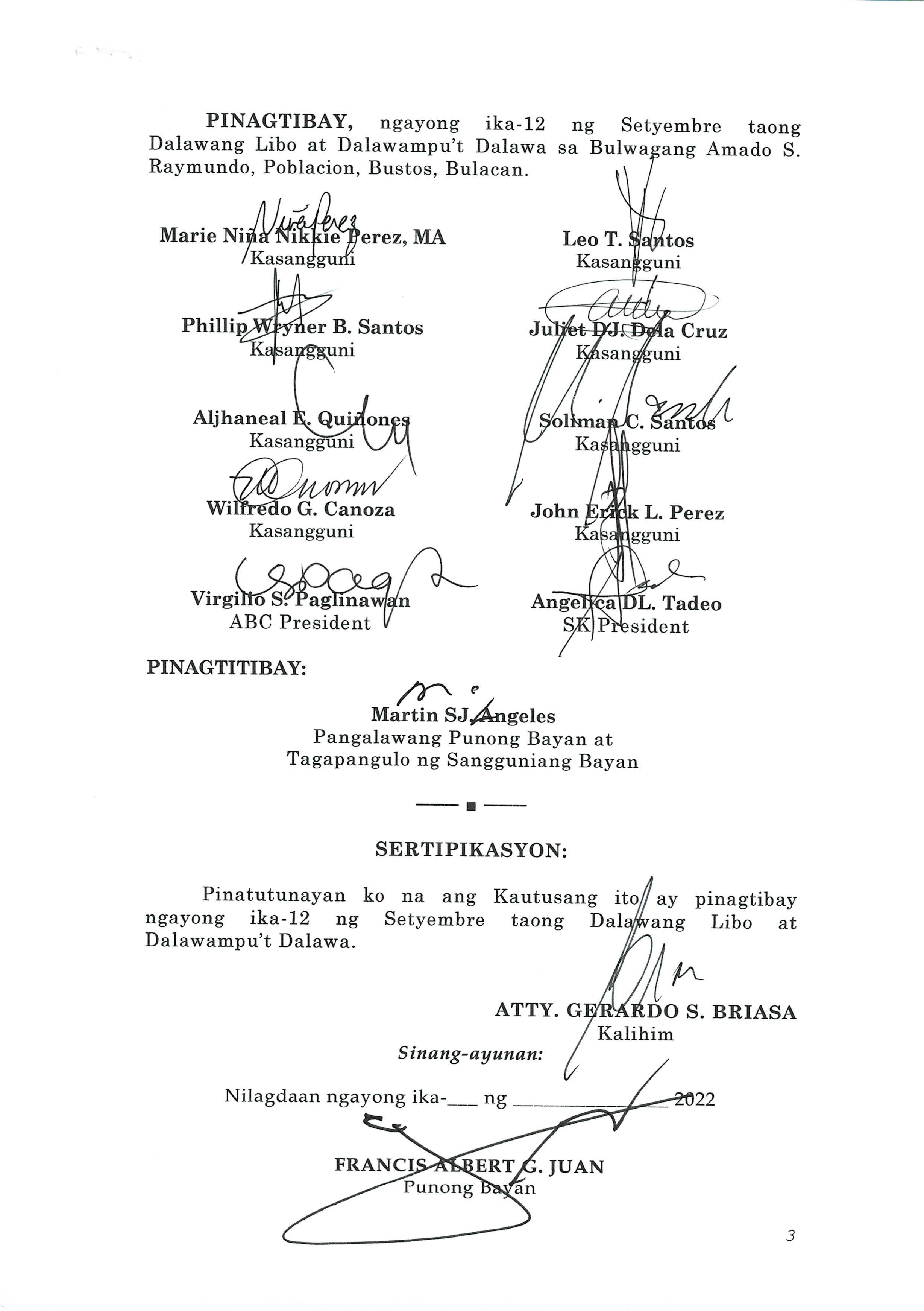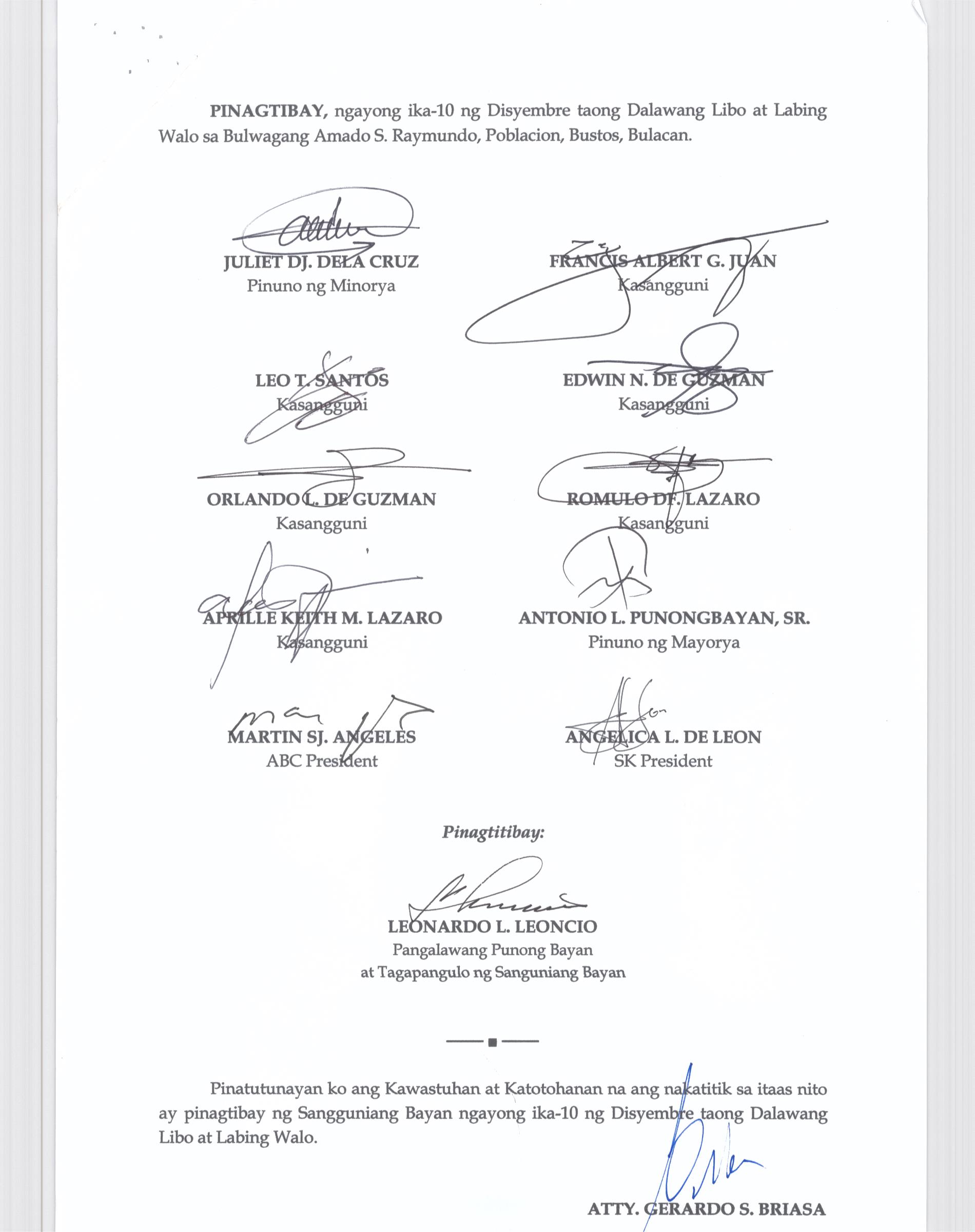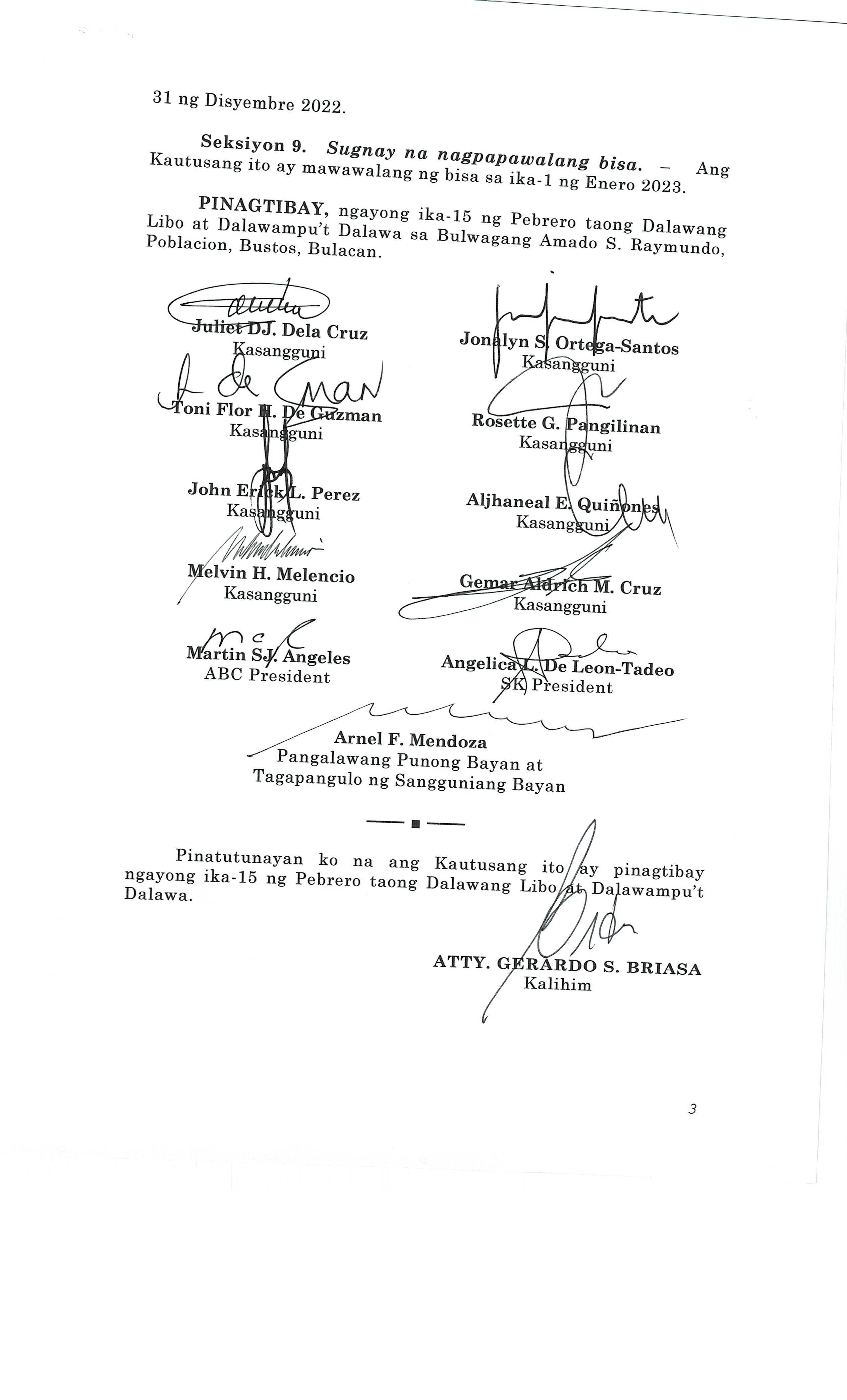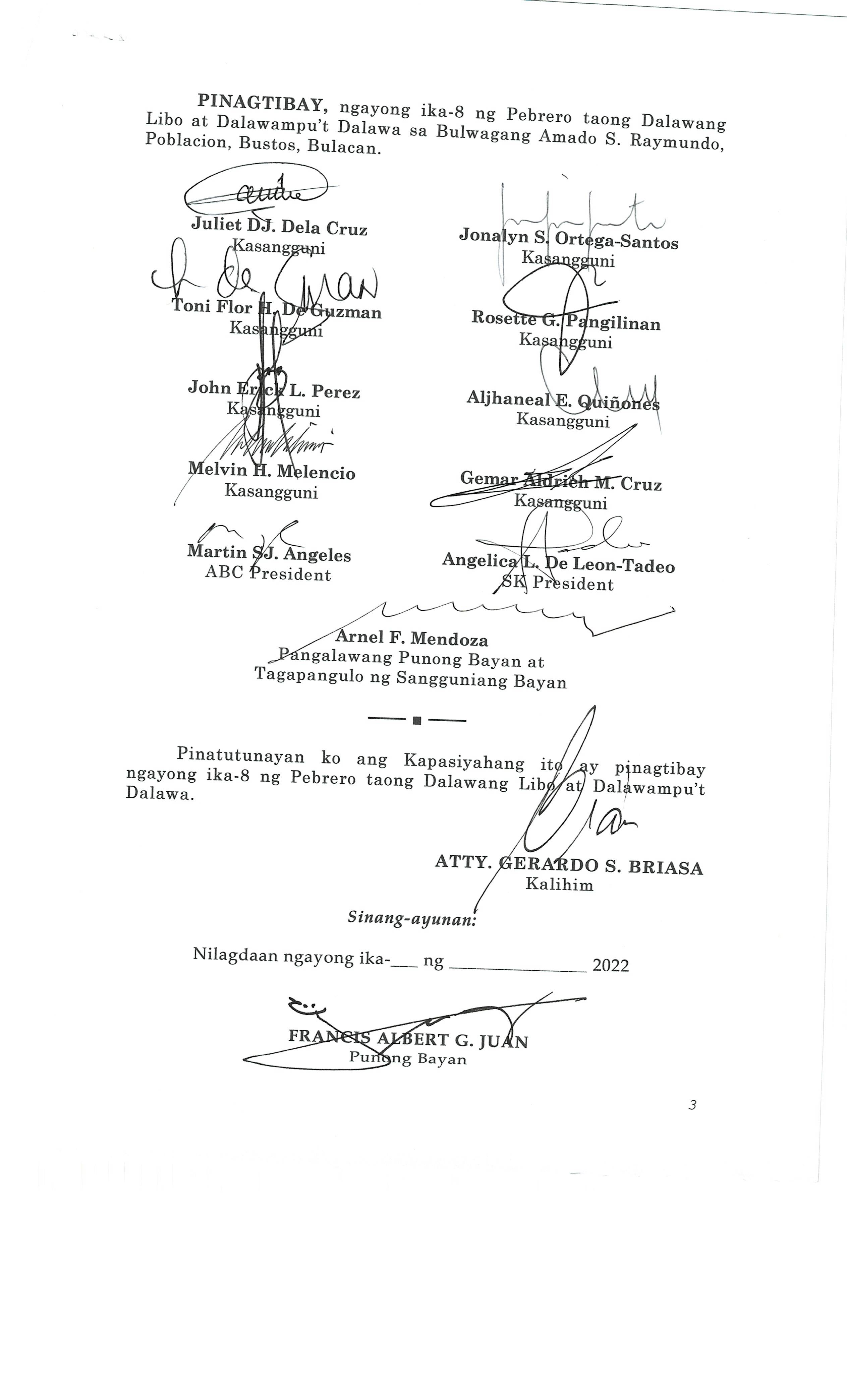 Napapatibay sa taunang laang guguling (annual budget) ng pamahalaang bayan ng bustos, bulacan para sa taong 2023 na nagkakahalaga ng dalawang daan pit...