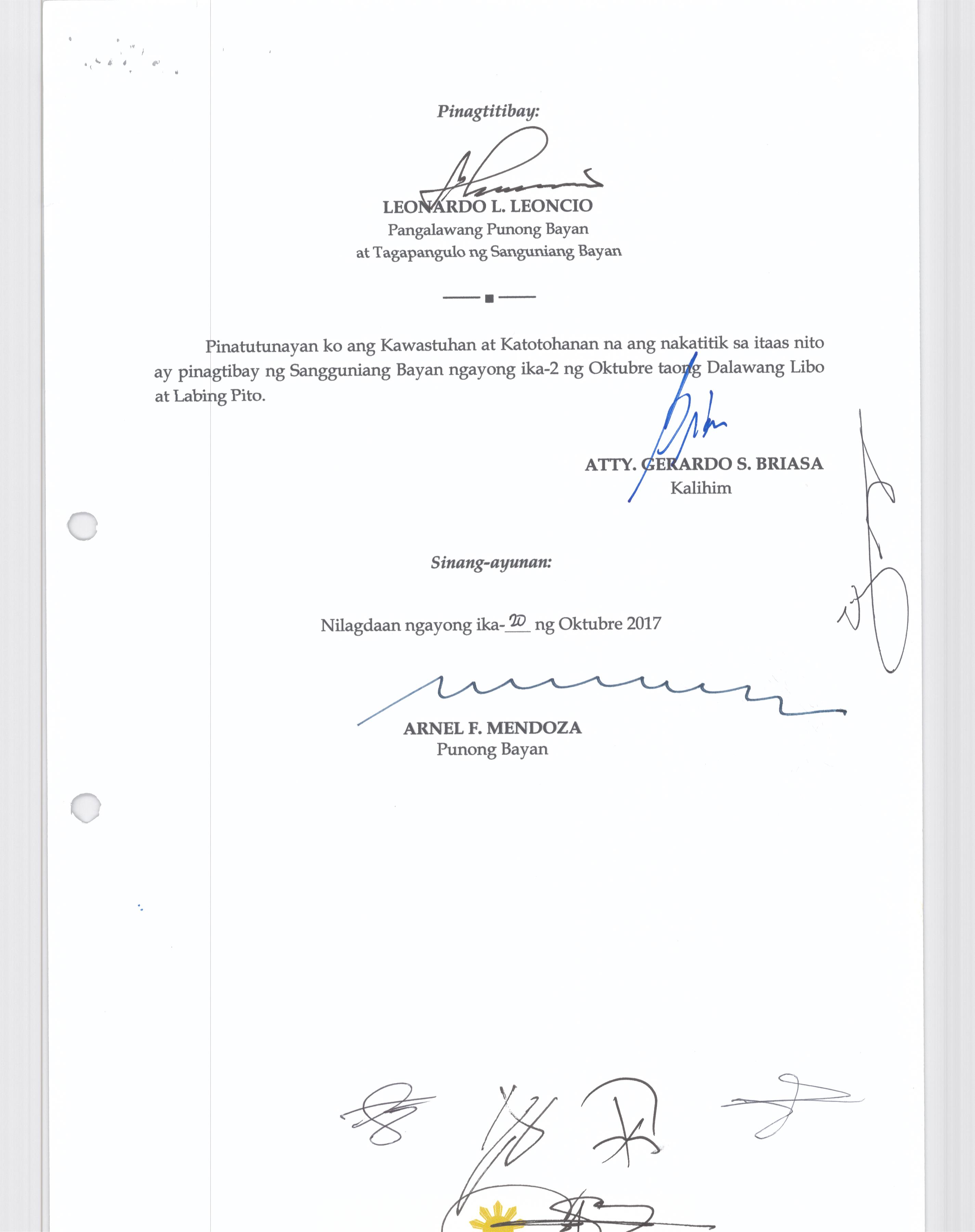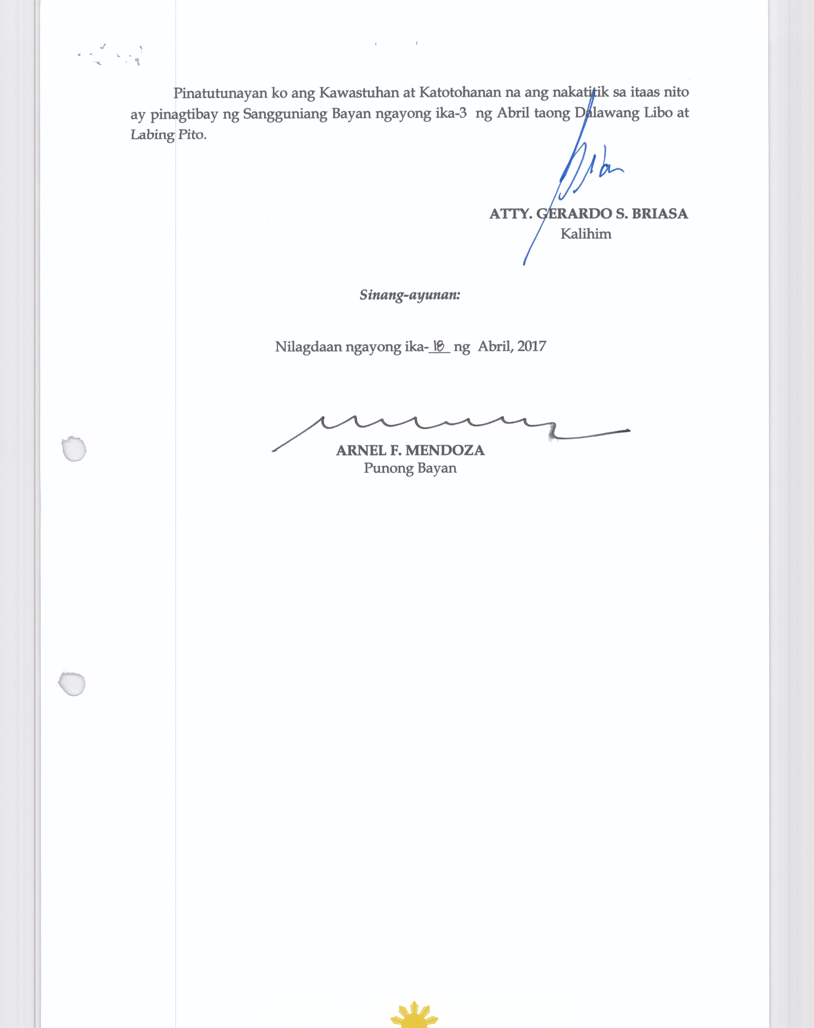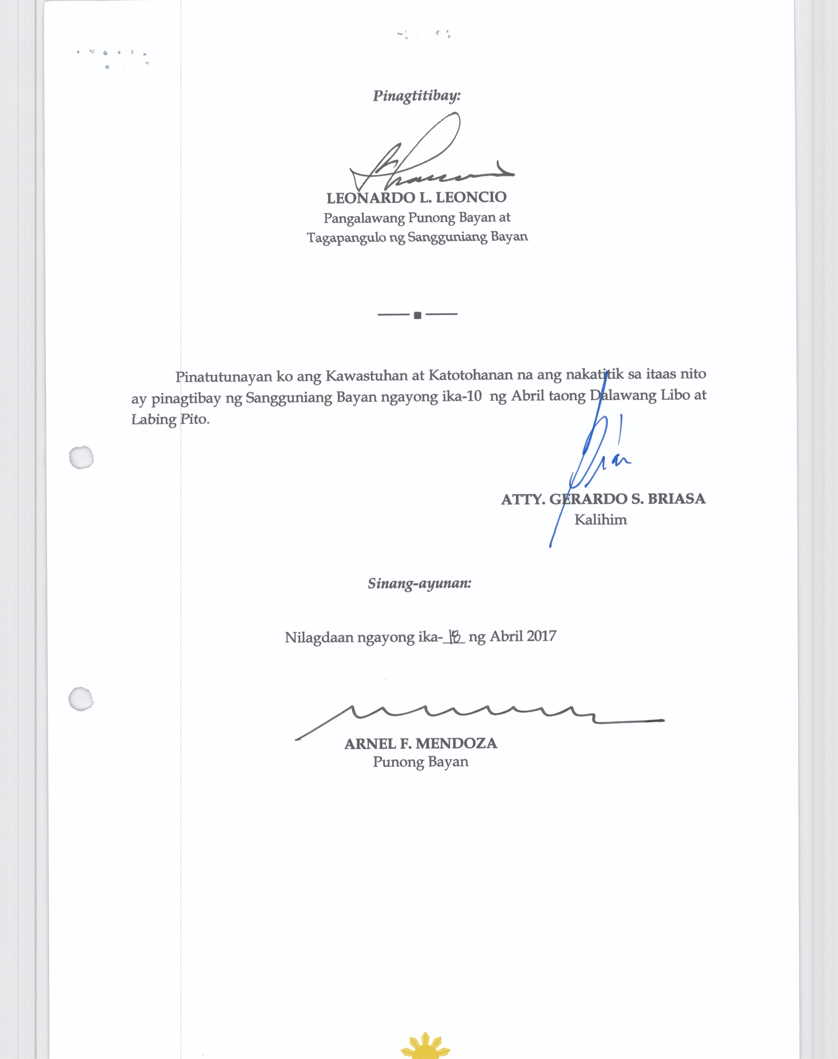 Isang Kautusang Nagpapatibay sa Paglikha ng mga Posisyon na Dentist ll sa Ilalimng Tanggapan ng Municipal Health Office na may Salary Grade 17 (1)