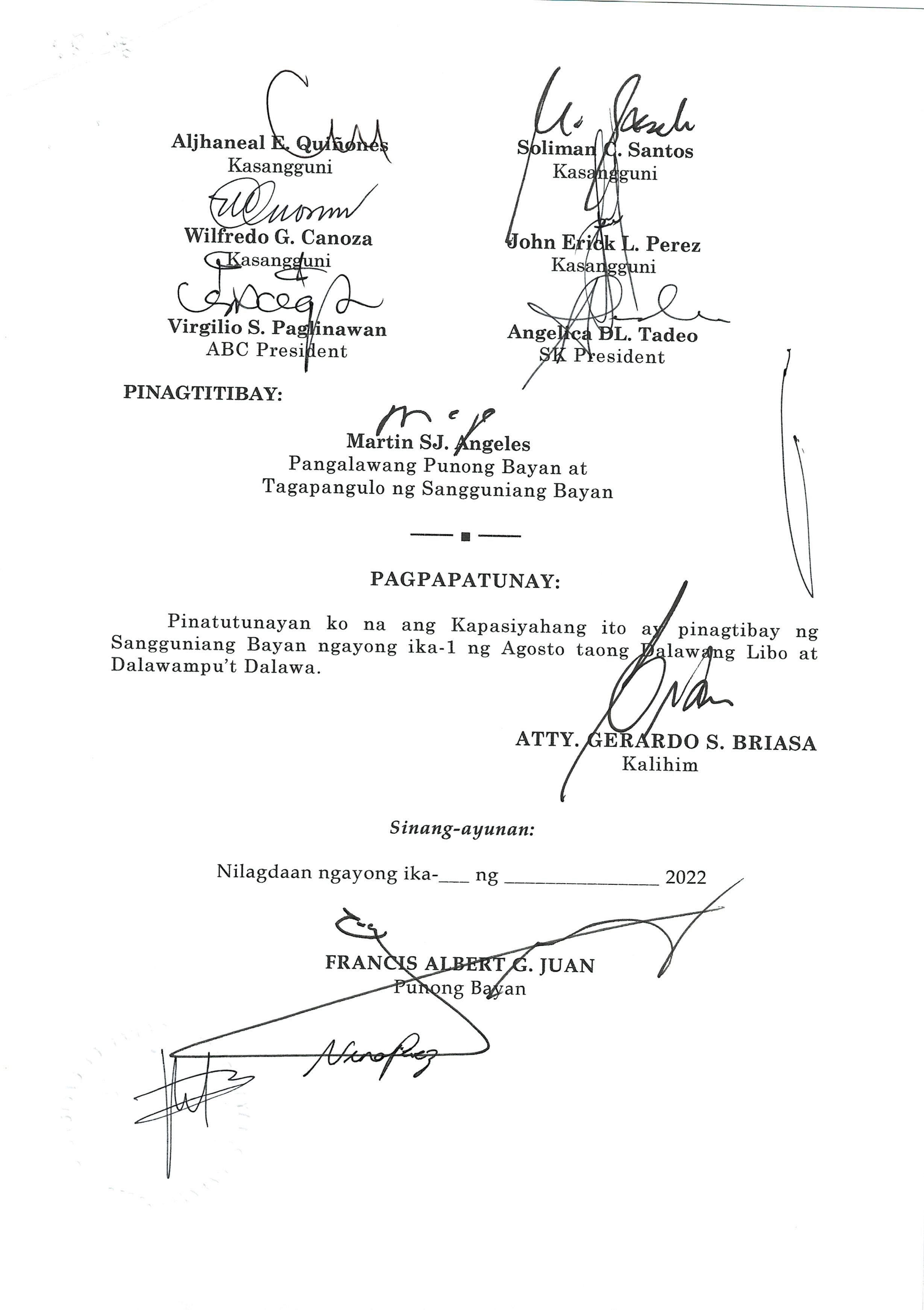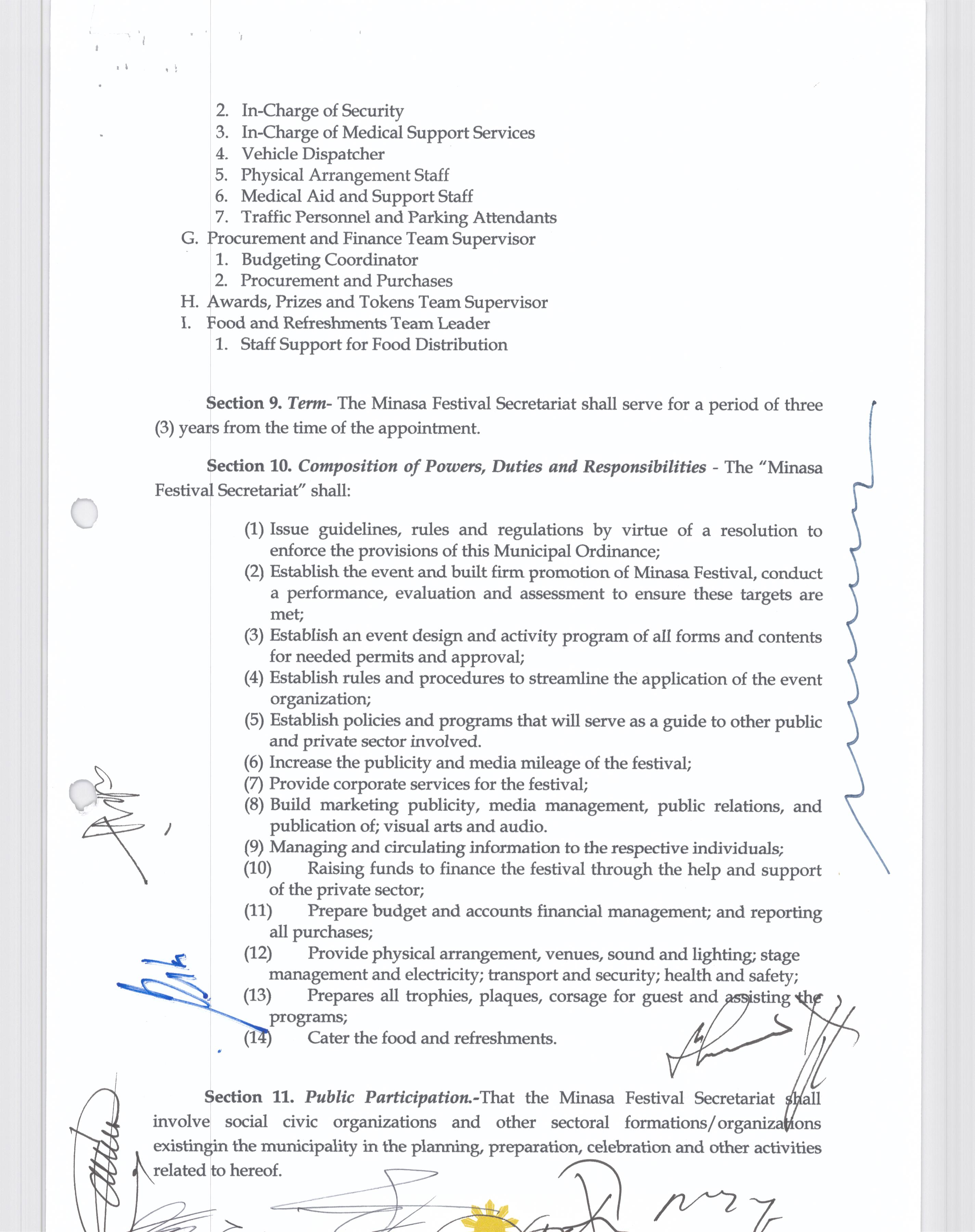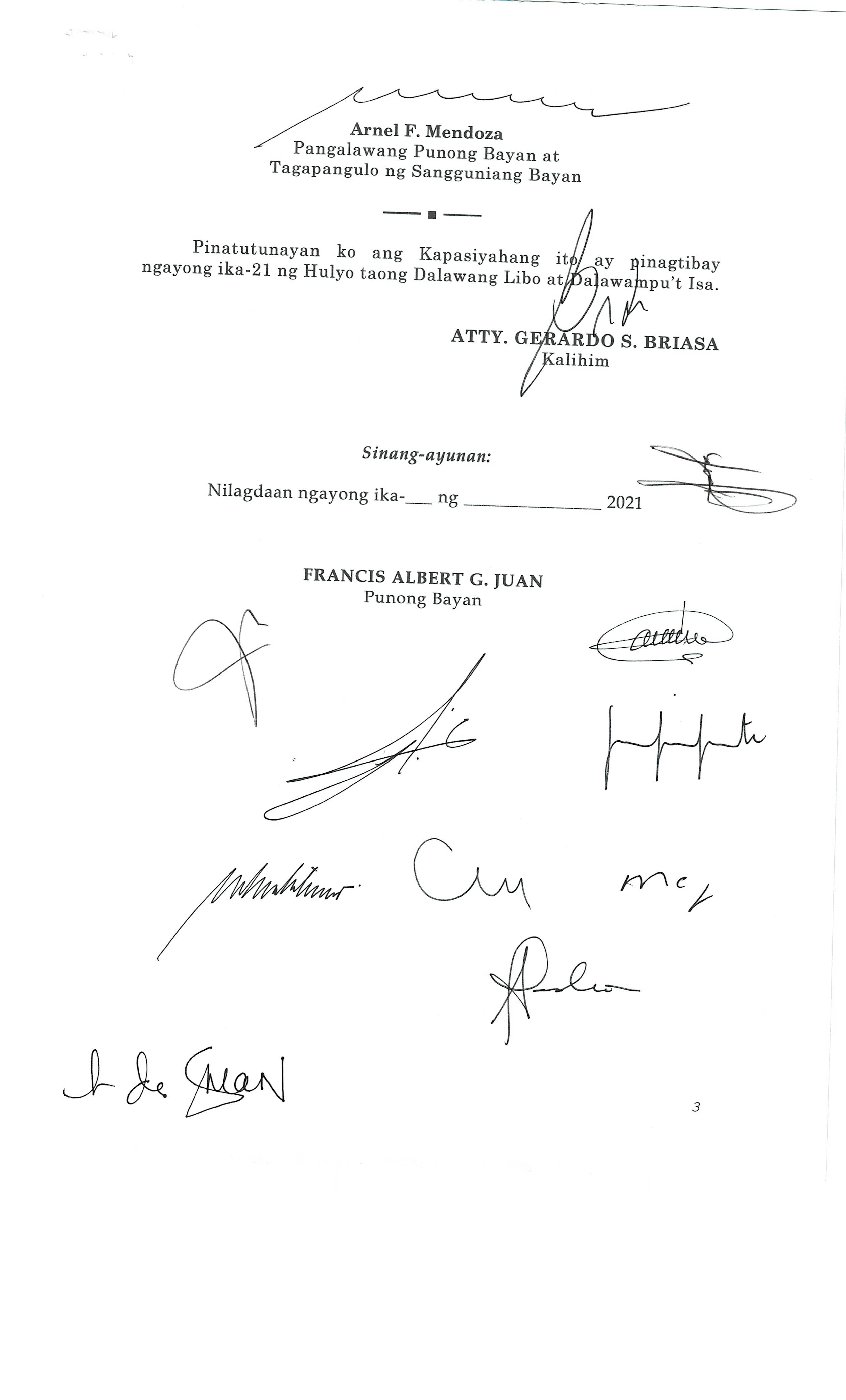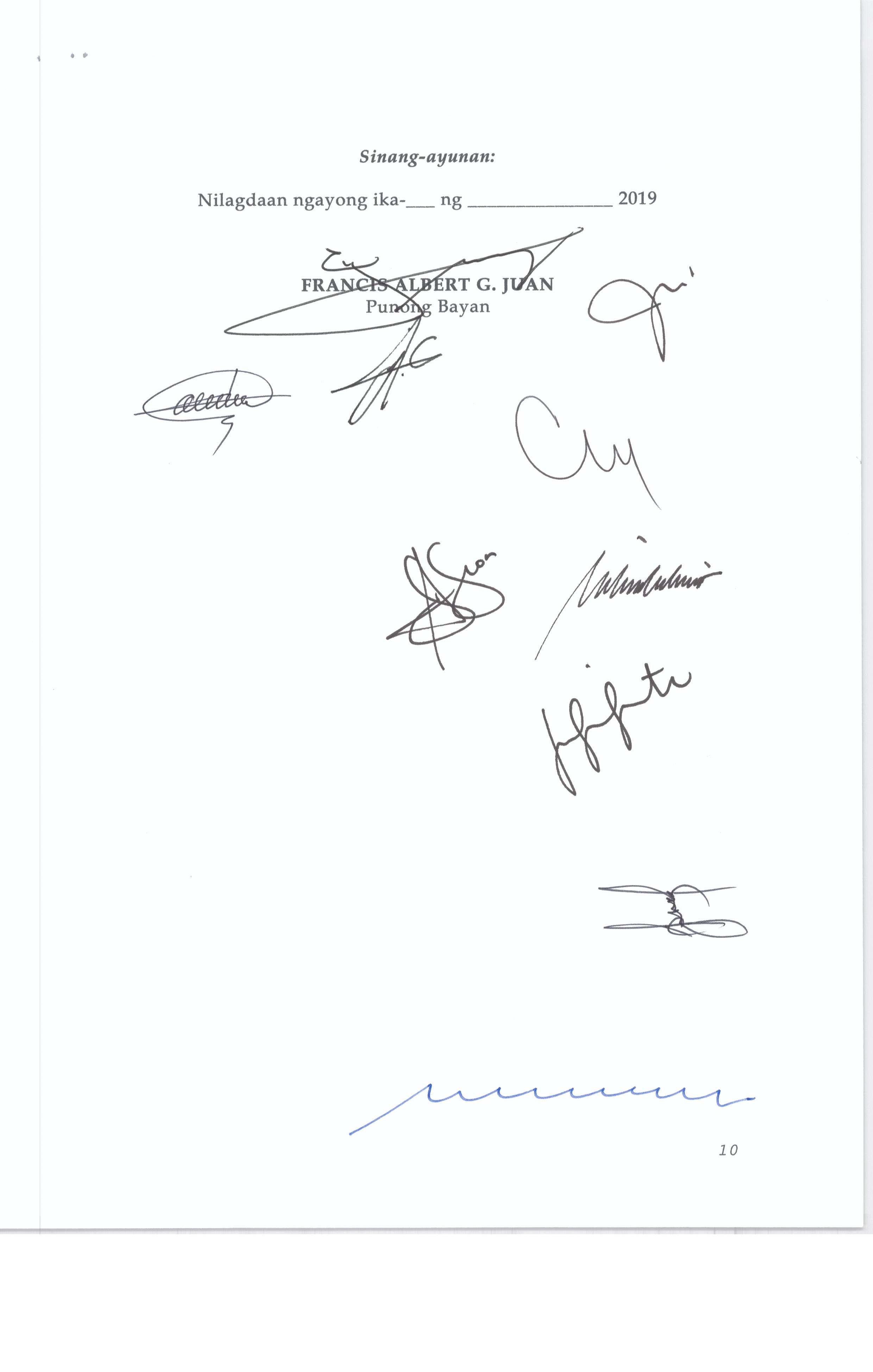 Isang Kautusang nagpapatibay sa Paglansag sa iba’t-ibang Posisyon sa Plantilya sa EhekutibongSangay ng Pamahalaang Bayan.