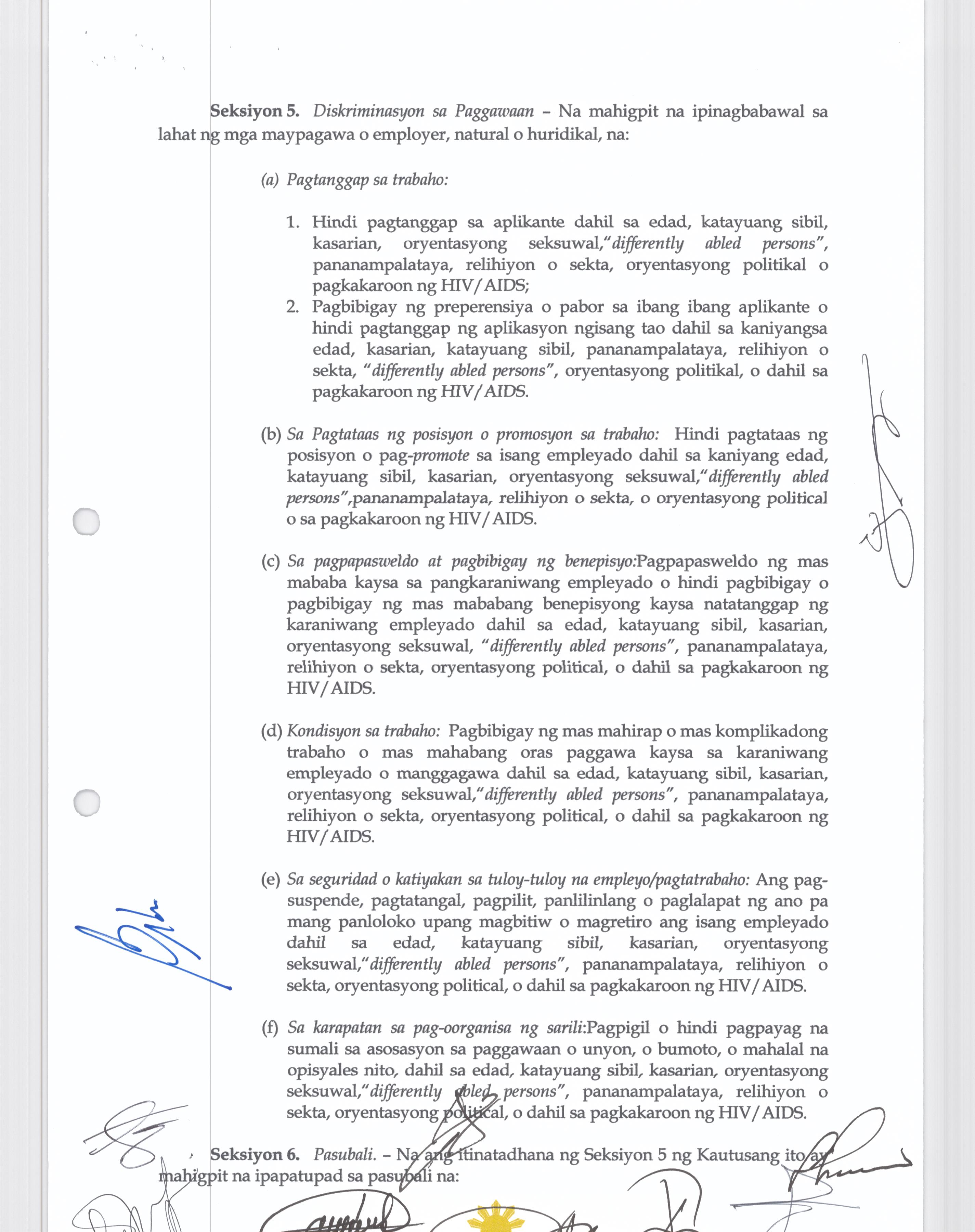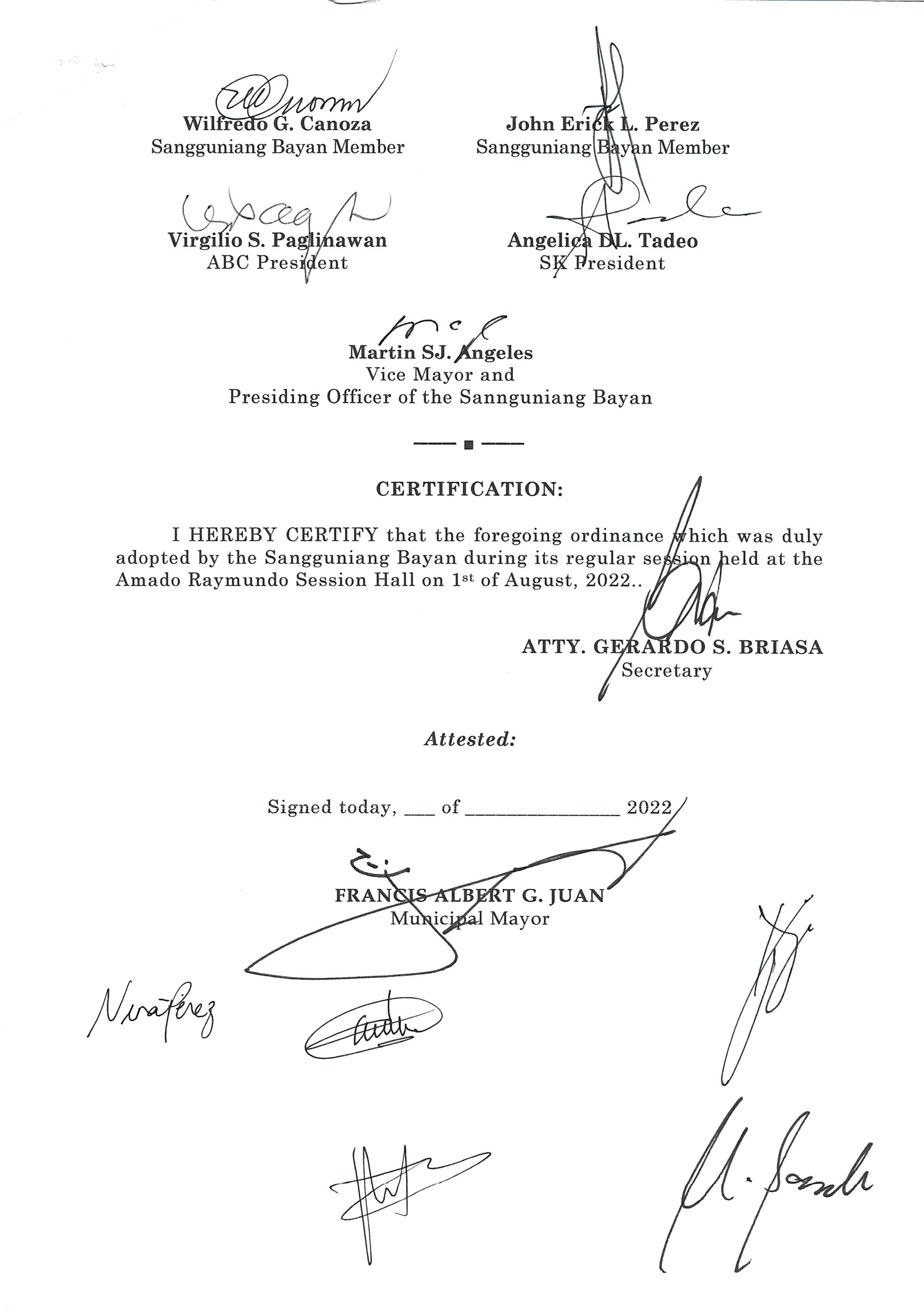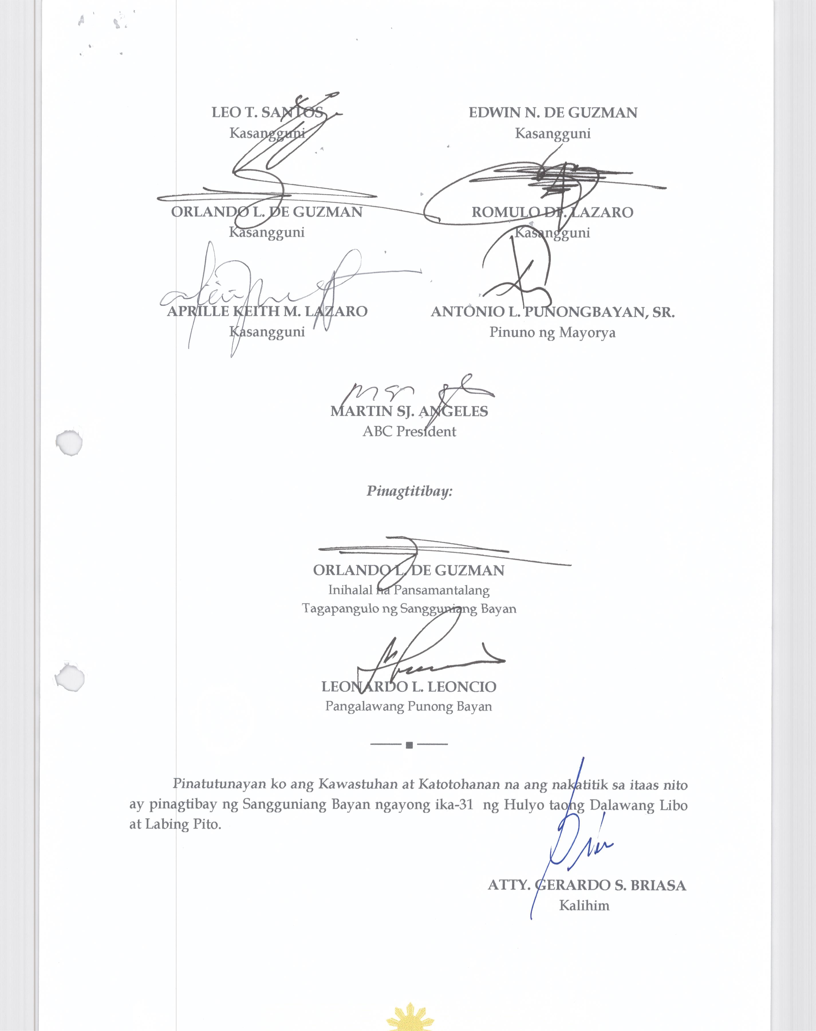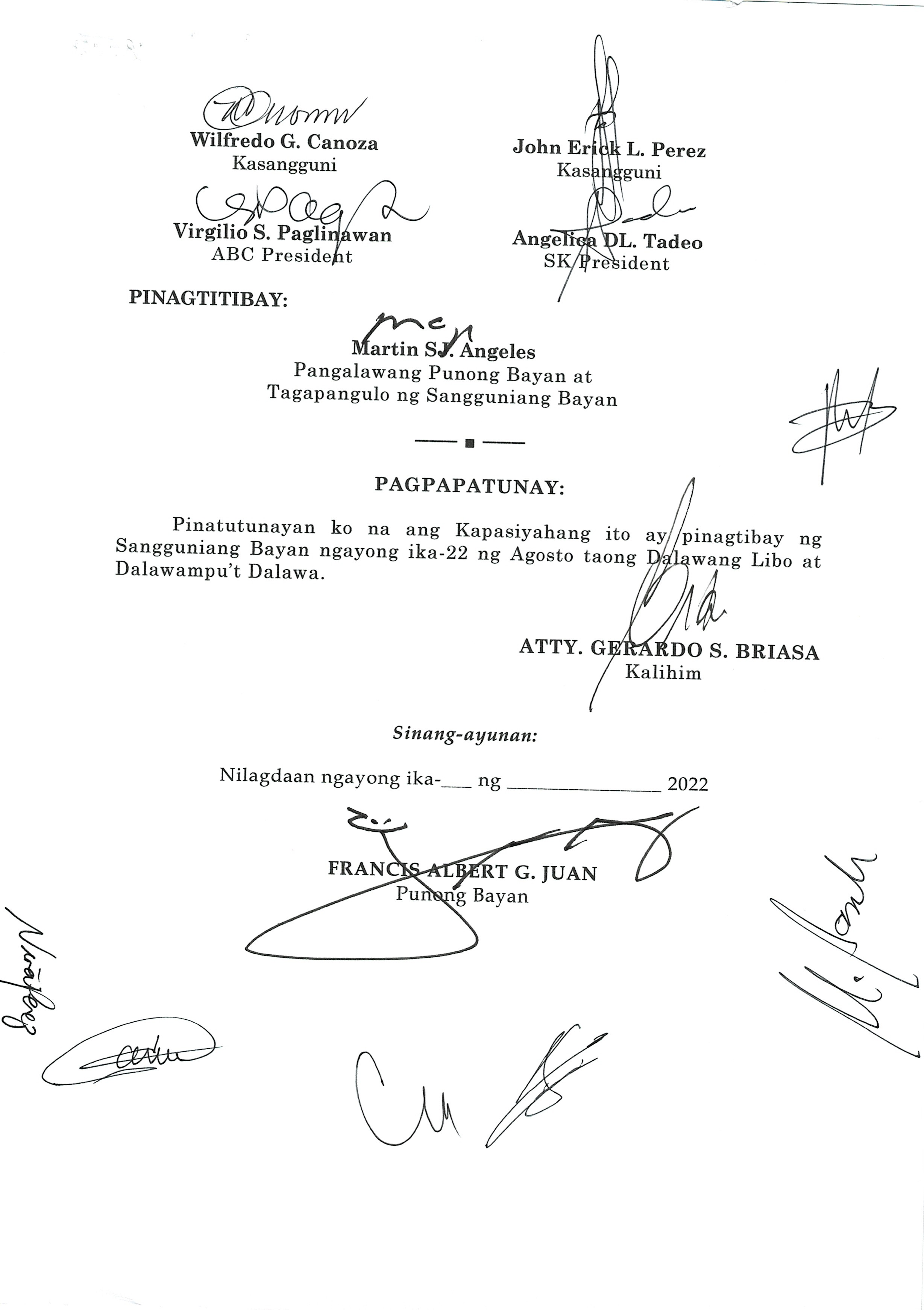 Isang Kautusang nagpapatibay sa Paglansag sa iba’t-ibang Posisyon sa Plantilya sa EhekutibongSangay ng Pamahalaang Bayan.