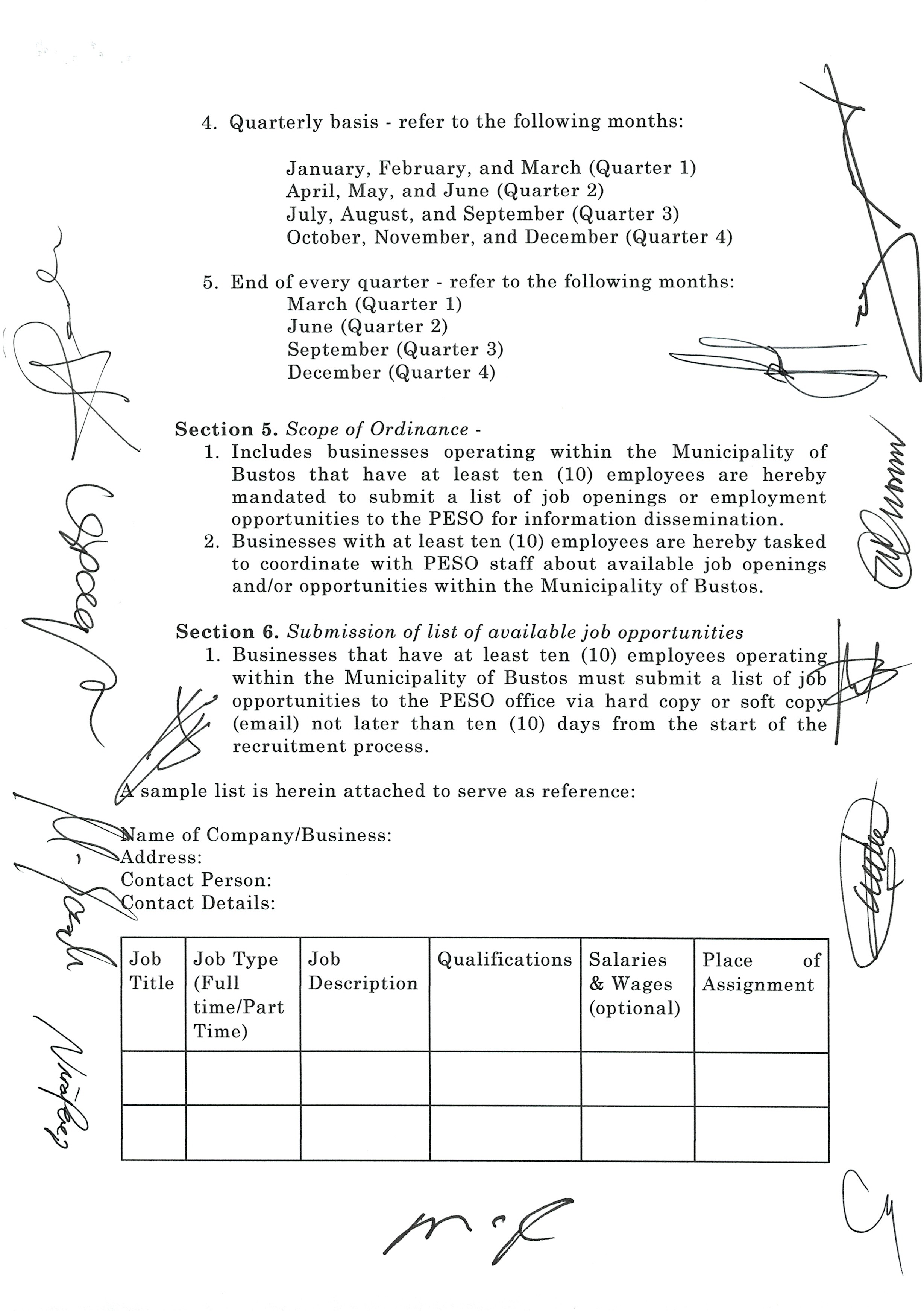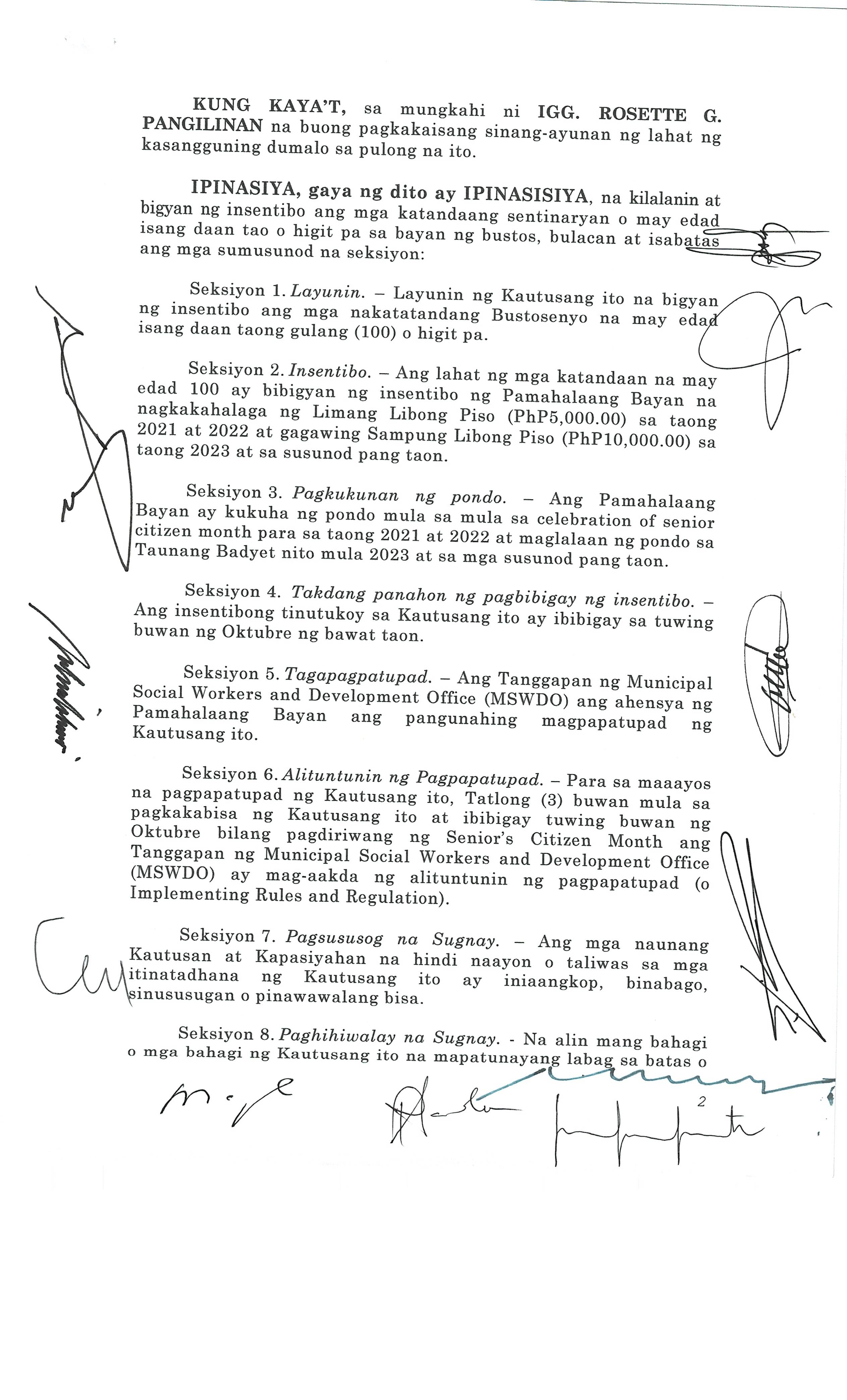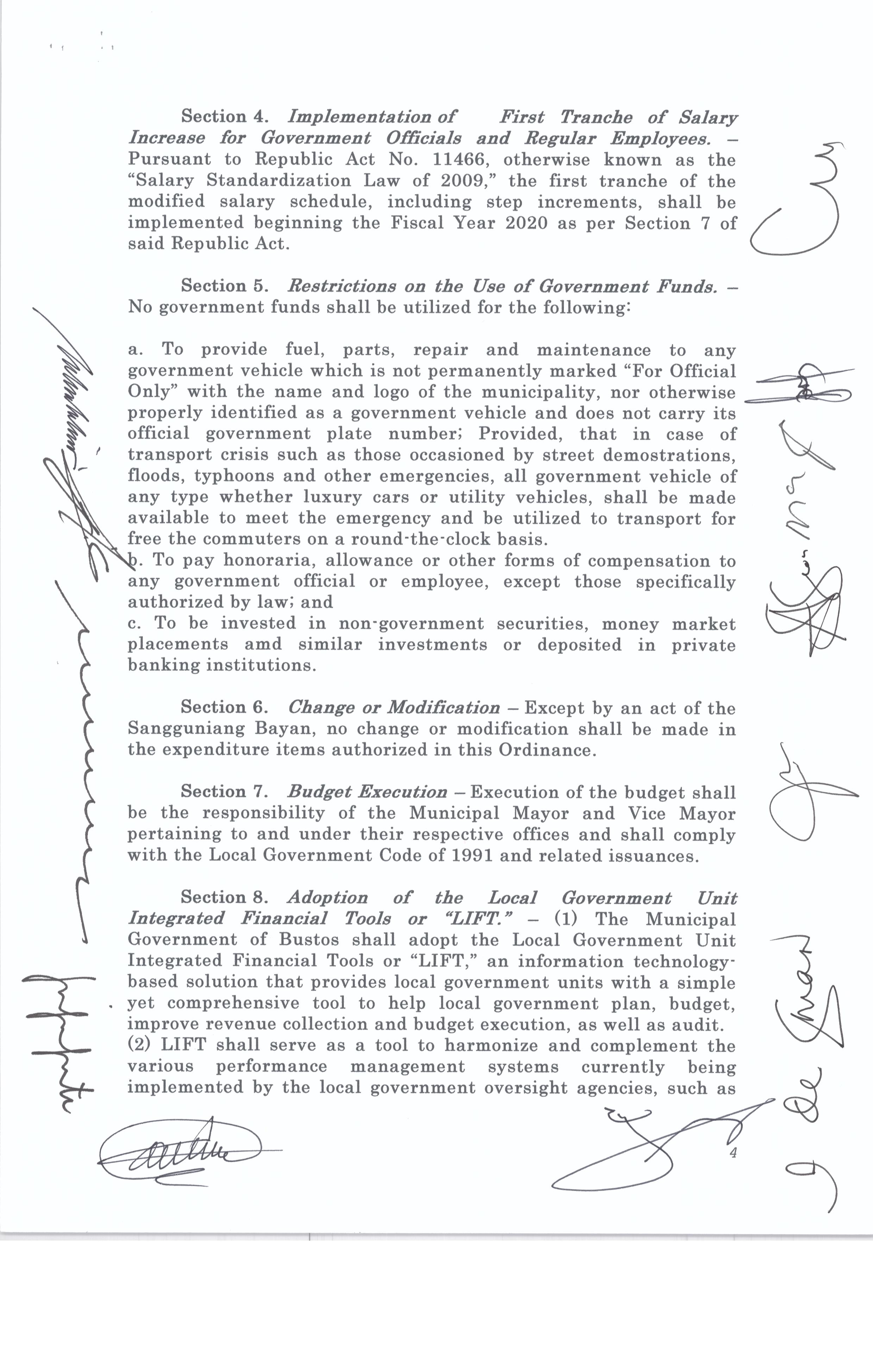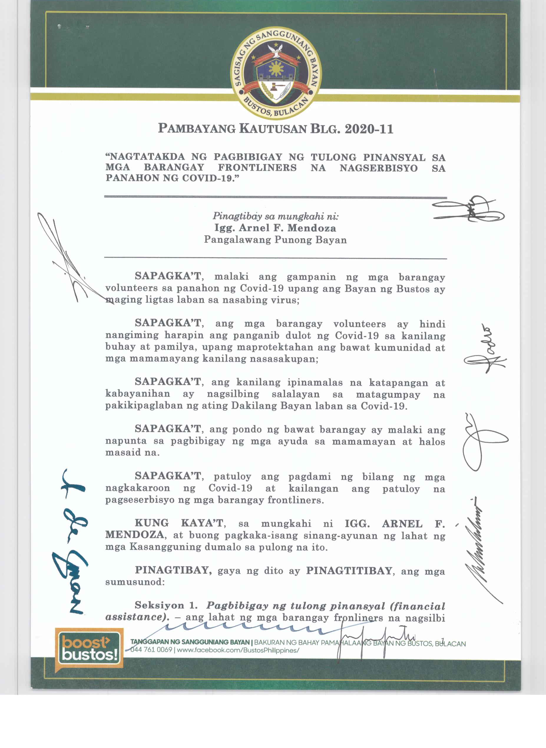 Isang Kautusang nagpapatibay sa Paglikha ng Iba’t-Ibang Posisyon sa Plantilya ng Pamahalaang Bayan ng Bustos.