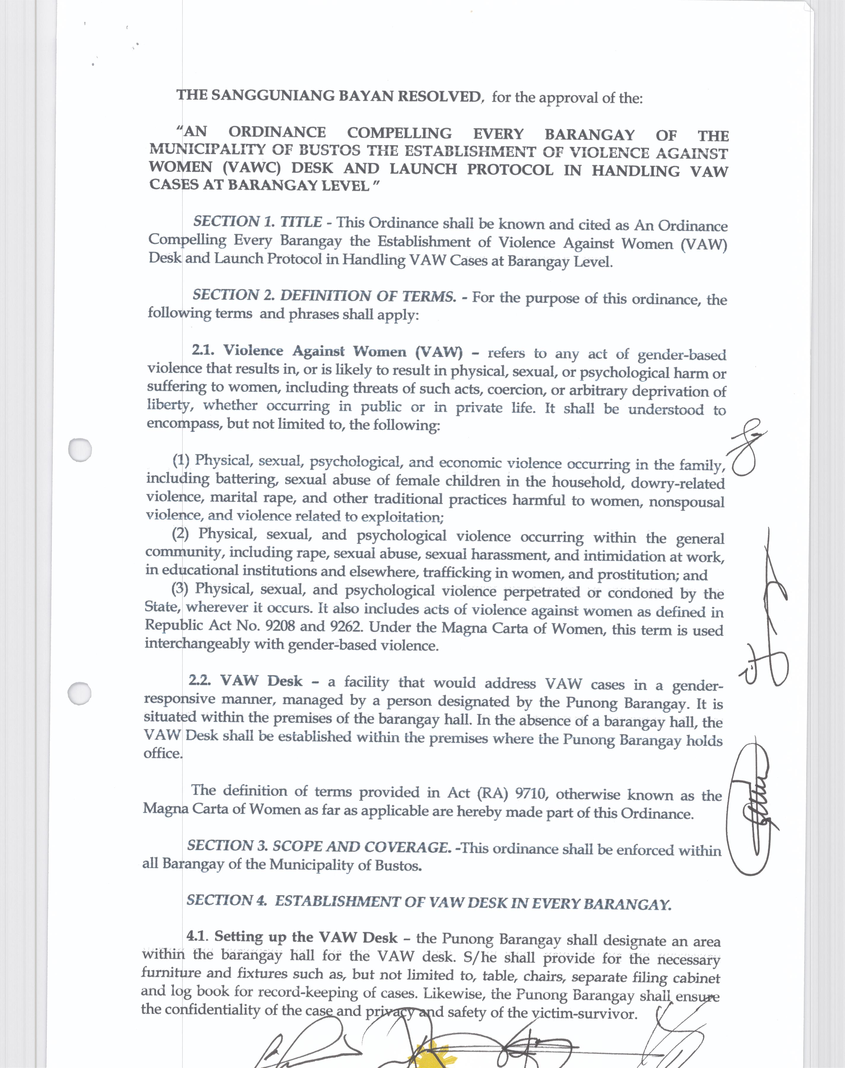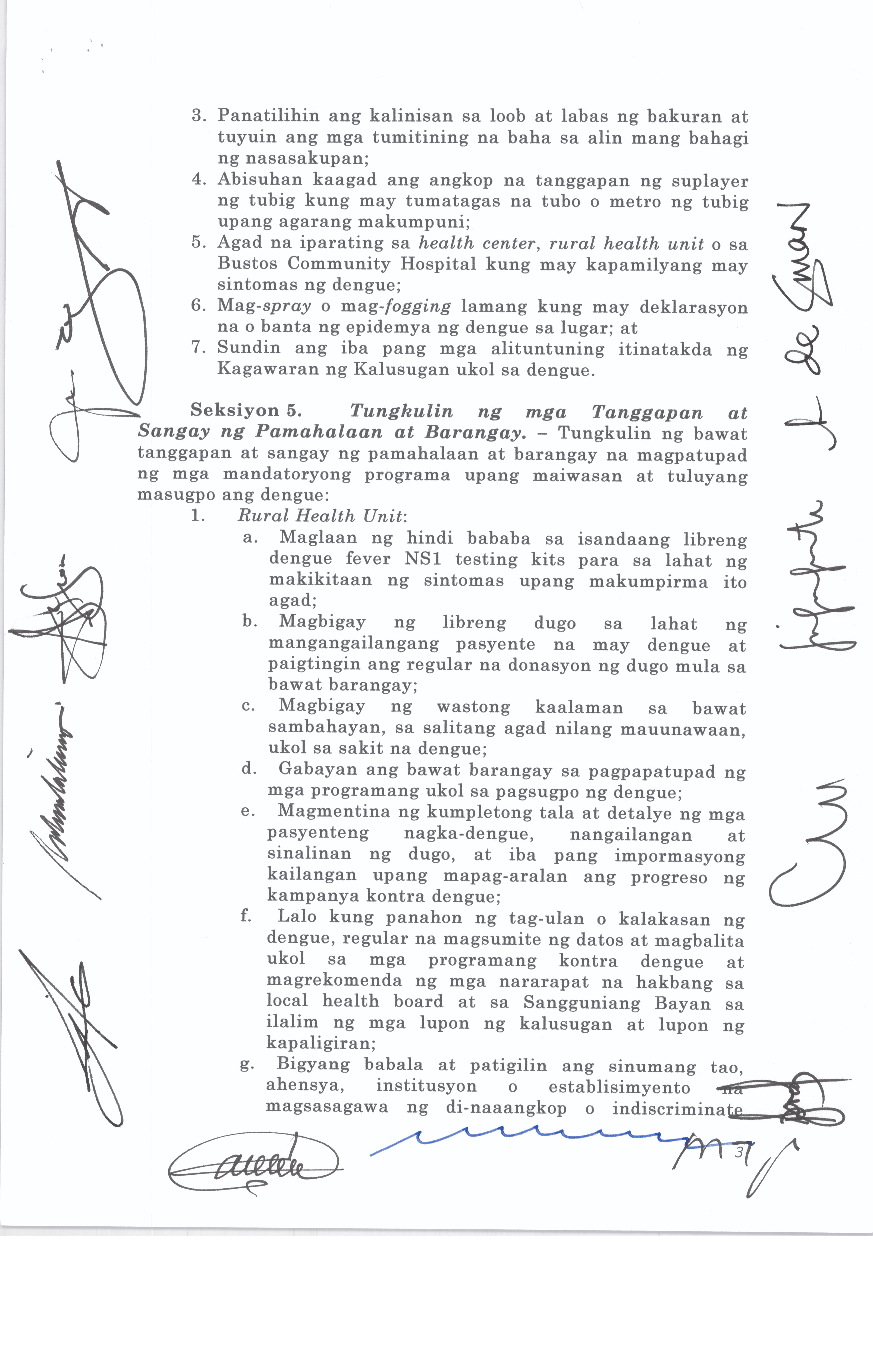 Isang Kautusang Nagtatakda ng Libreng Pap Smear sa lahat ng mga Kababaihan sa Bayan ng Bustos Tuwing sasapit ang Buwan ng Kababaihan.