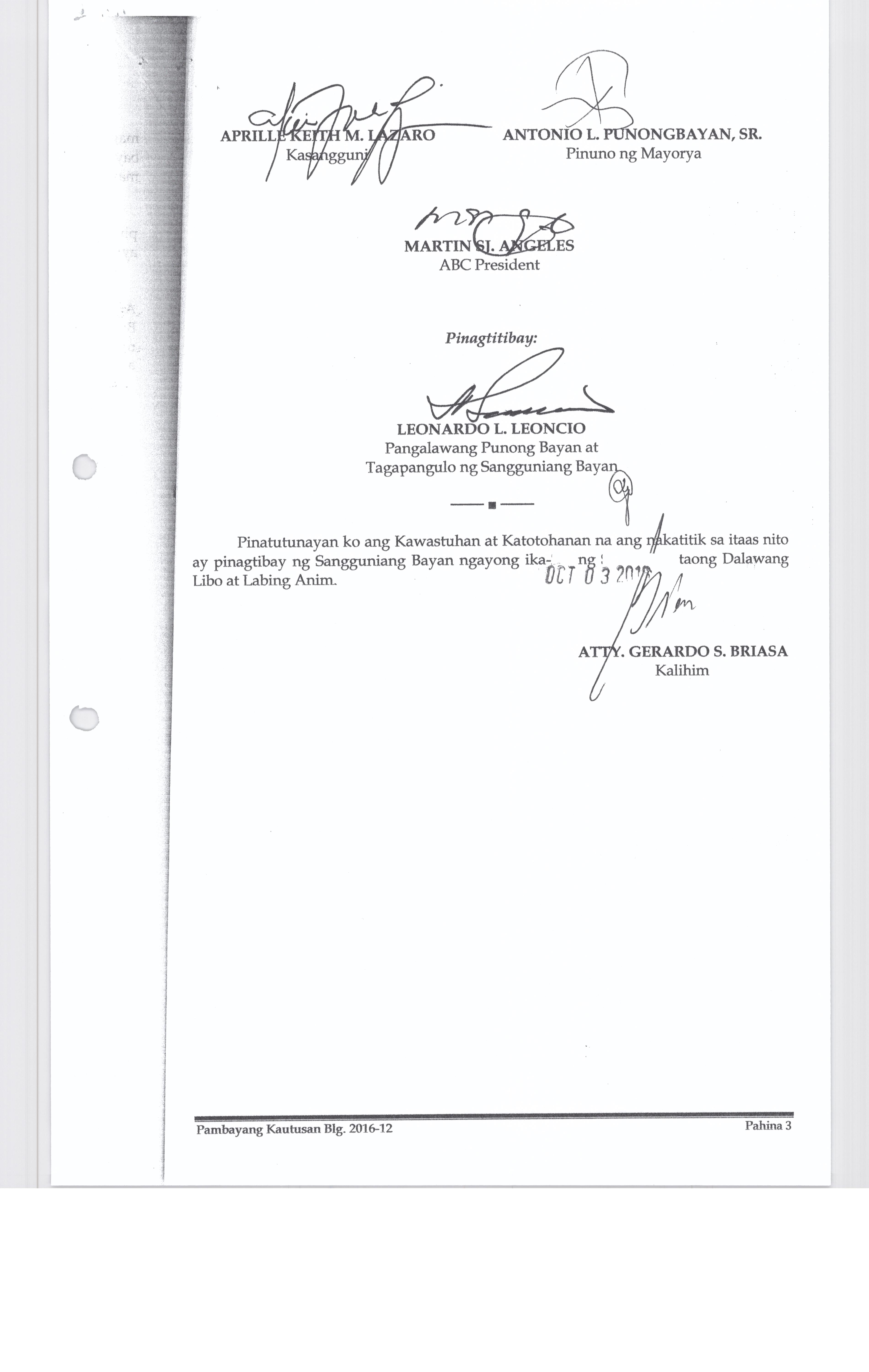 PAMBAYANG KAUTUSAN BLG. 2016-12