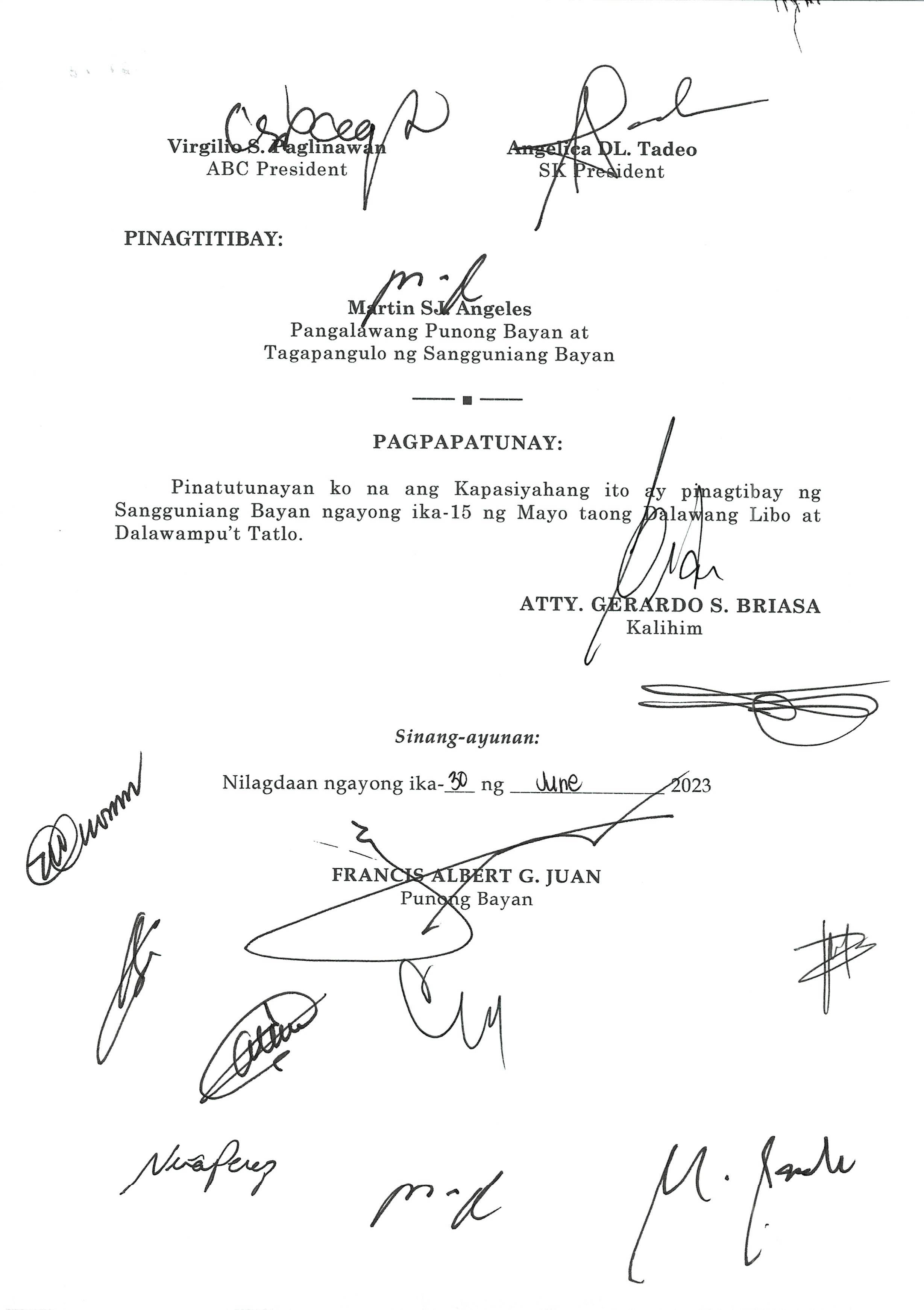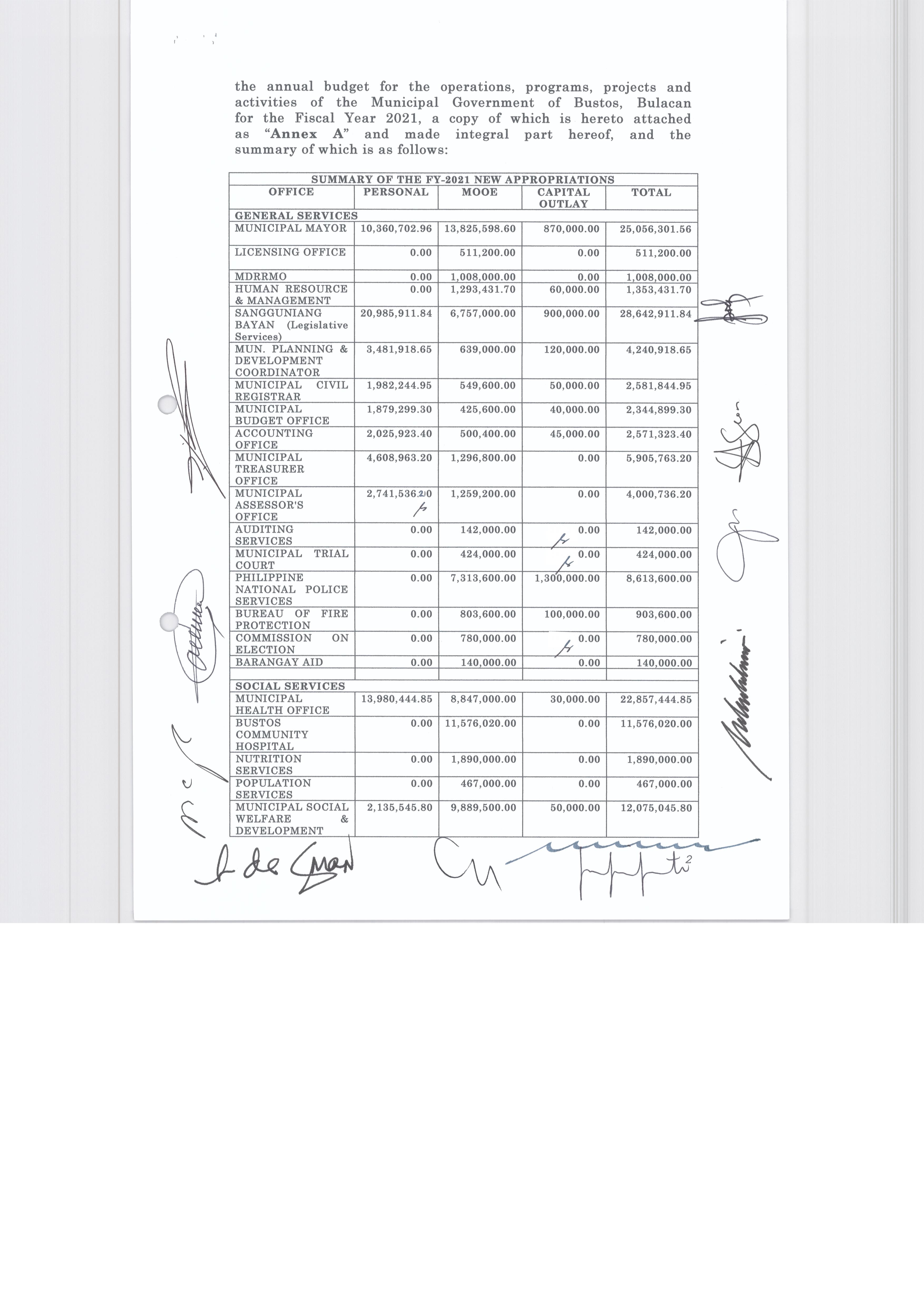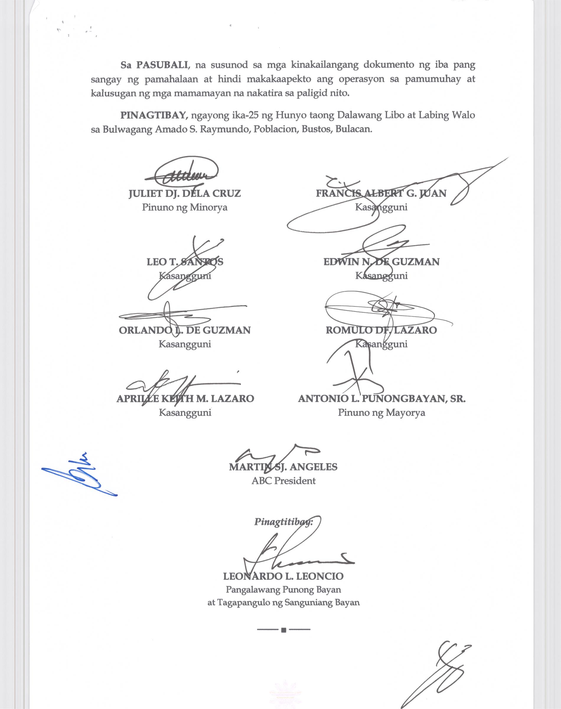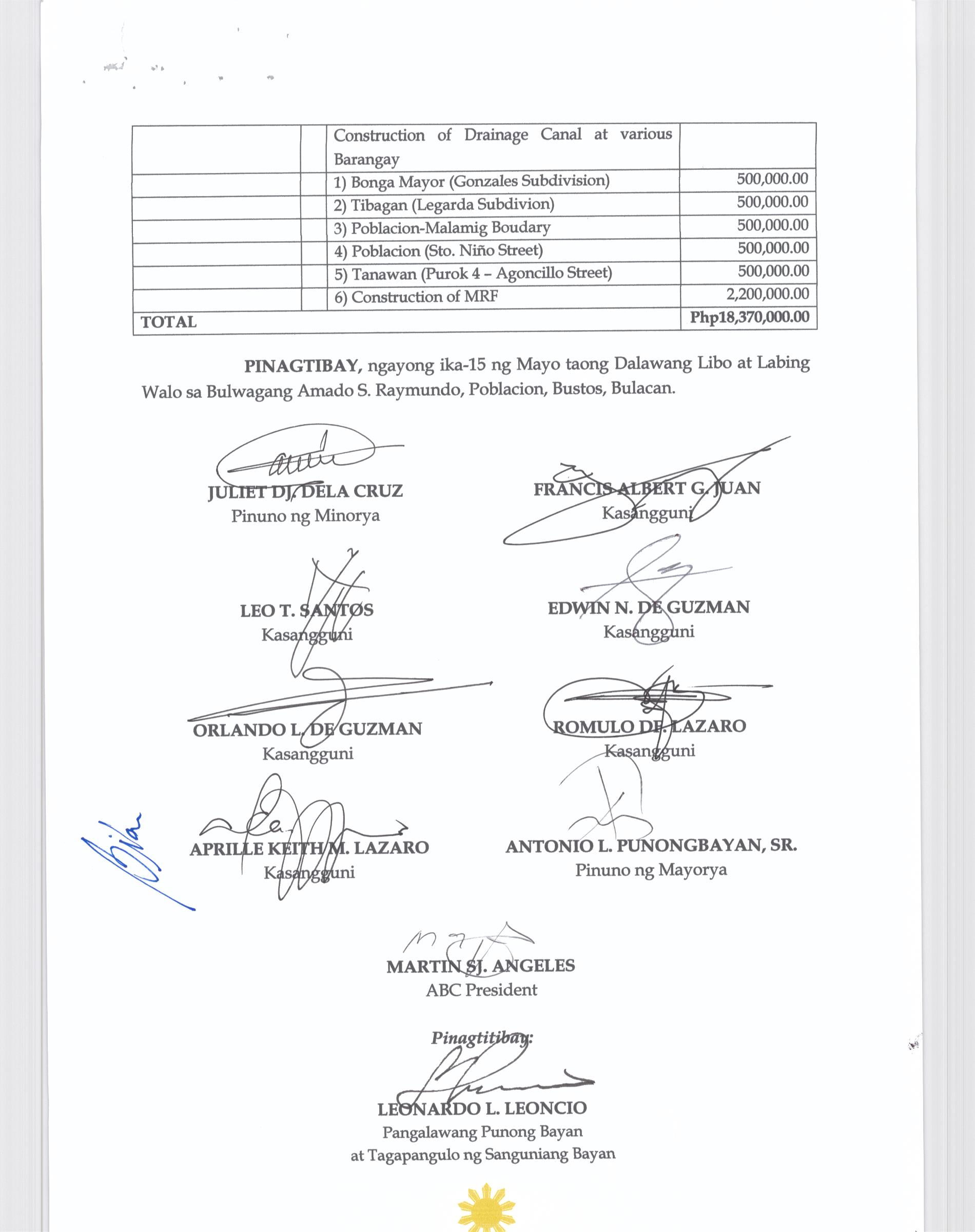 Napapatibay sa taunang laang guguling (annual budget) ng pamahalaang bayan ng bustos, bulacan para sa taong 2023 na nagkakahalaga ng dalawang daan pit...