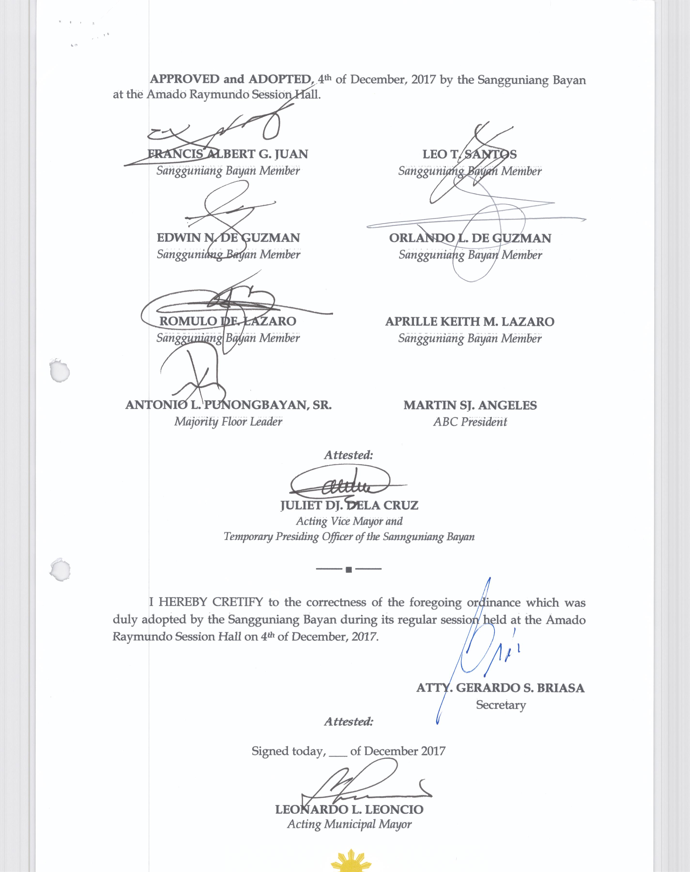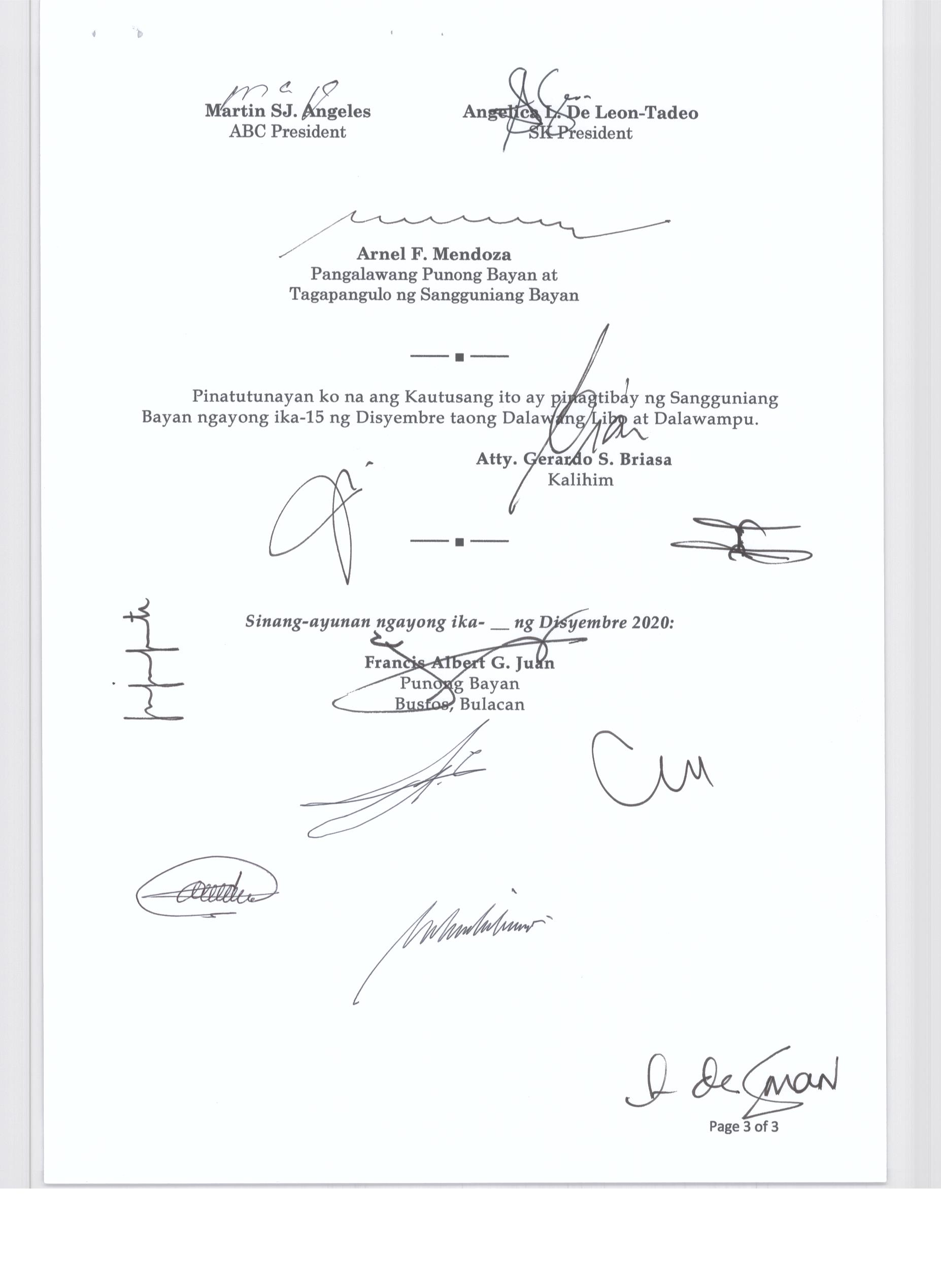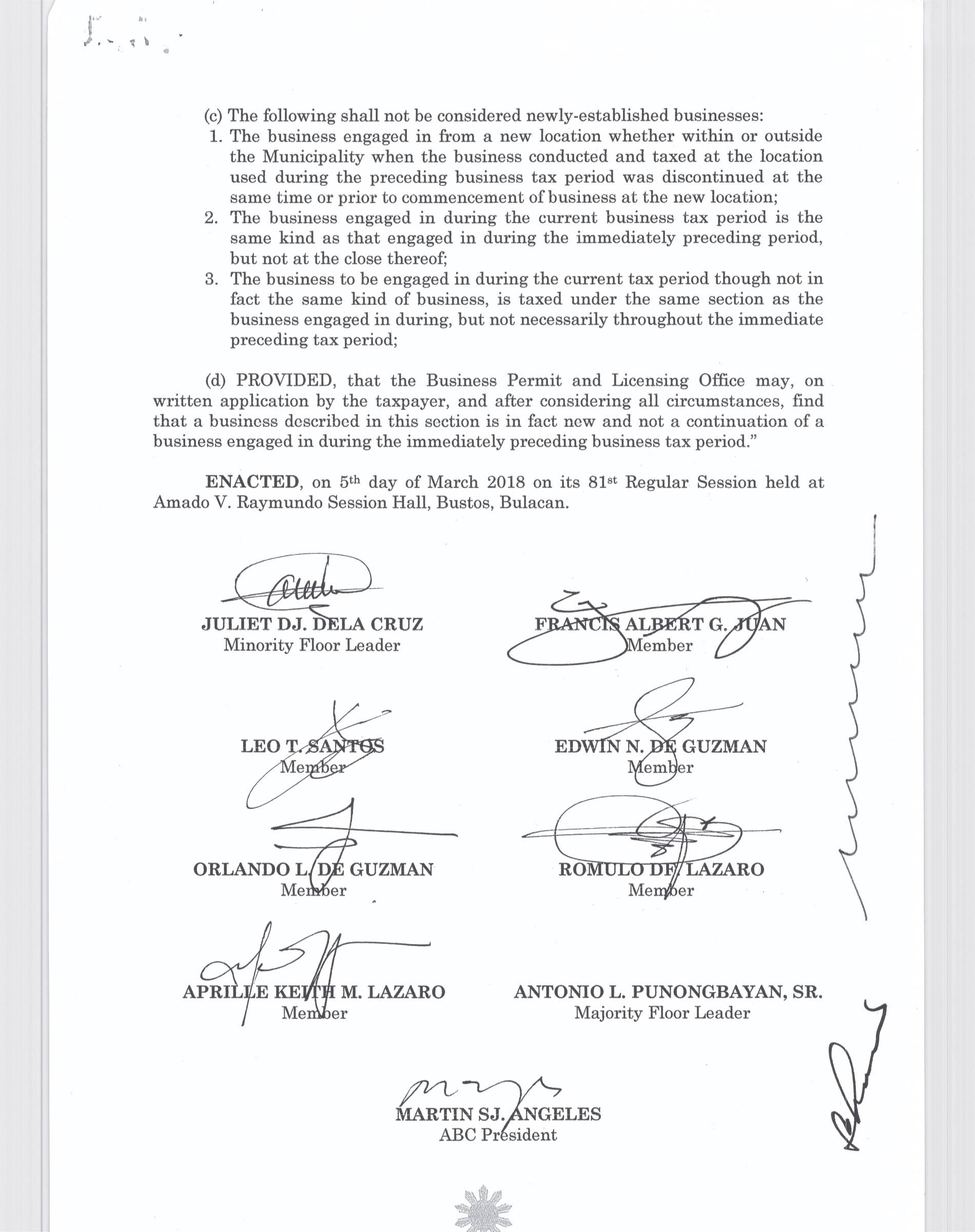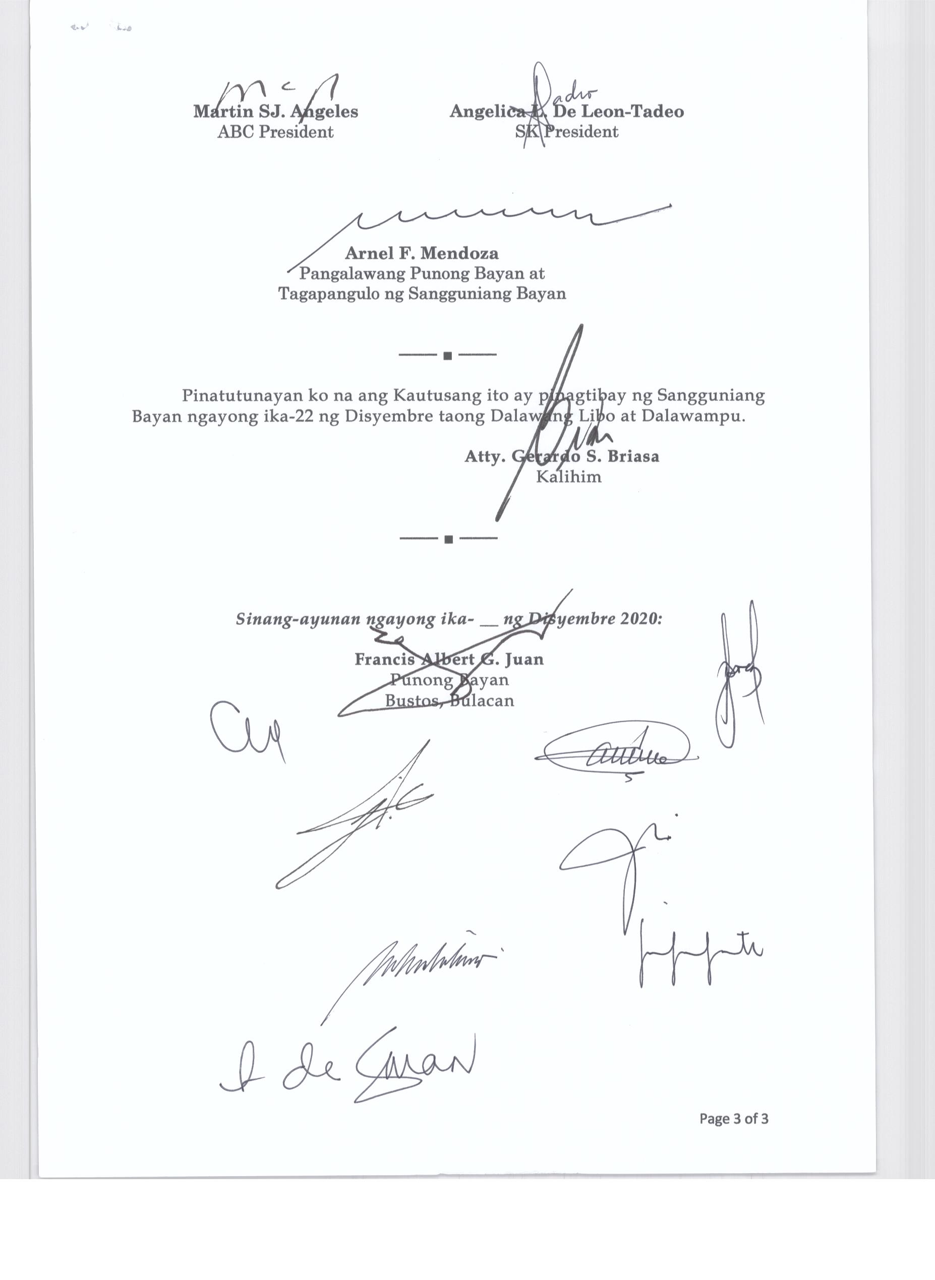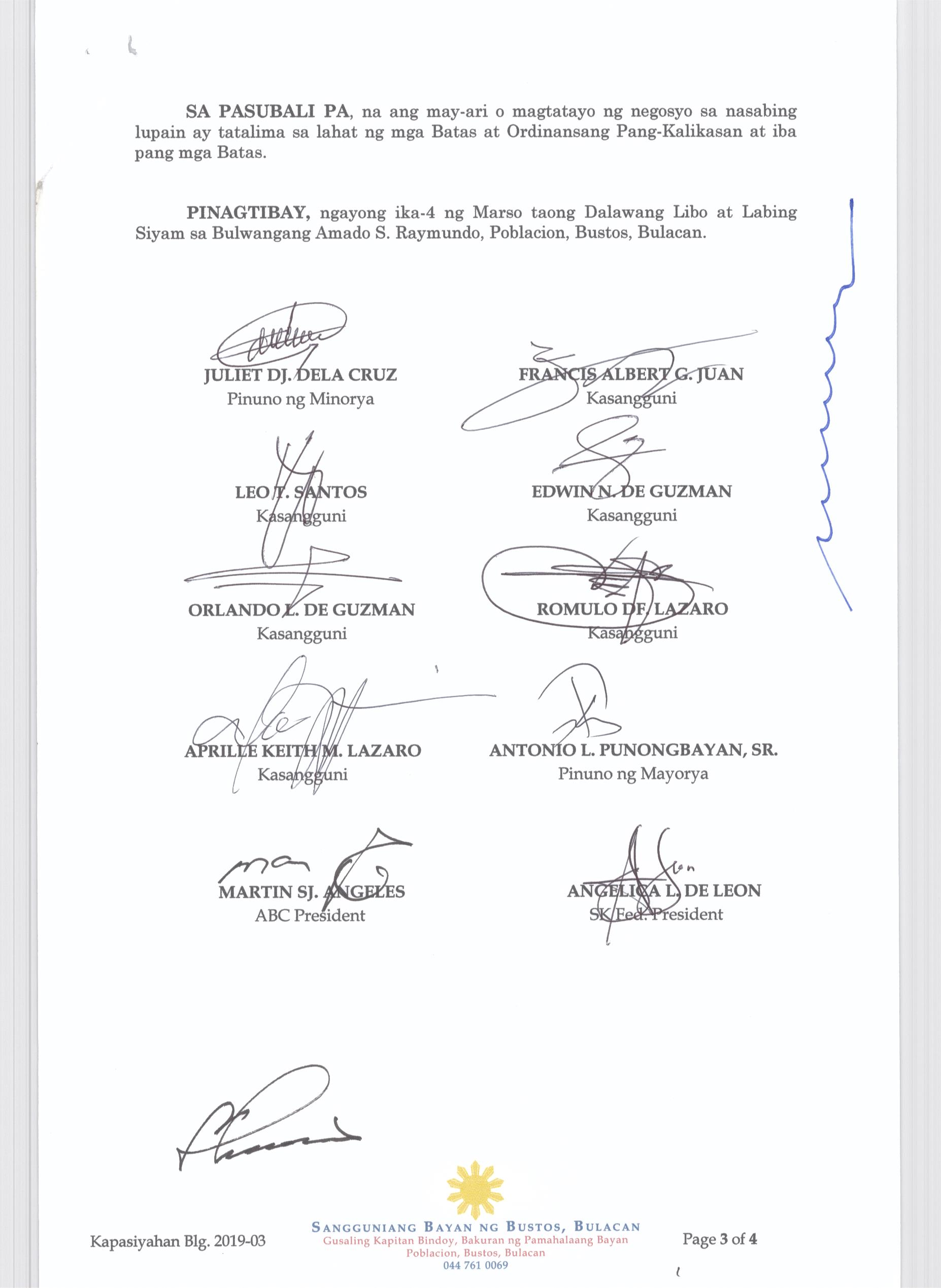 Pambayang Kautusang nagpapatibay sa kahilingan ni G. Adrian G. Santiago na muling pag-uuri ng lupa sa Barangay Bonga Menor Bustos Bulacan na may sukat na 2 ektarya buhat sa kabuuangsukat na 4.3 ektarya na isinasalarawan sa Transfer Certificate Title No. 039-2016006393 (LOT 4-A of the Subd. Plan PSD-03-177744)