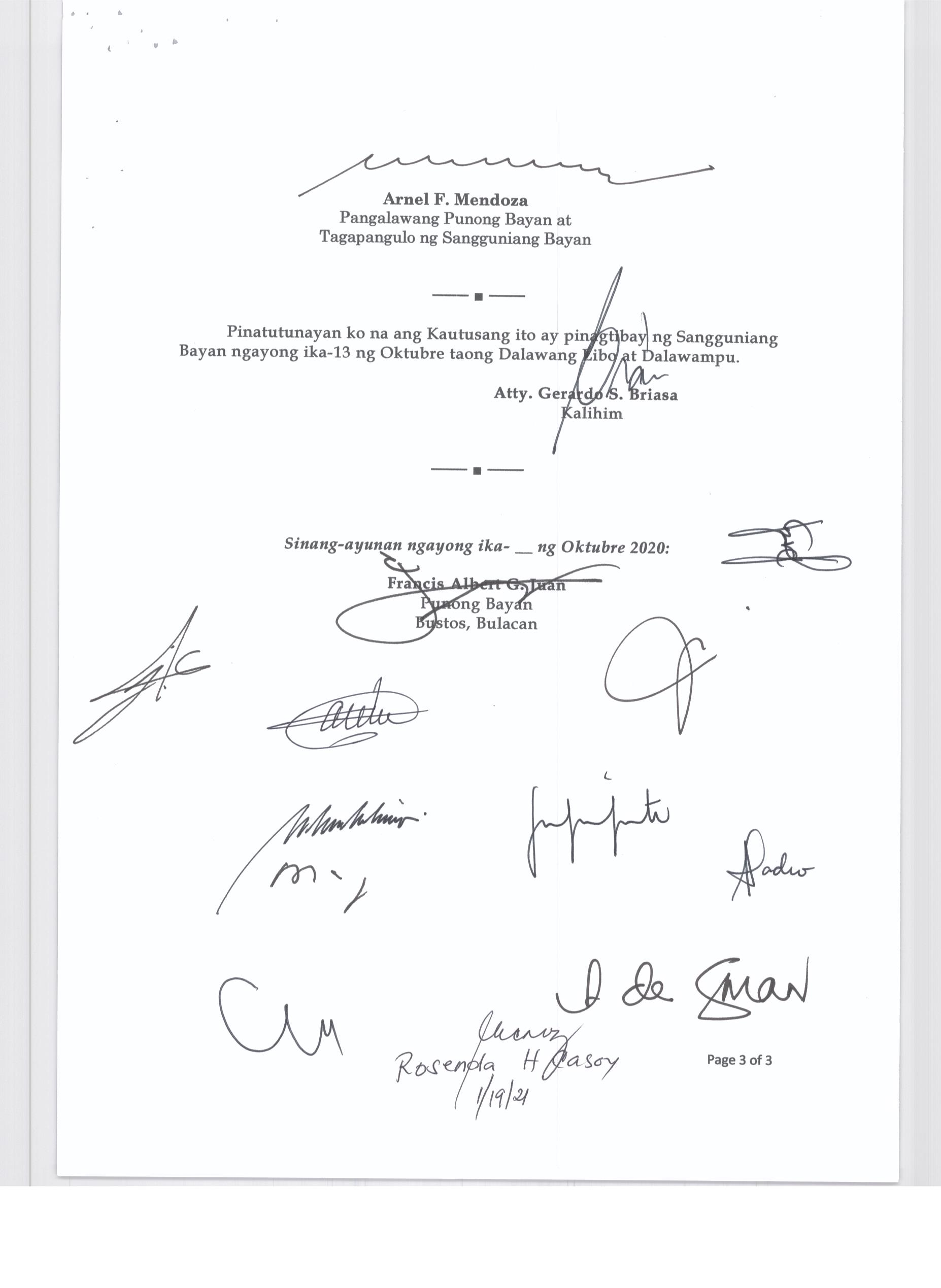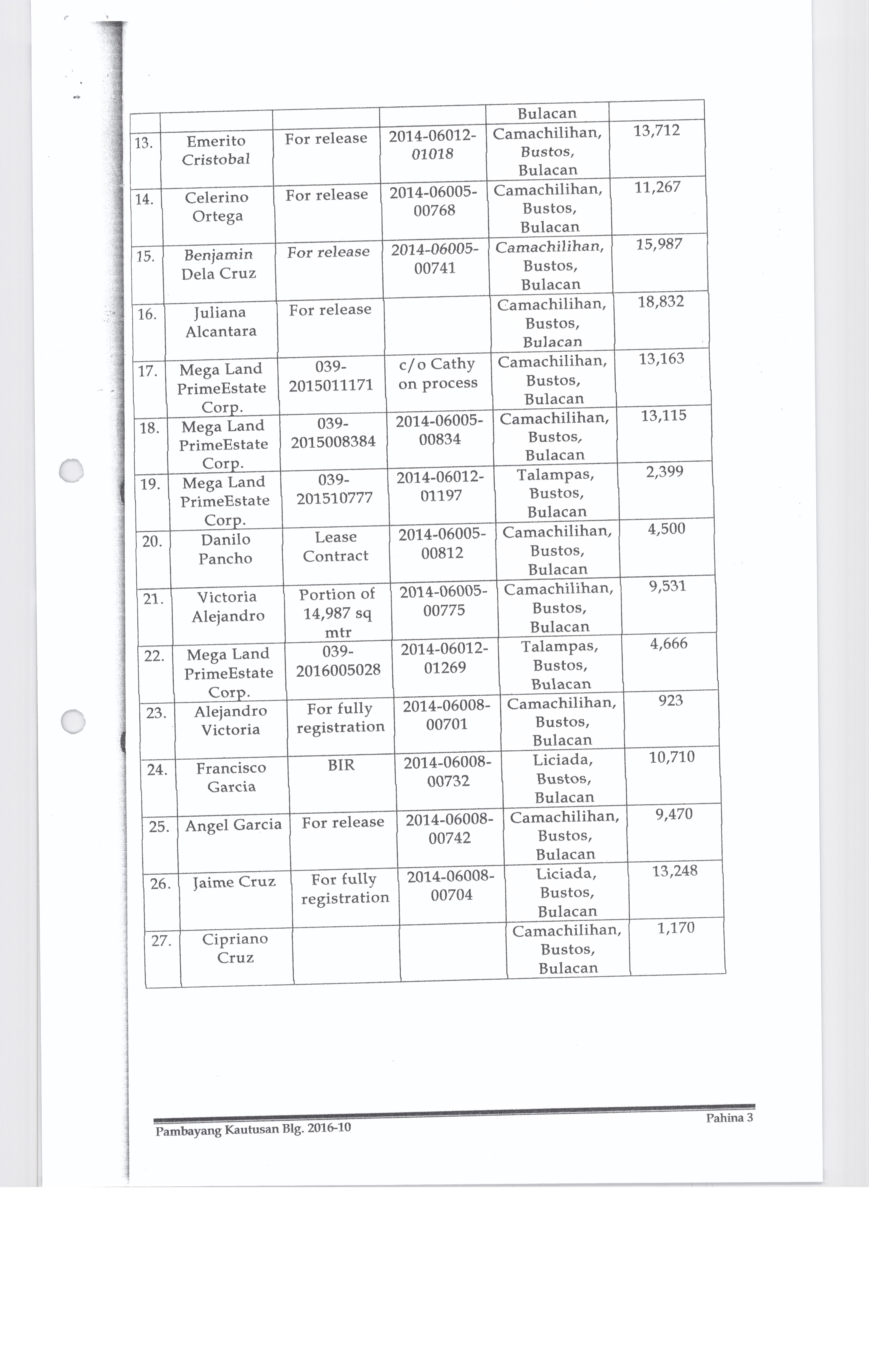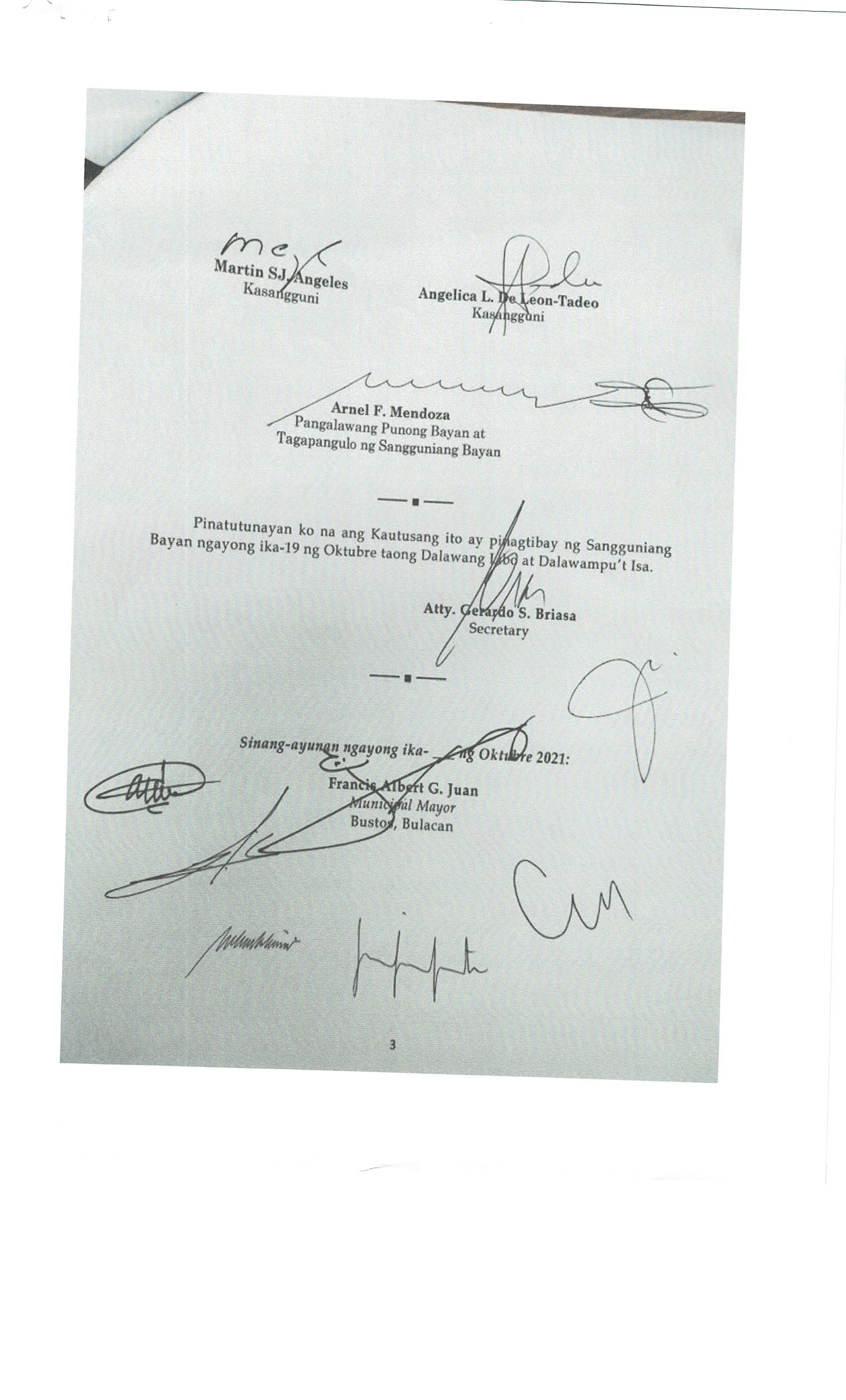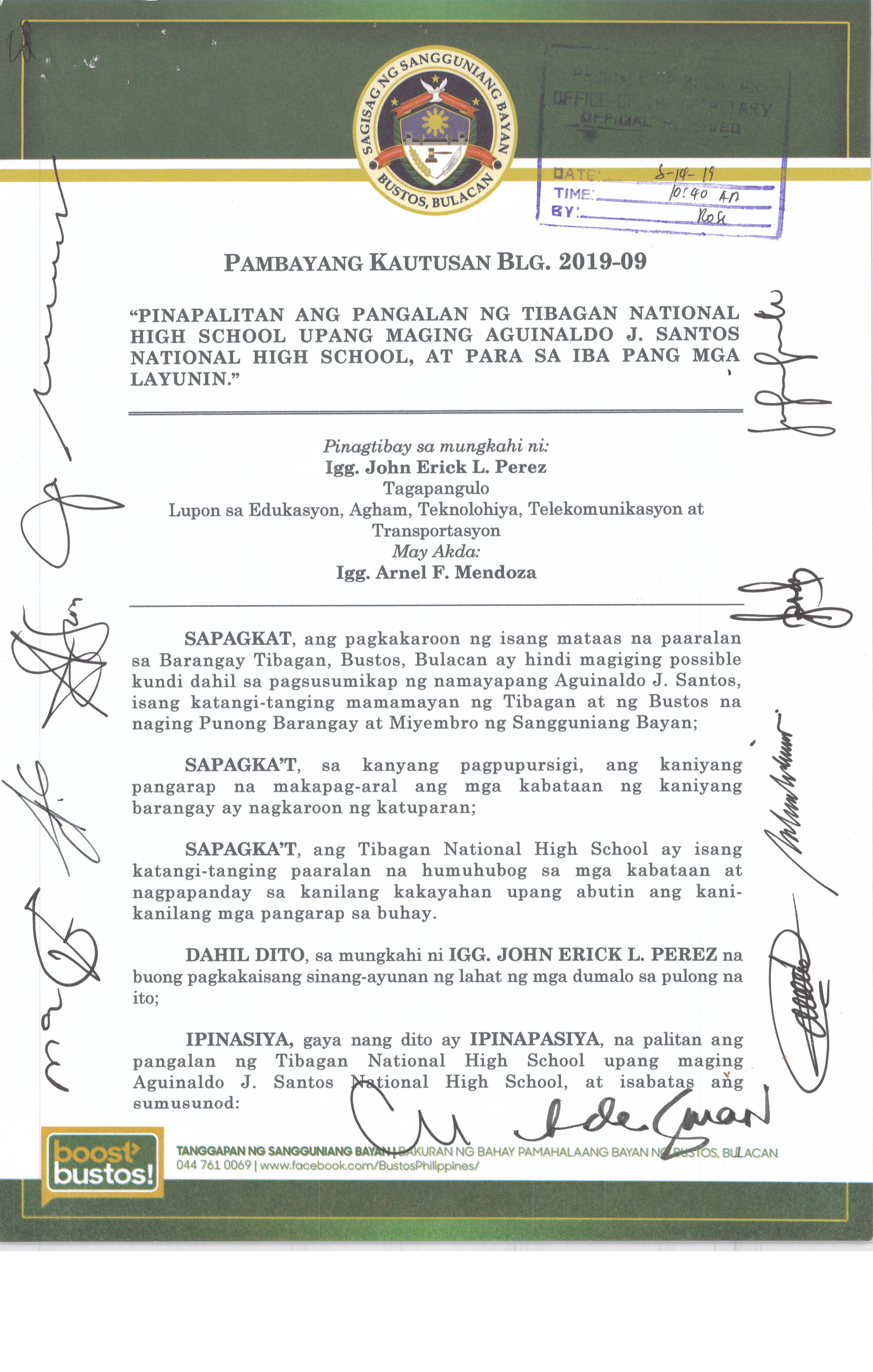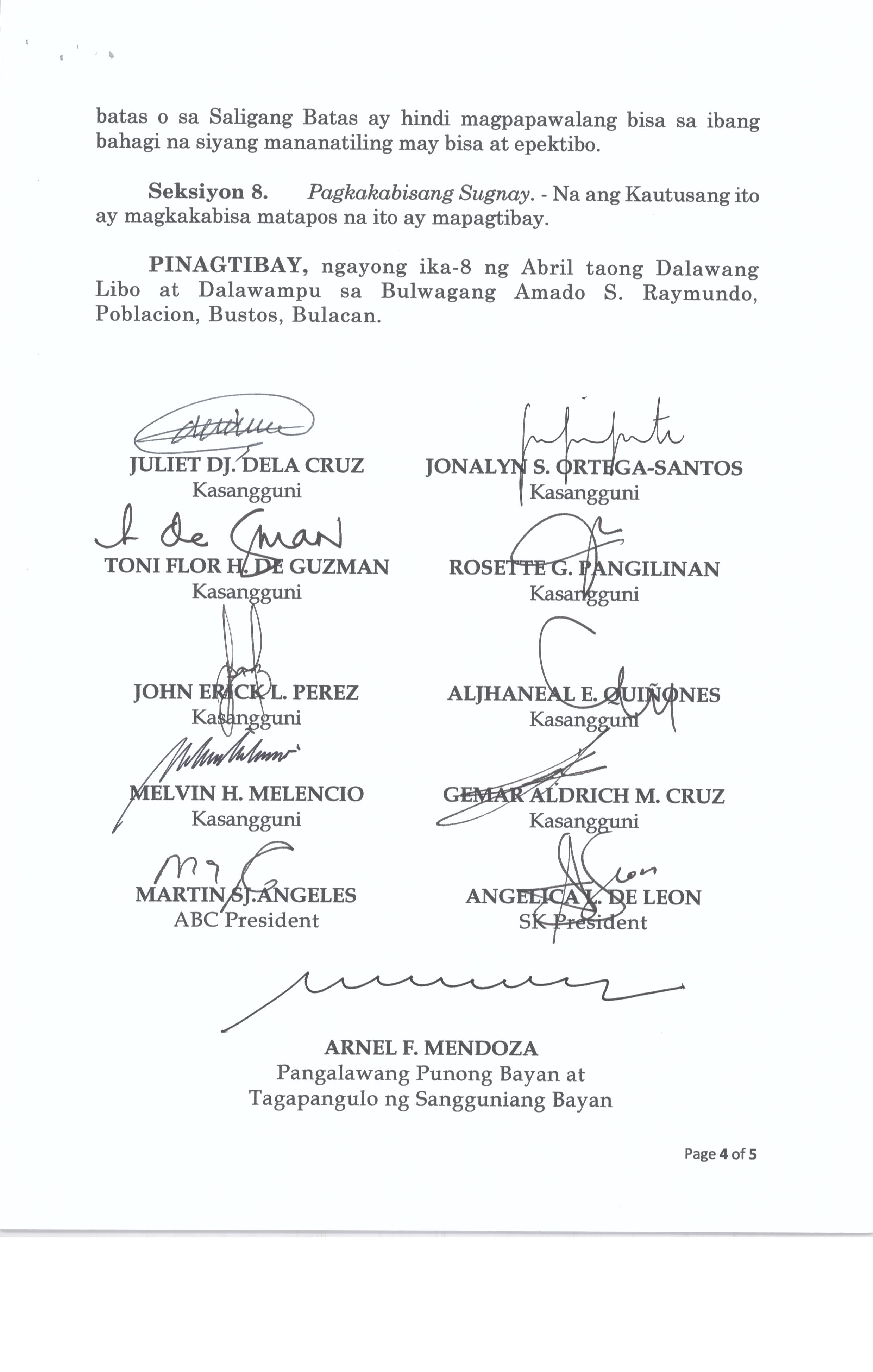 Pambayang Kautusang nagpapatibay sa kahilingan ni G. Adrian G. Santiago na muling pag-uuri ng lupa sa Barangay Bonga Menor Bustos Bulacan na may sukat na 2 ektarya buhat sa kabuuangsukat na 4.3 ektarya na isinasalarawan sa Transfer Certificate Title No. 039-2016006393 (LOT 4-A of the Subd. Plan PSD-03-177744)
