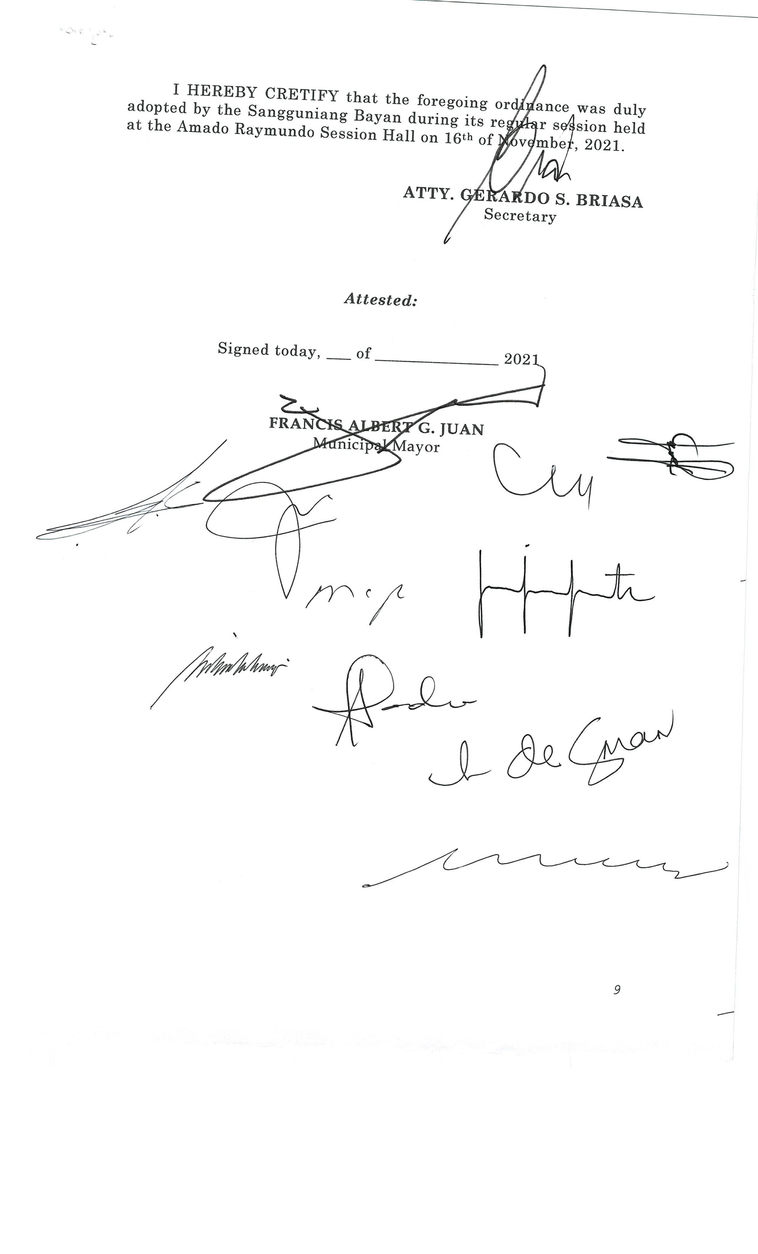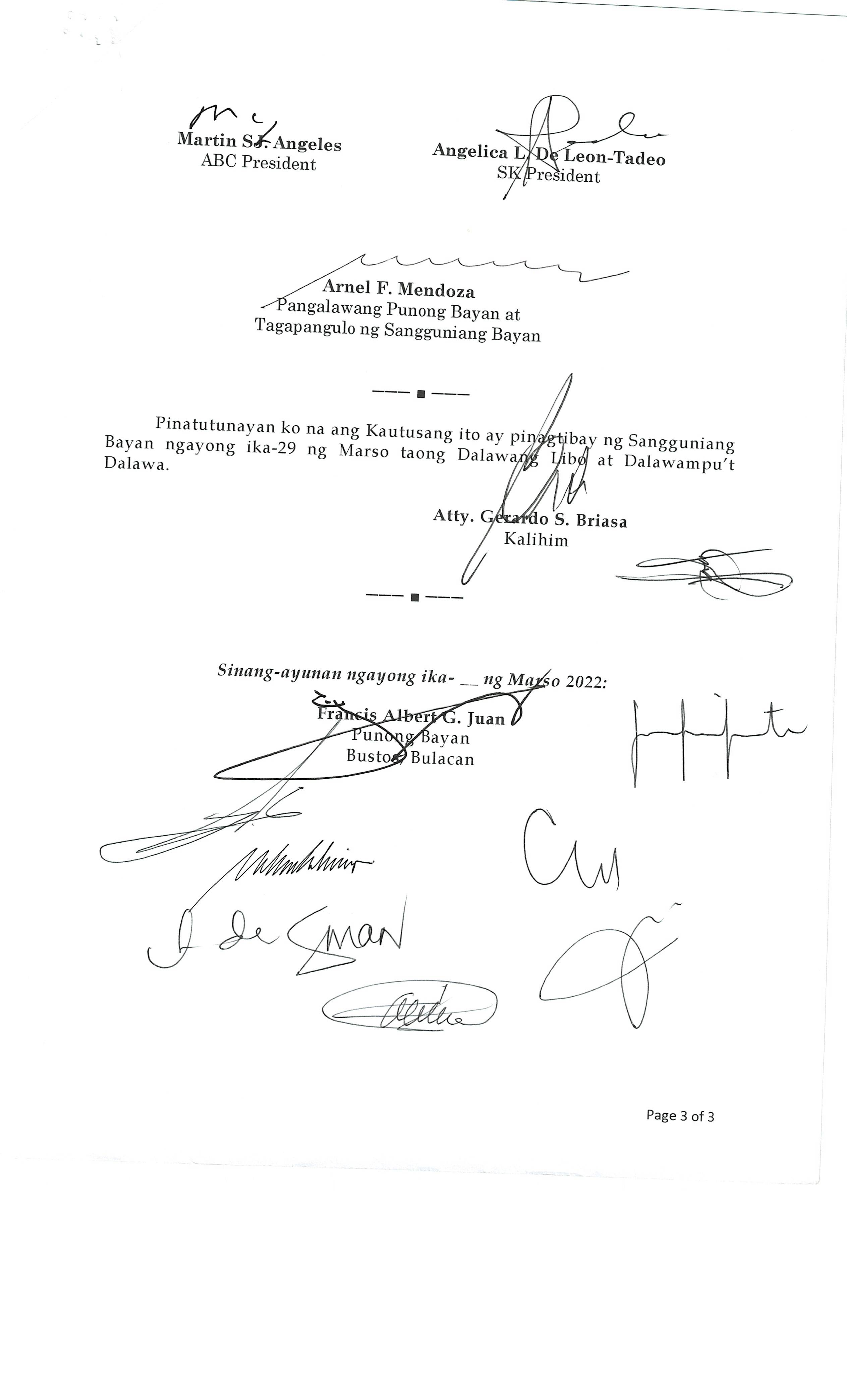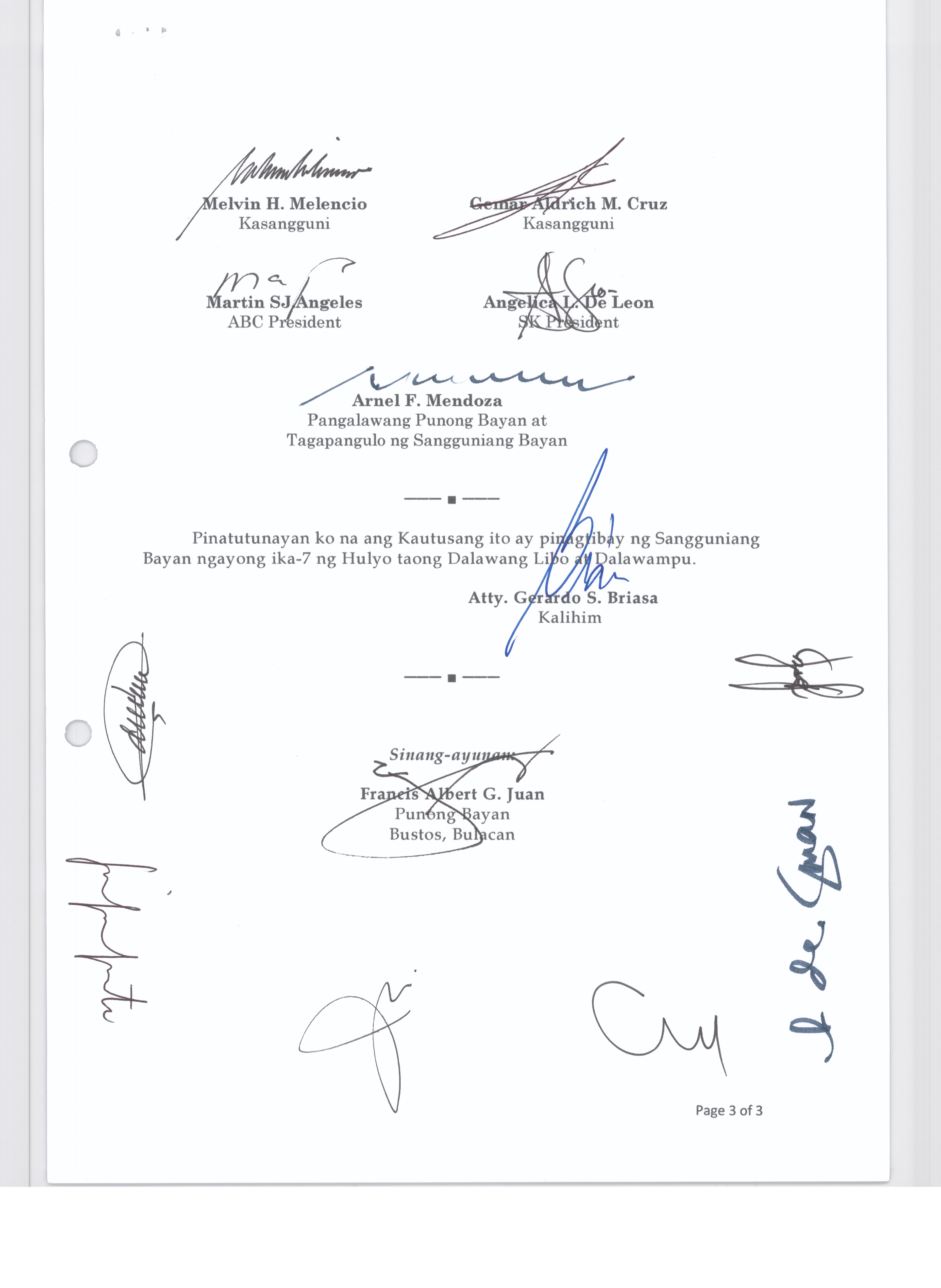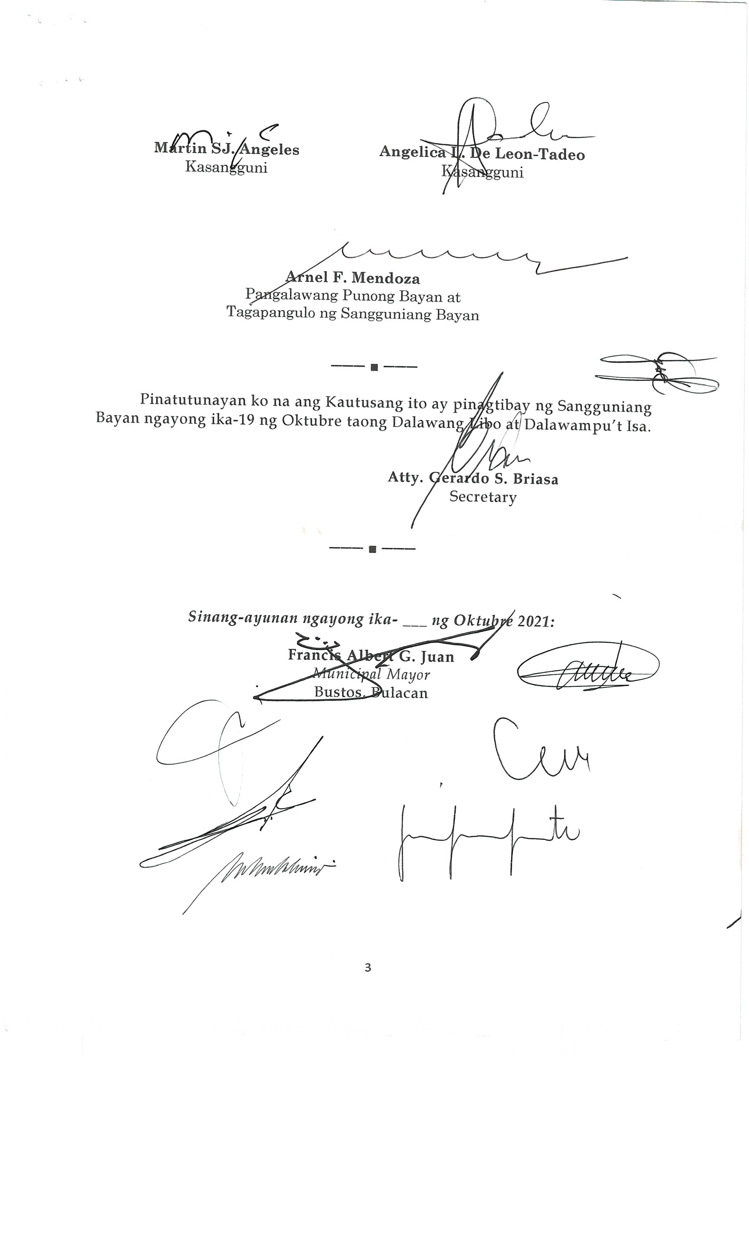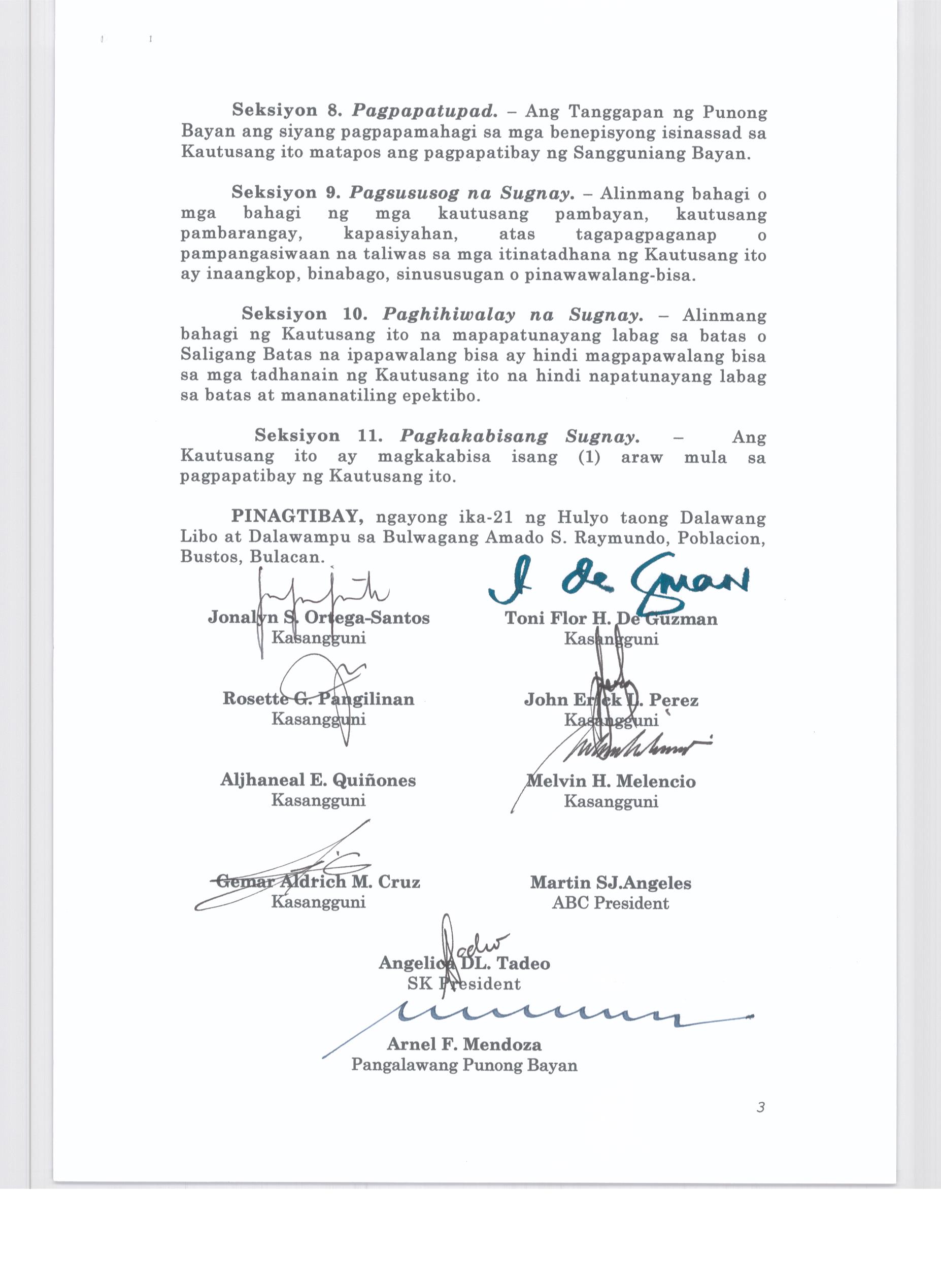 Pambayang Kautusang nagpapatibay sa kahilingan ni G. Adrian G. Santiago na muling pag-uuri ng lupa sa Barangay Bonga Menor Bustos Bulacan na may sukat na 2 ektarya buhat sa kabuuangsukat na 4.3 ektarya na isinasalarawan sa Transfer Certificate Title No. 039-2016006393 (LOT 4-A of the Subd. Plan PSD-03-177744)