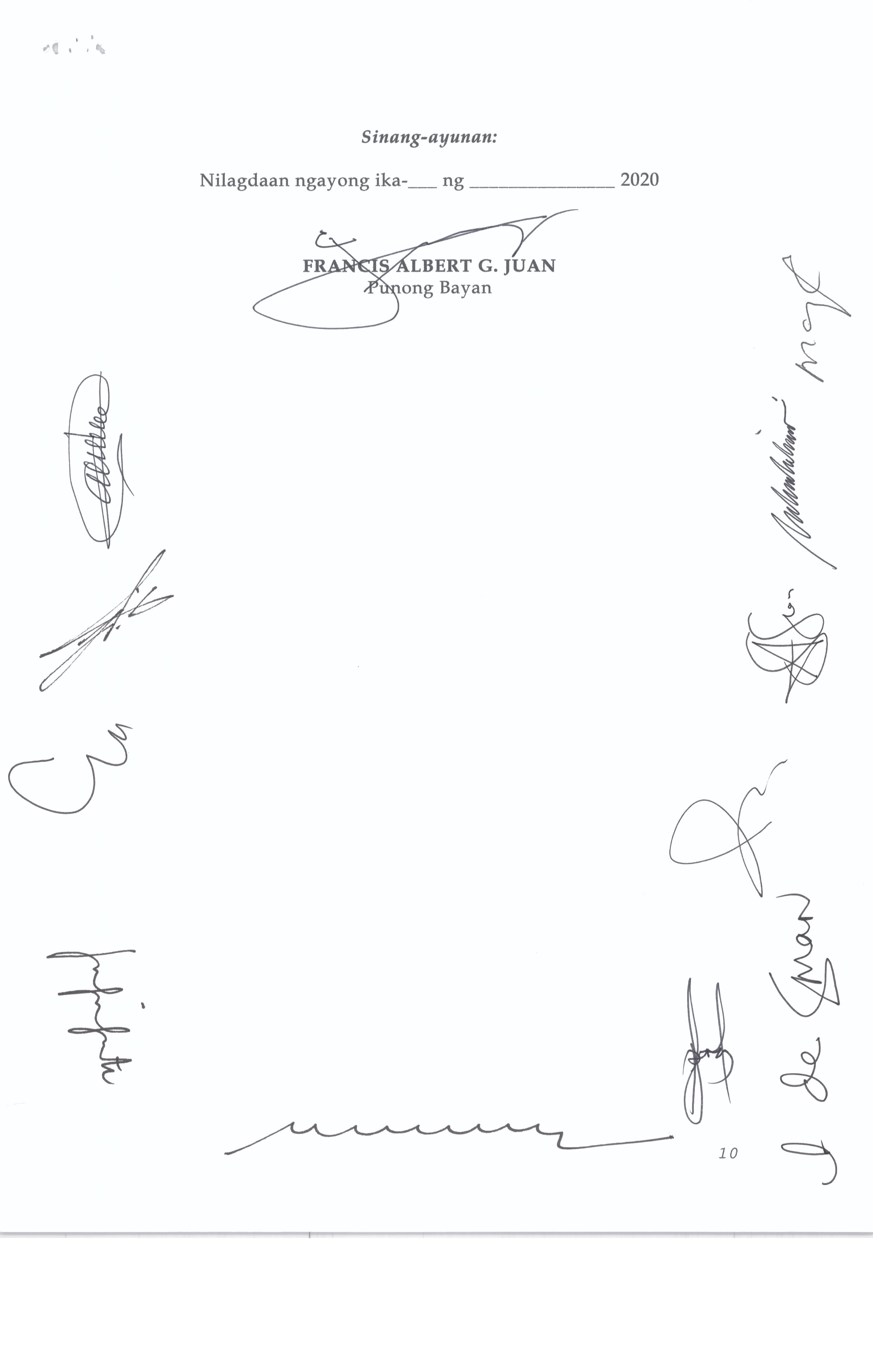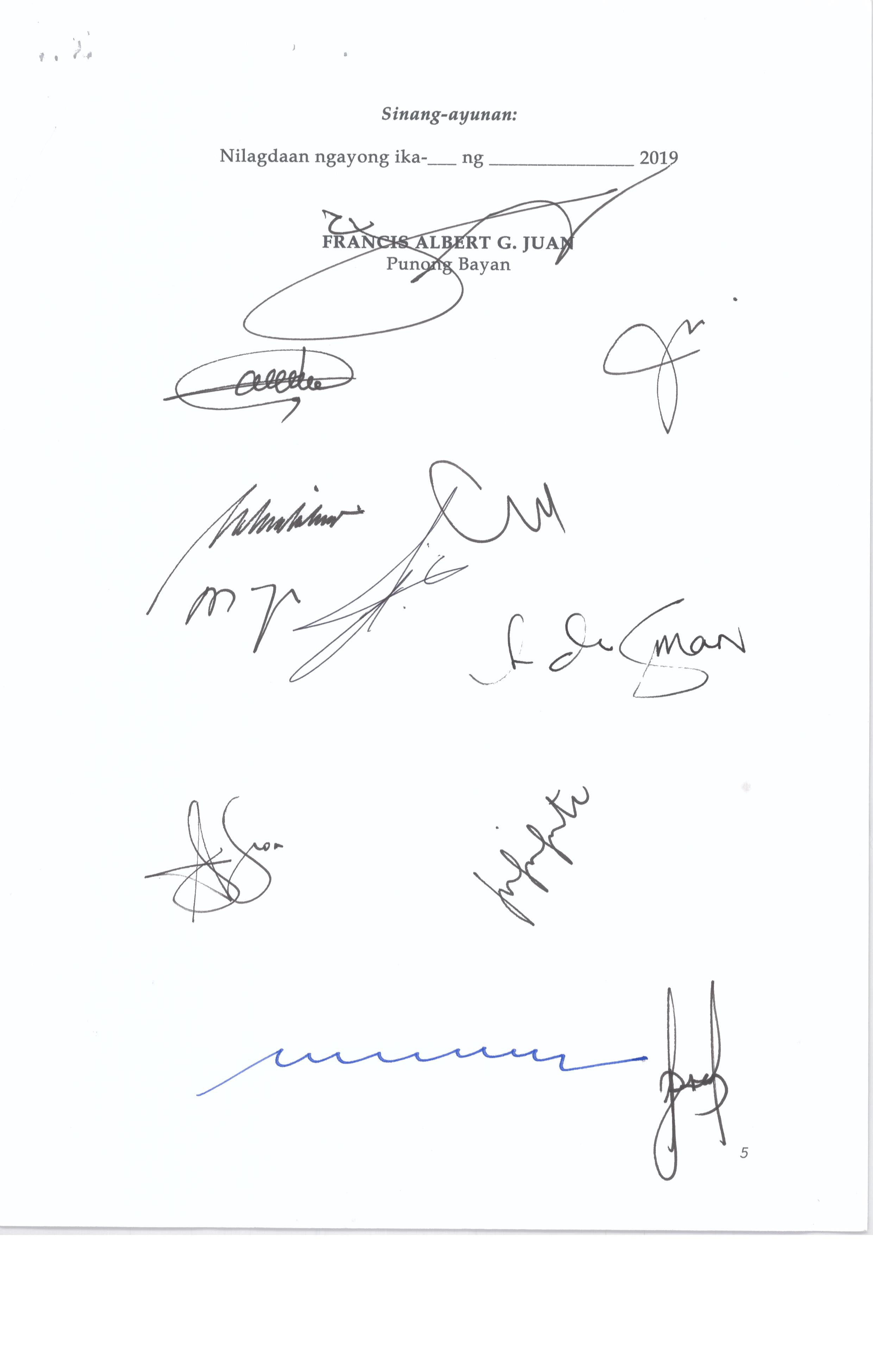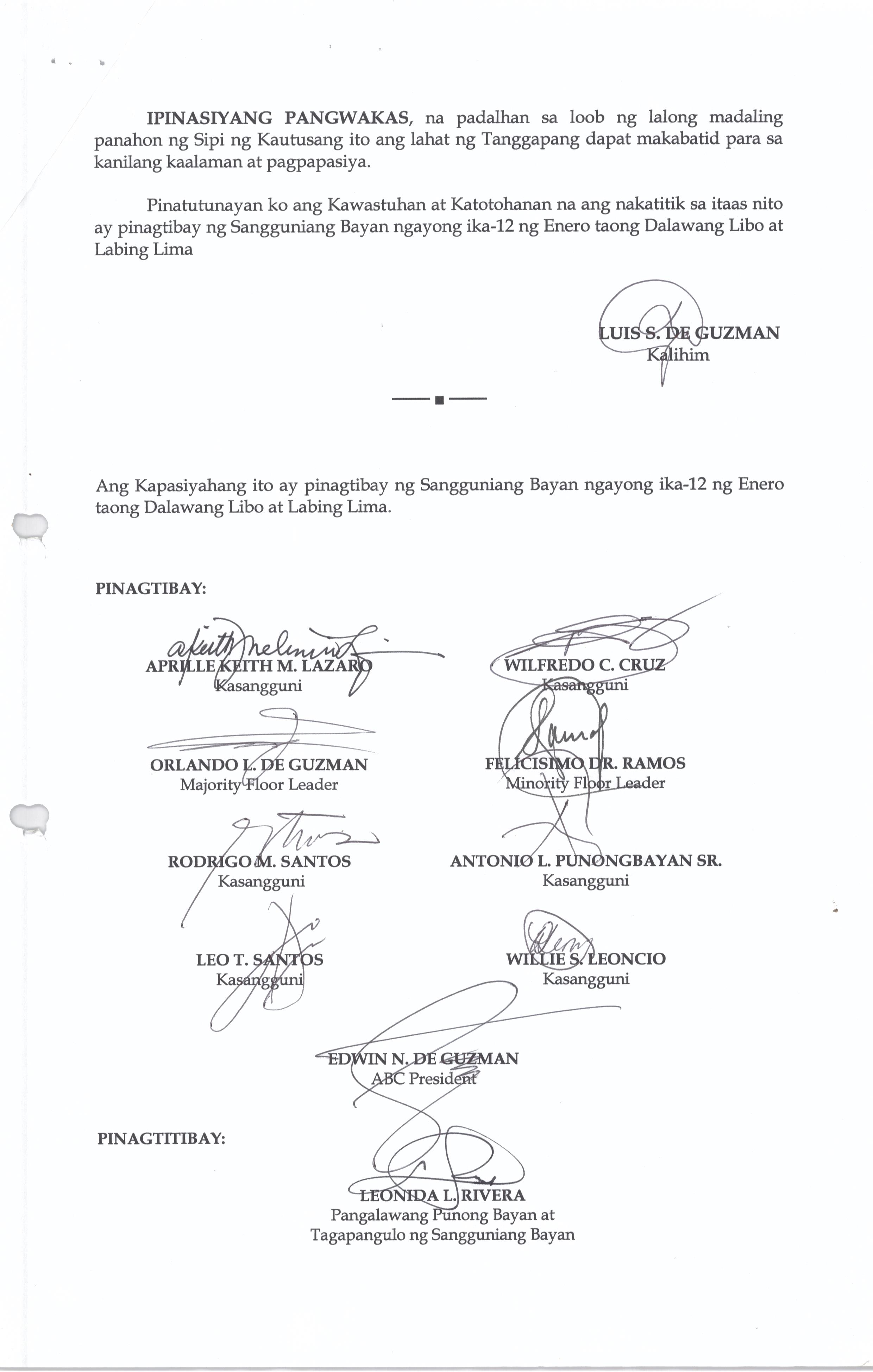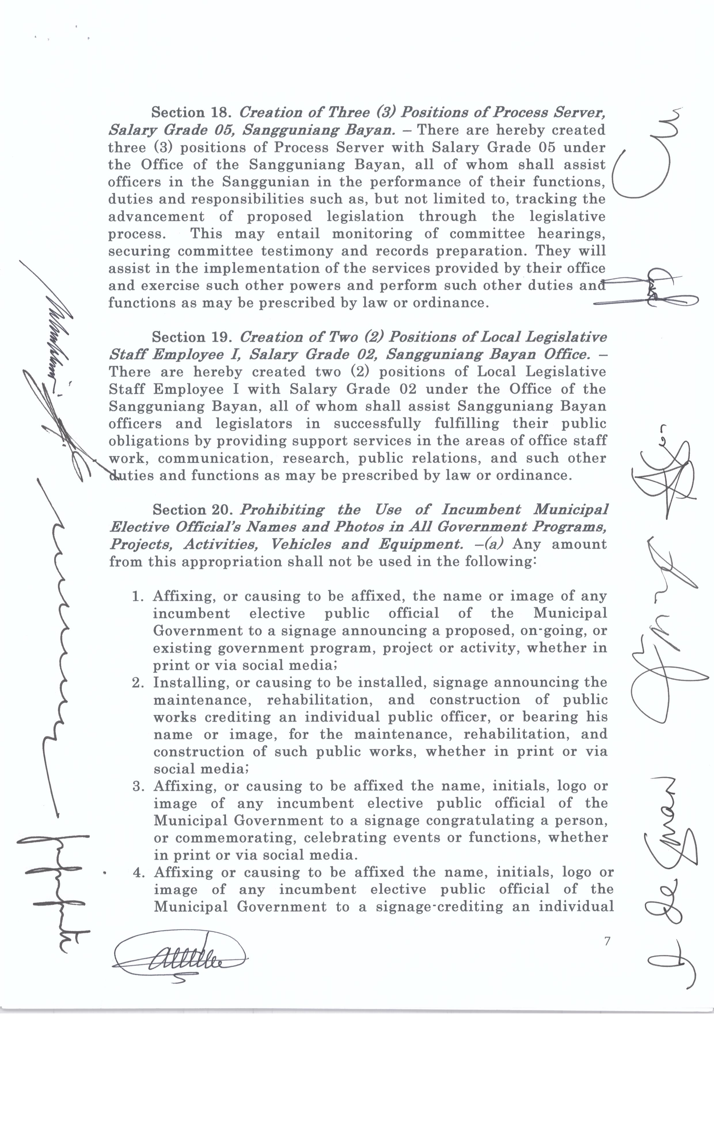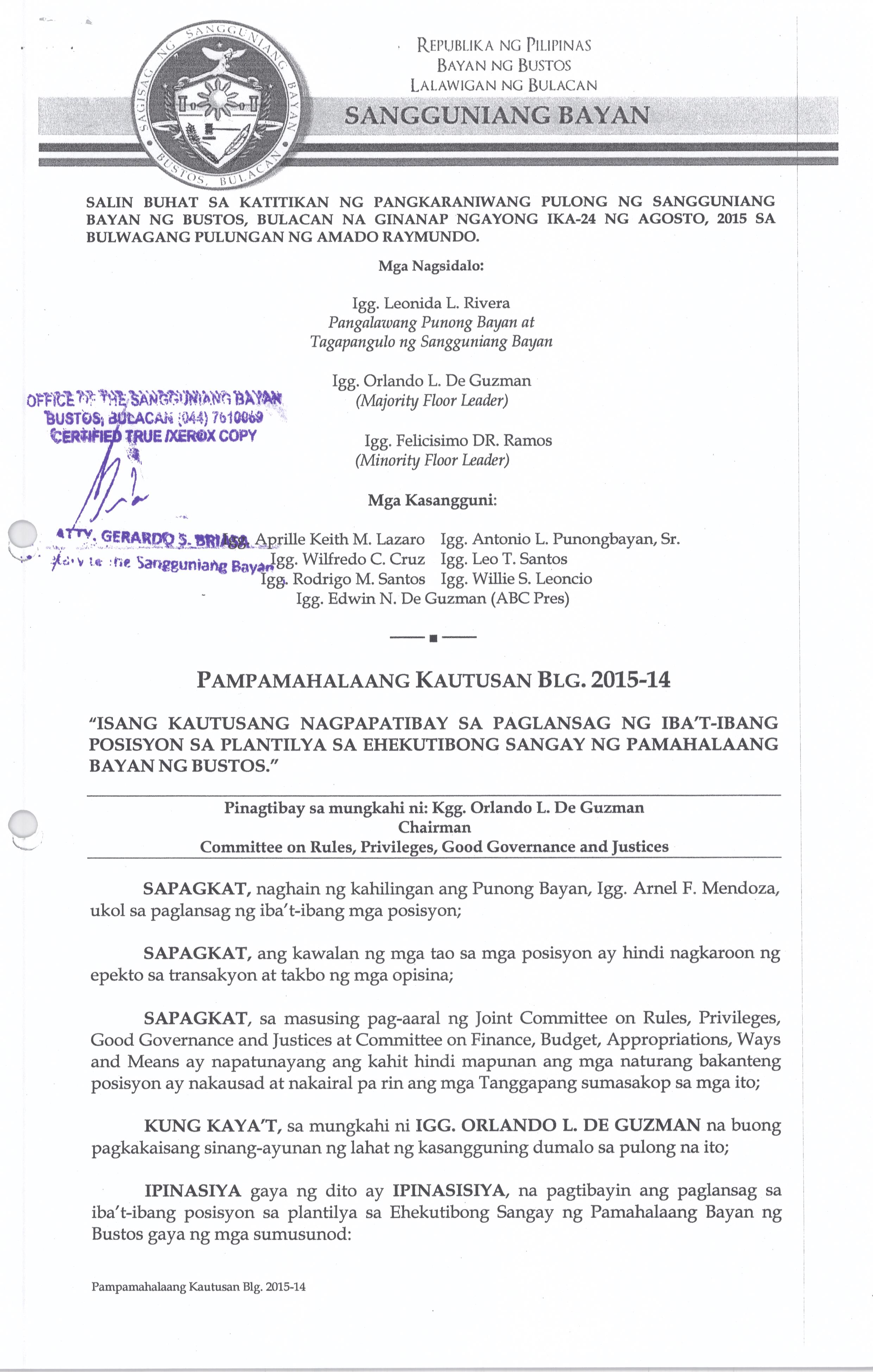 Isang Kautusang nagpapatibay sa Paglansag sa iba’t-ibang Posisyon sa Plantilya sa EhekutibongSangay ng Pamahalaang Bayan.