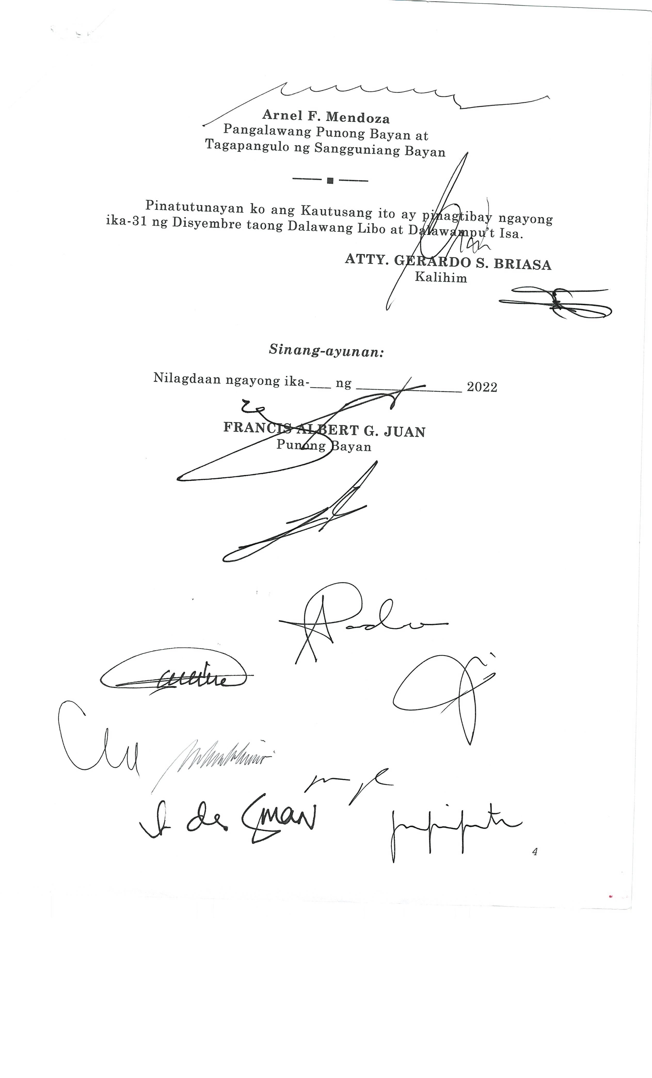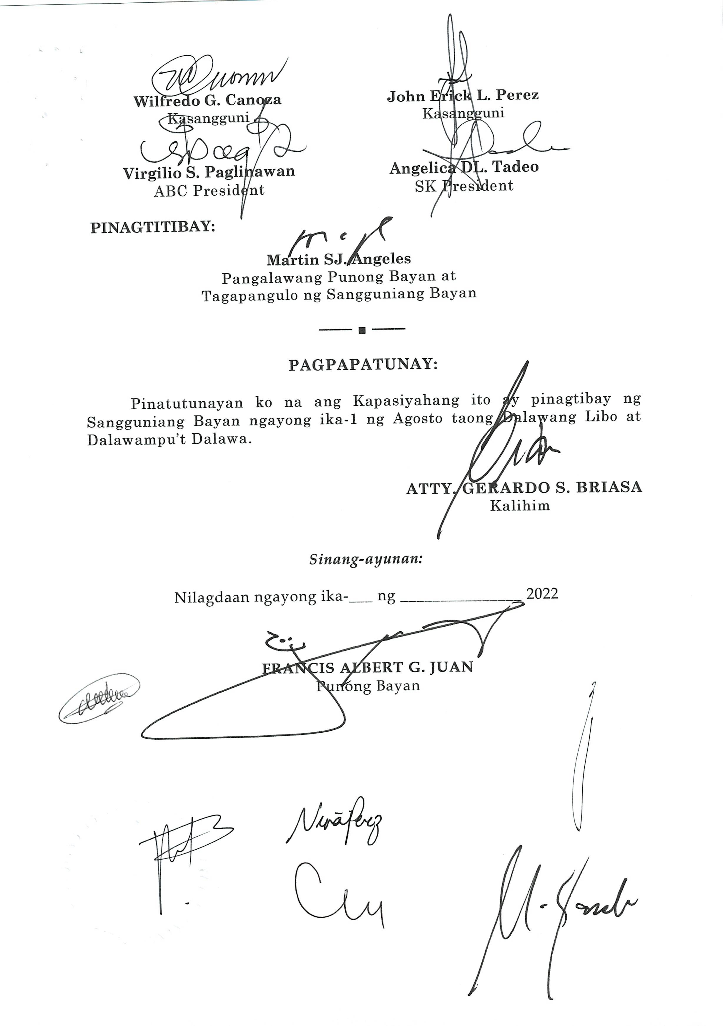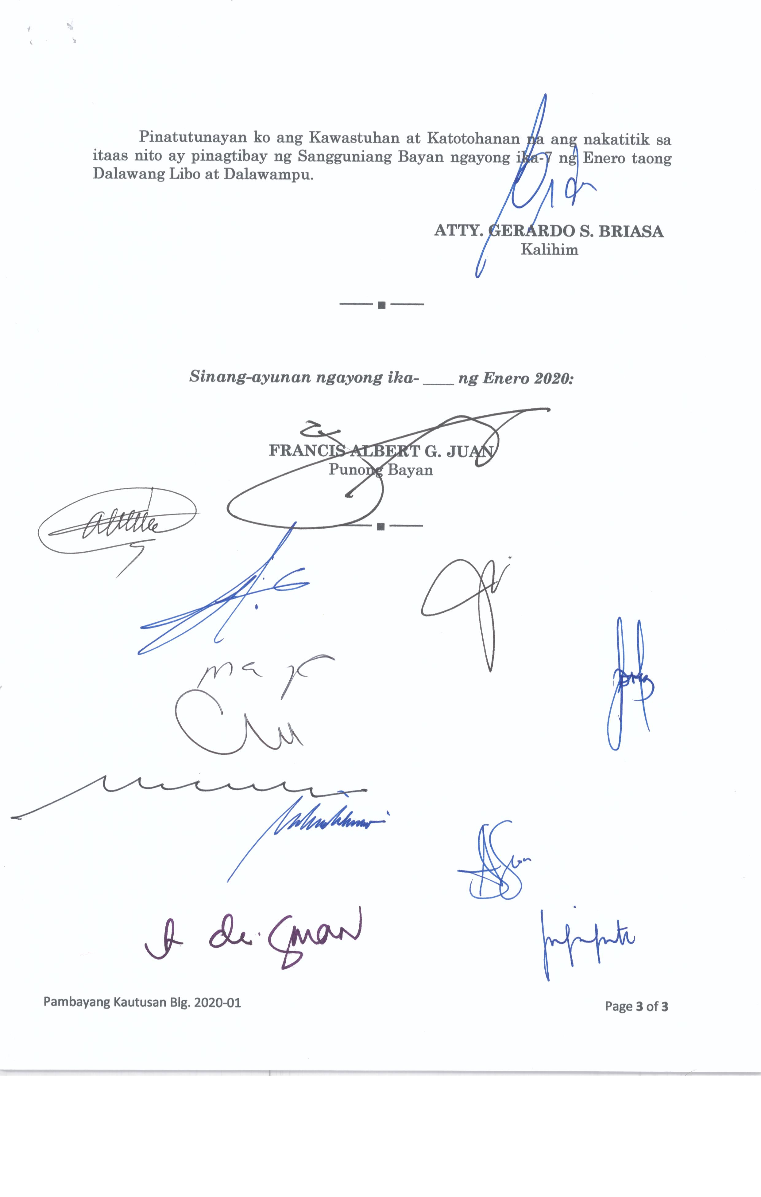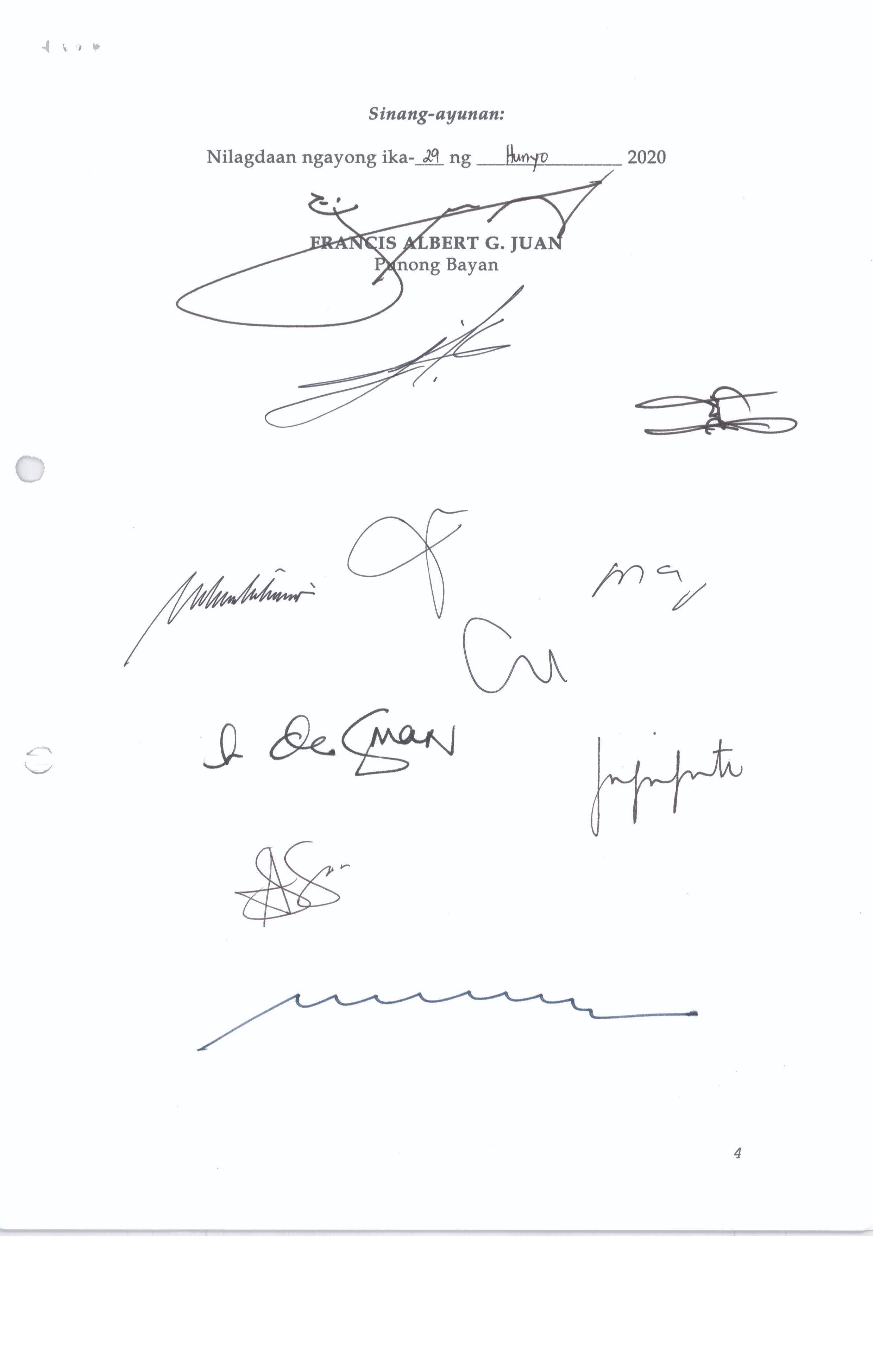 Isang Kautusang nagpapatibay sa Paglansag sa iba’t-ibang Posisyon sa Plantilya sa EhekutibongSangay ng Pamahalaang Bayan.