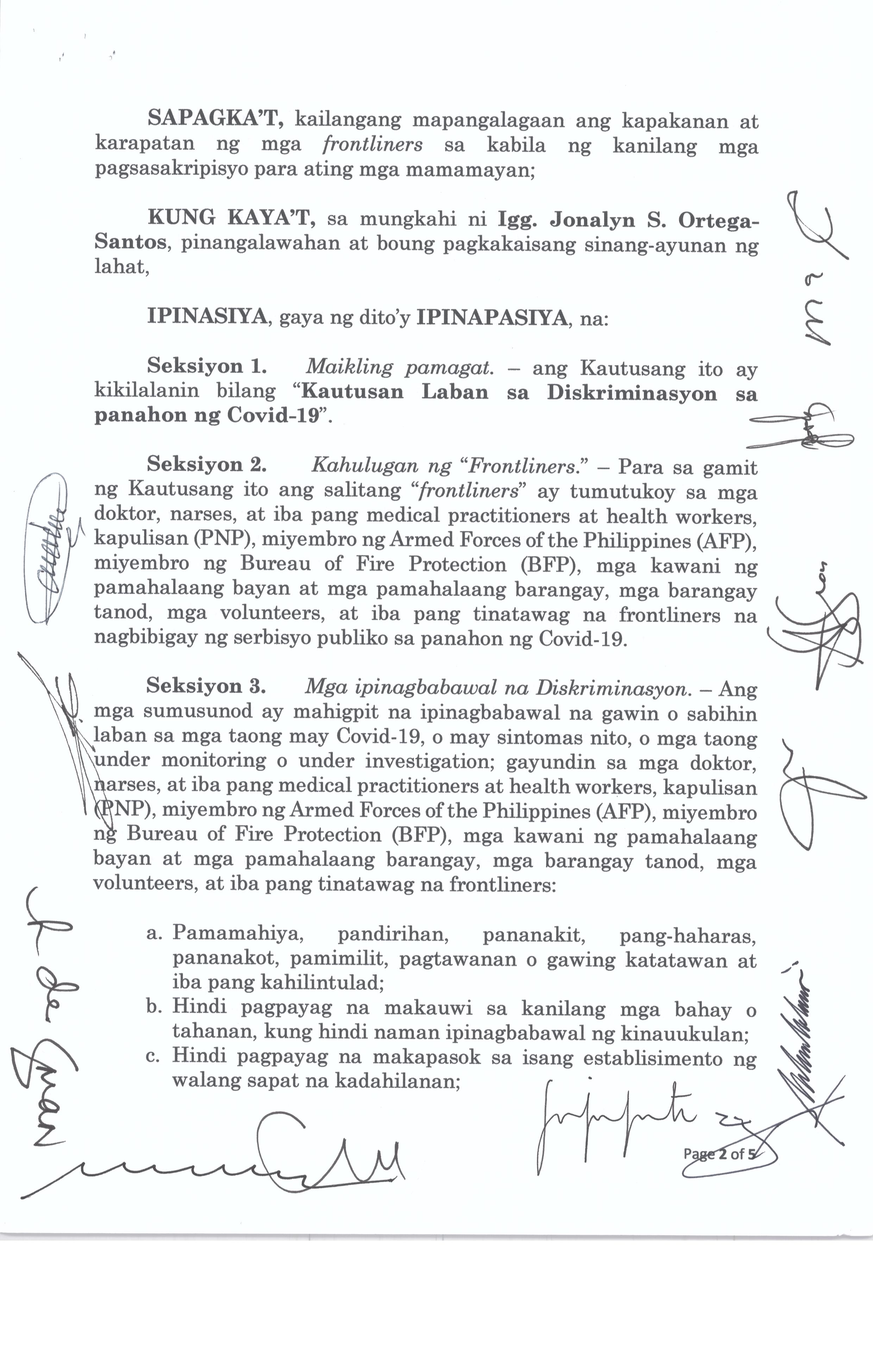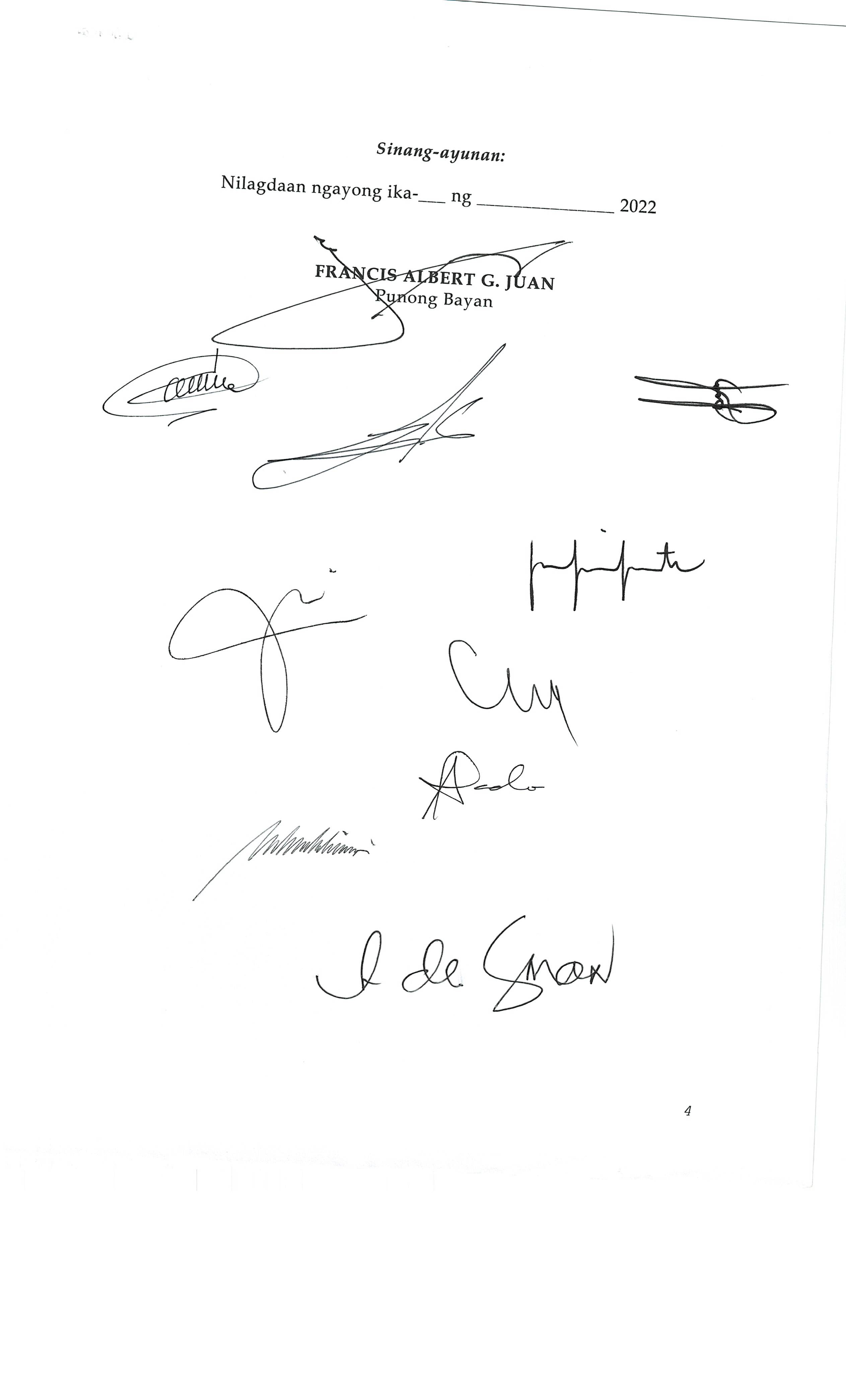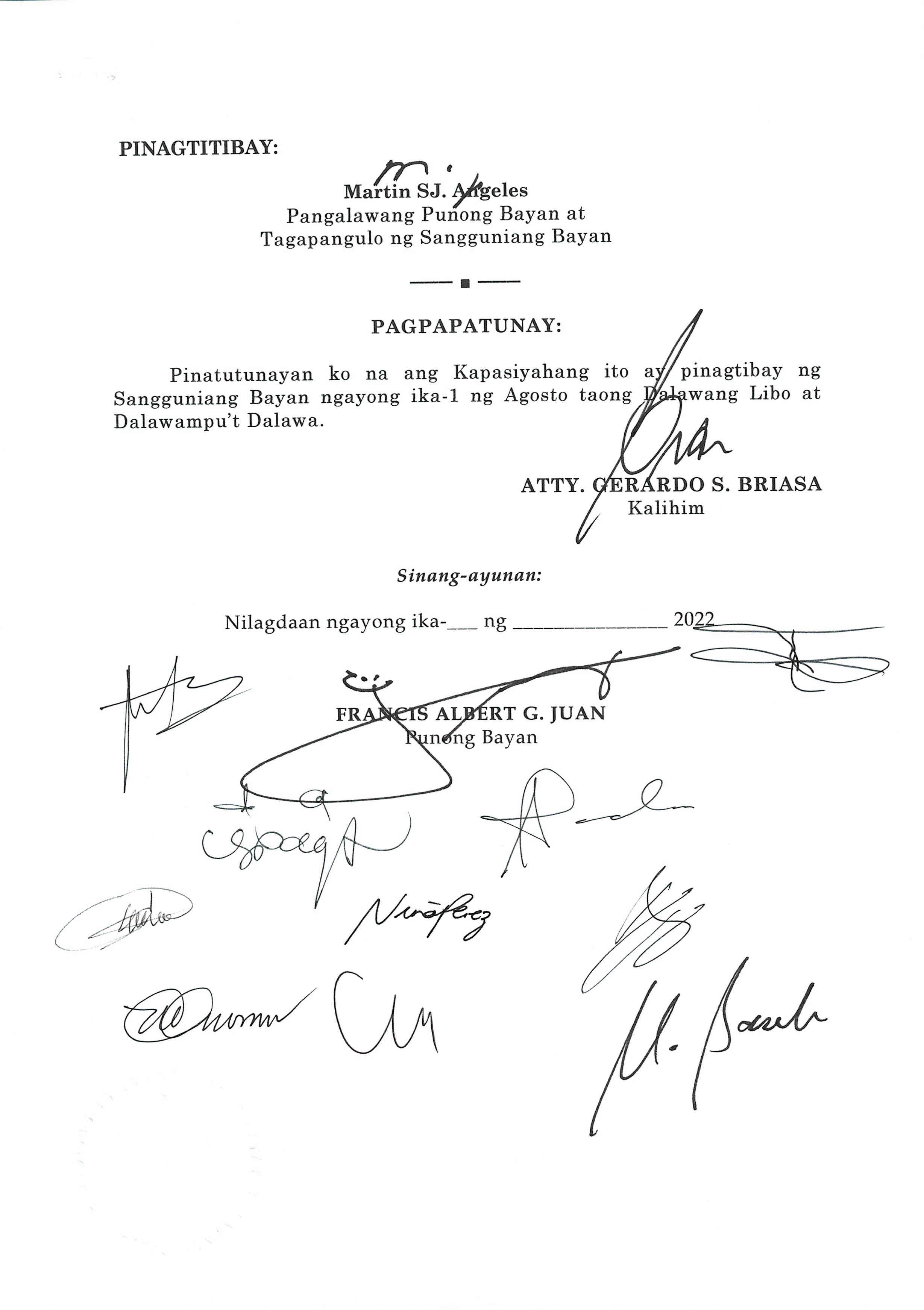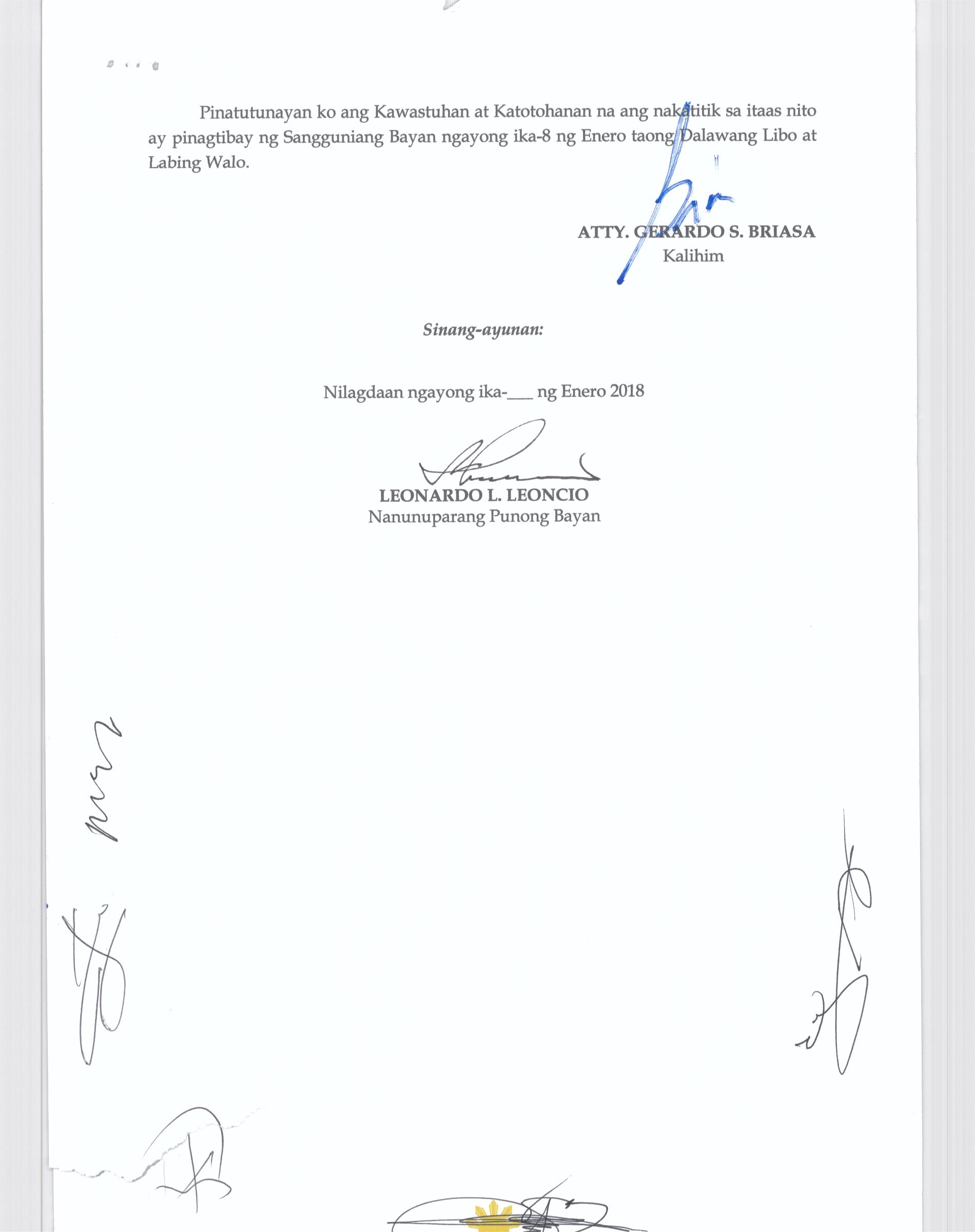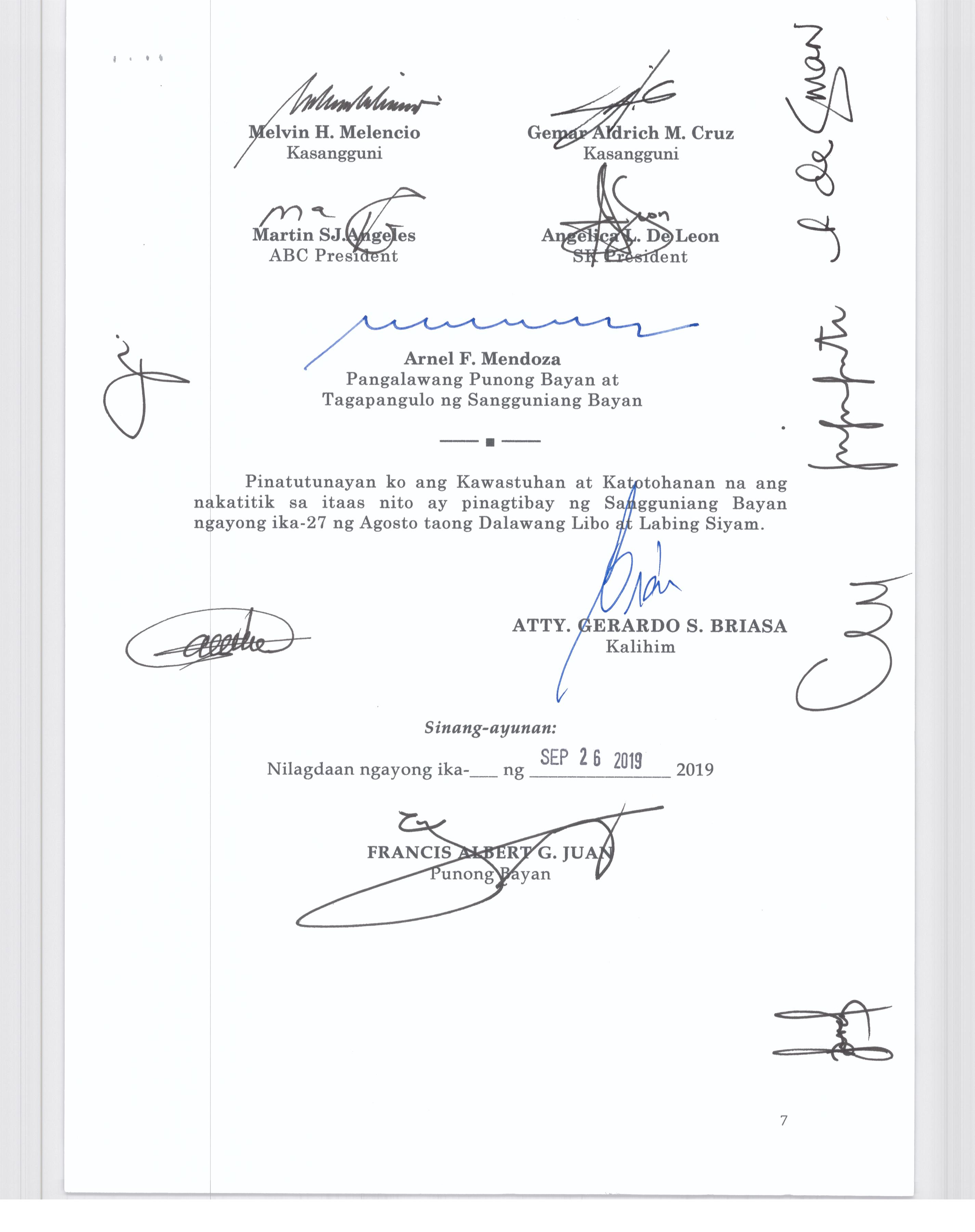 Isang Kautusang nagpapatibay sa Paglansag sa iba’t-ibang Posisyon sa Plantilya sa EhekutibongSangay ng Pamahalaang Bayan.
