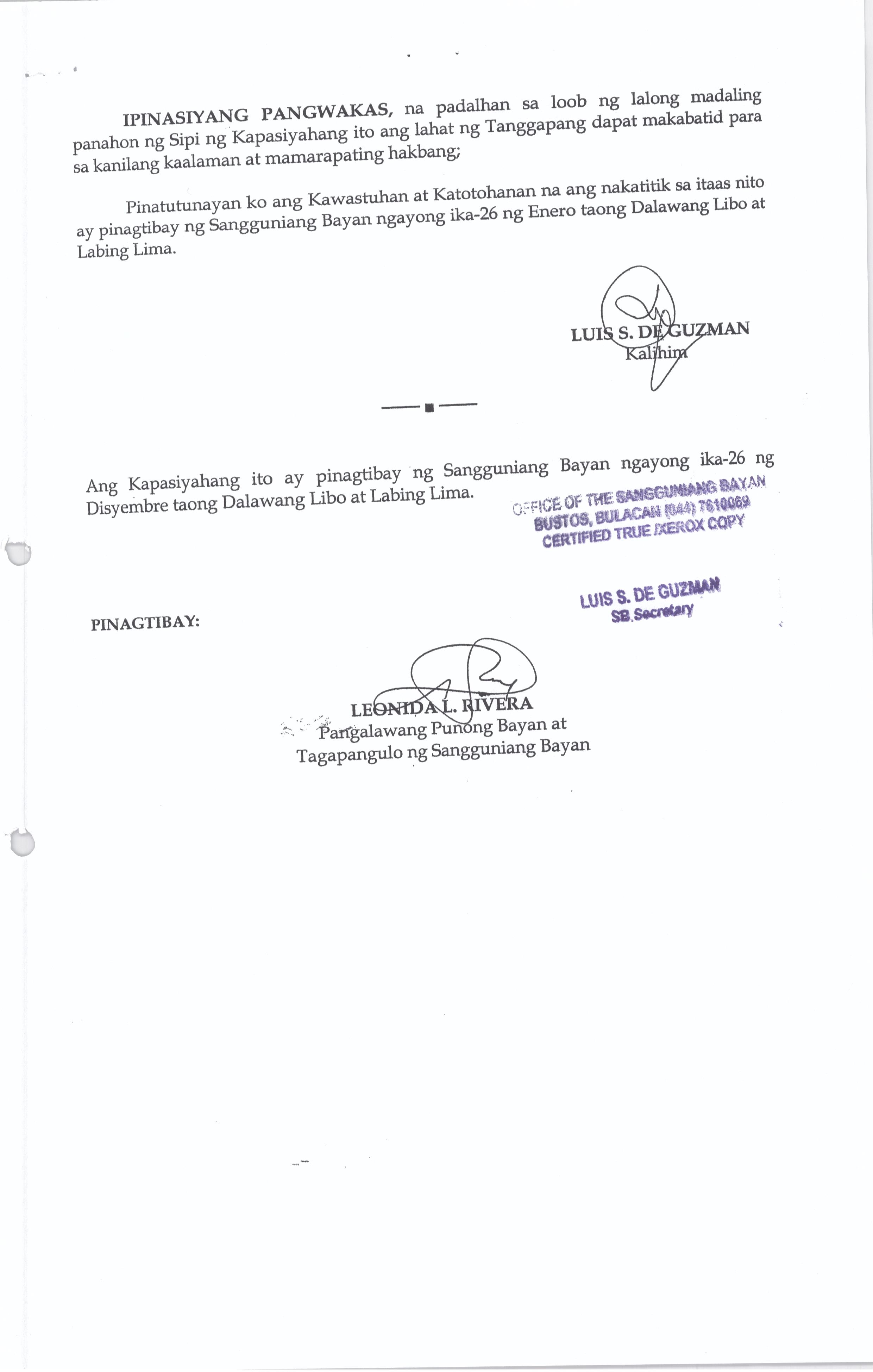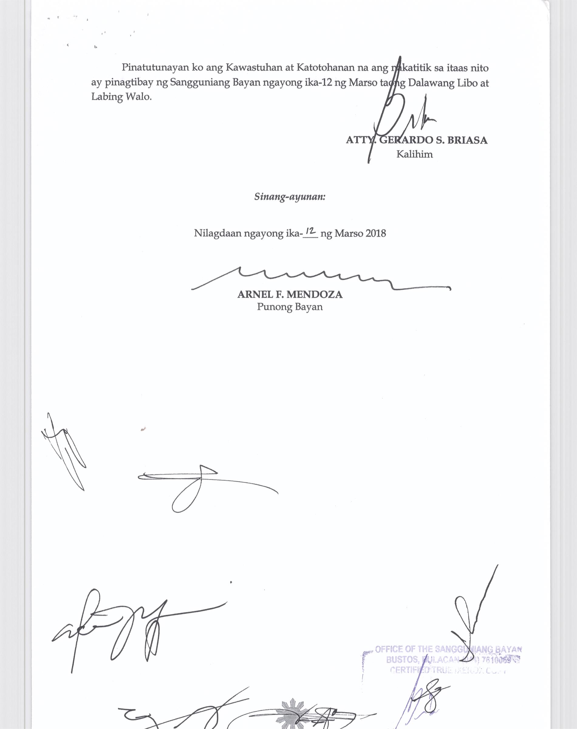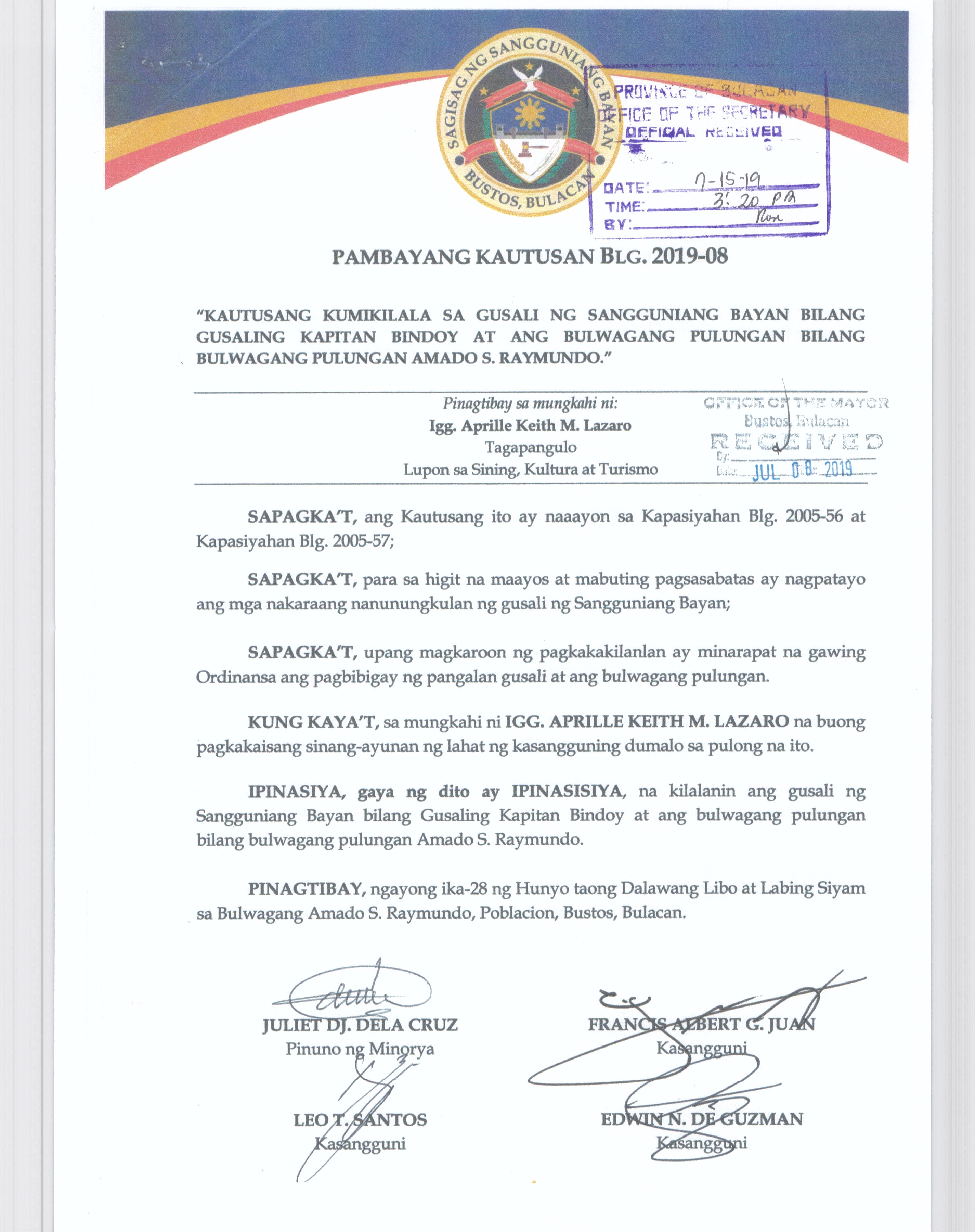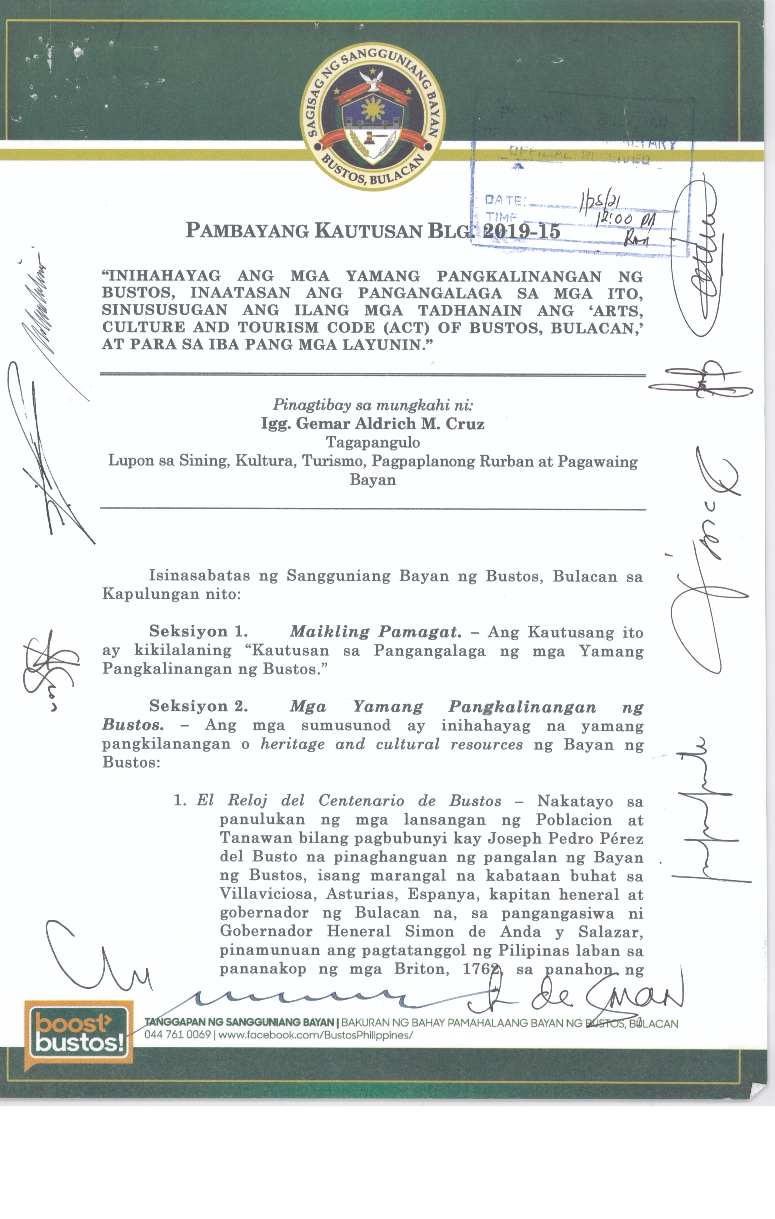 Browse through the official ordinances passed by the Sangguniang Bayan of Bustos, Bulacan