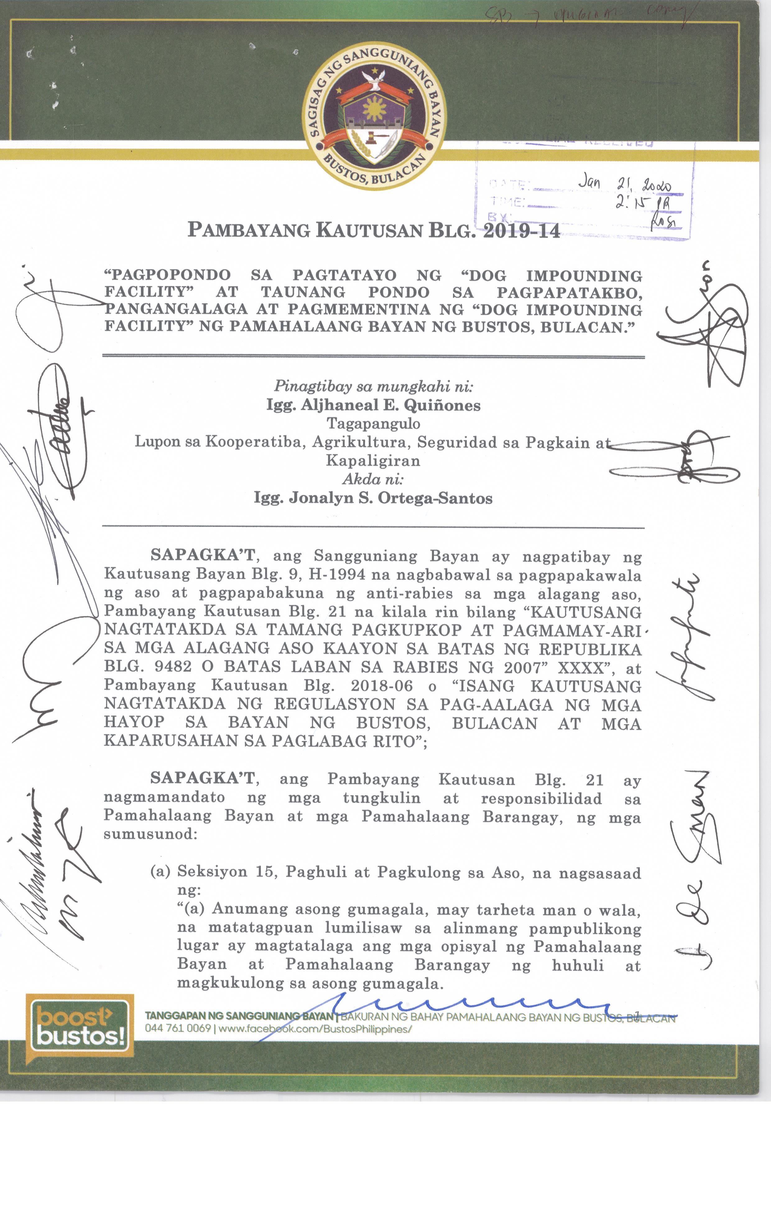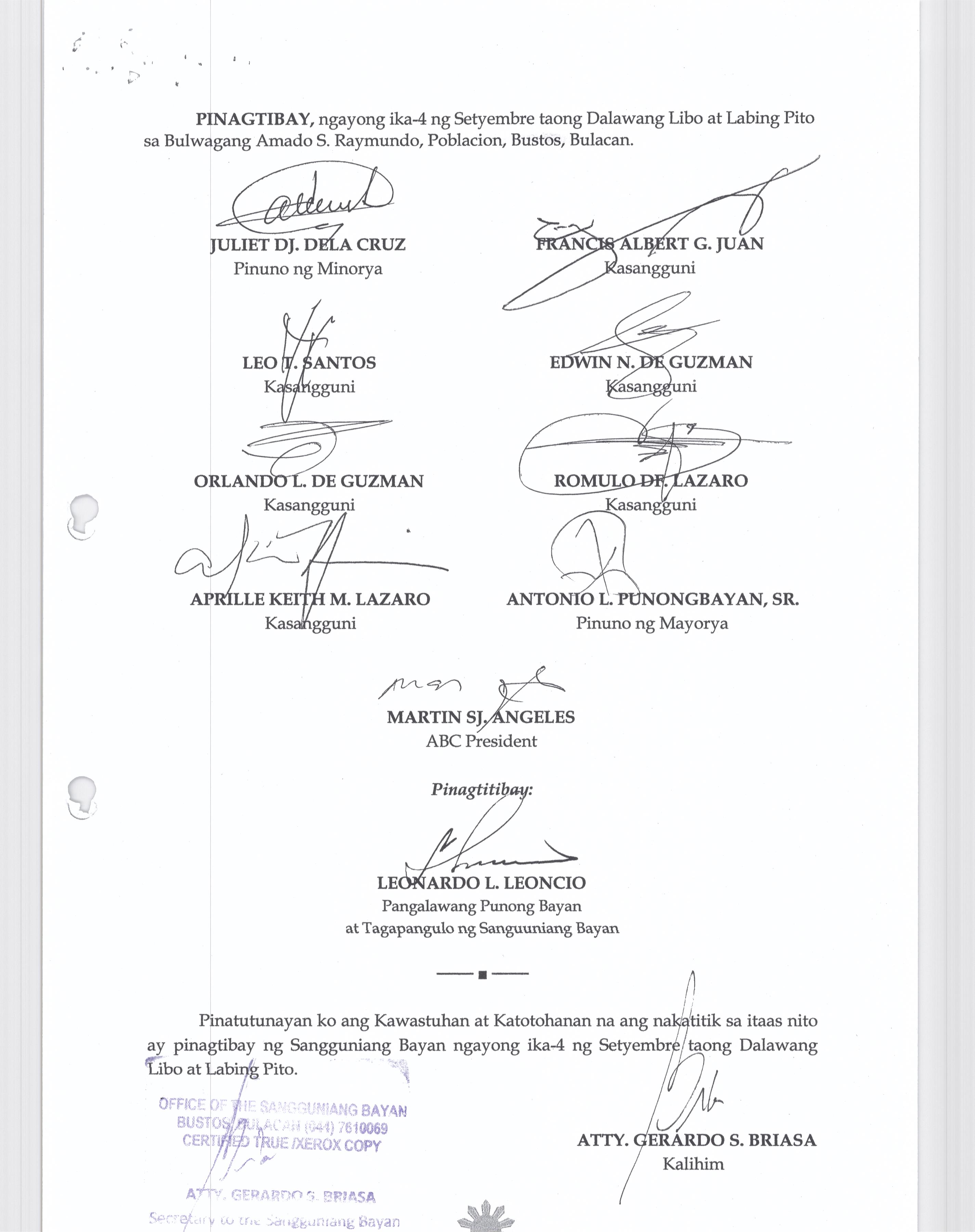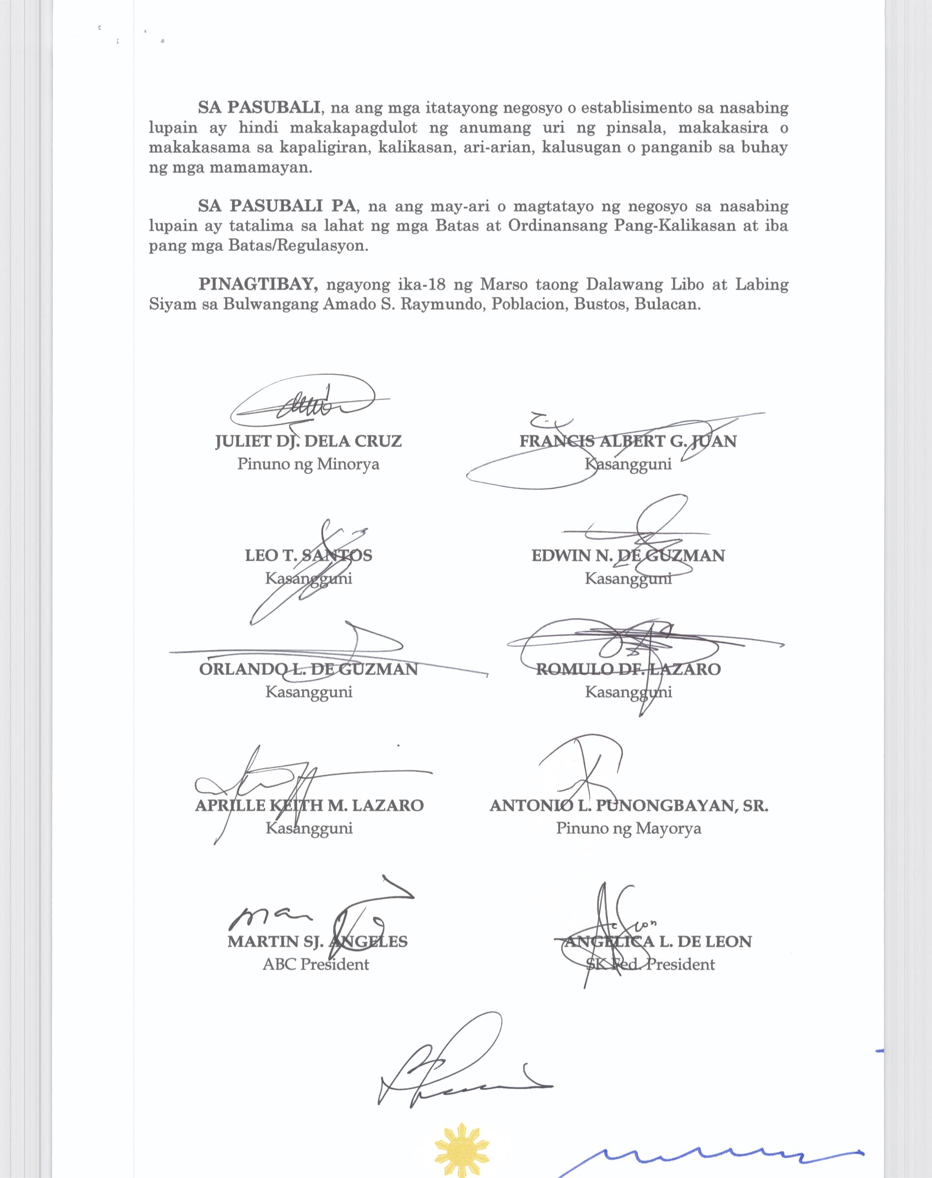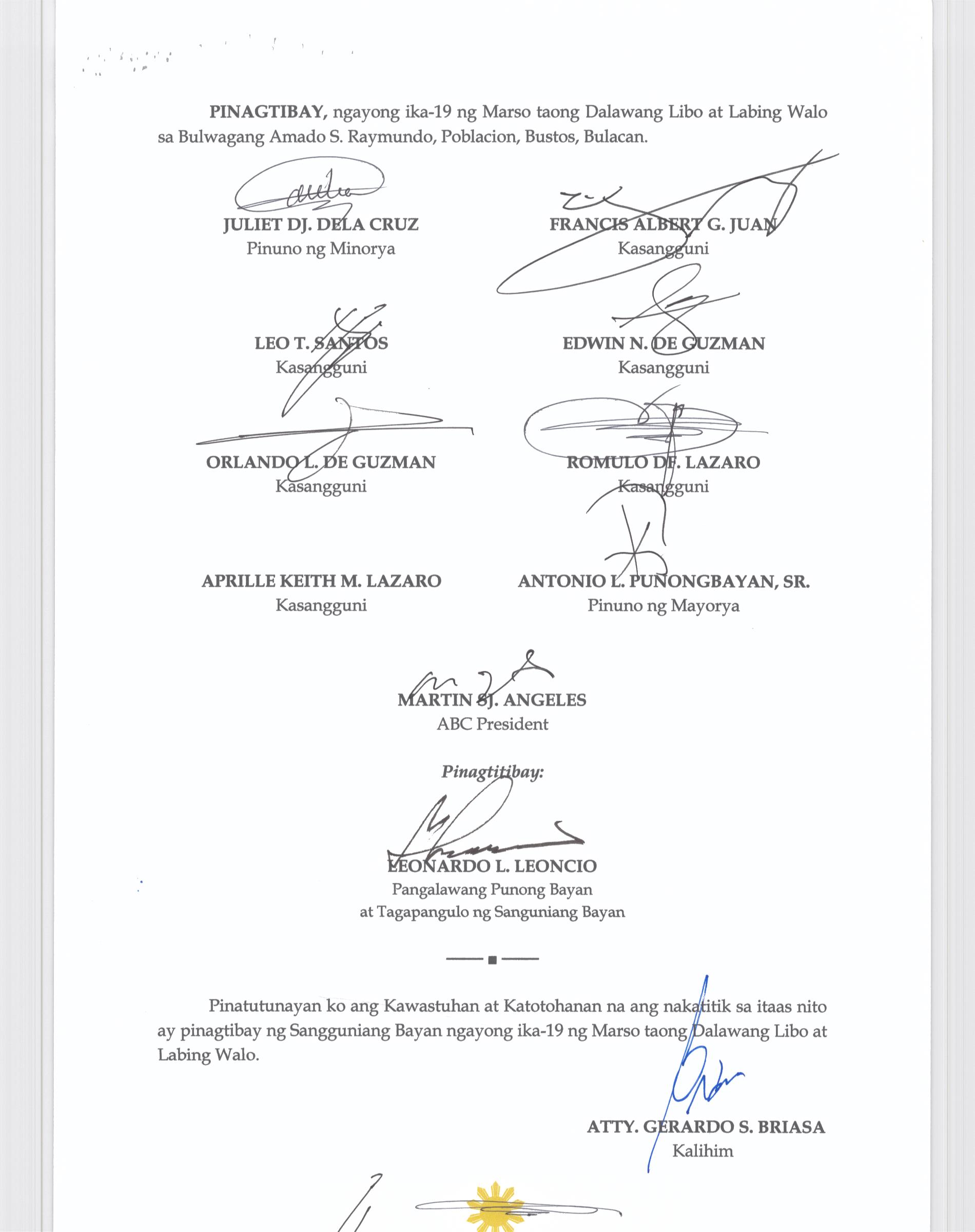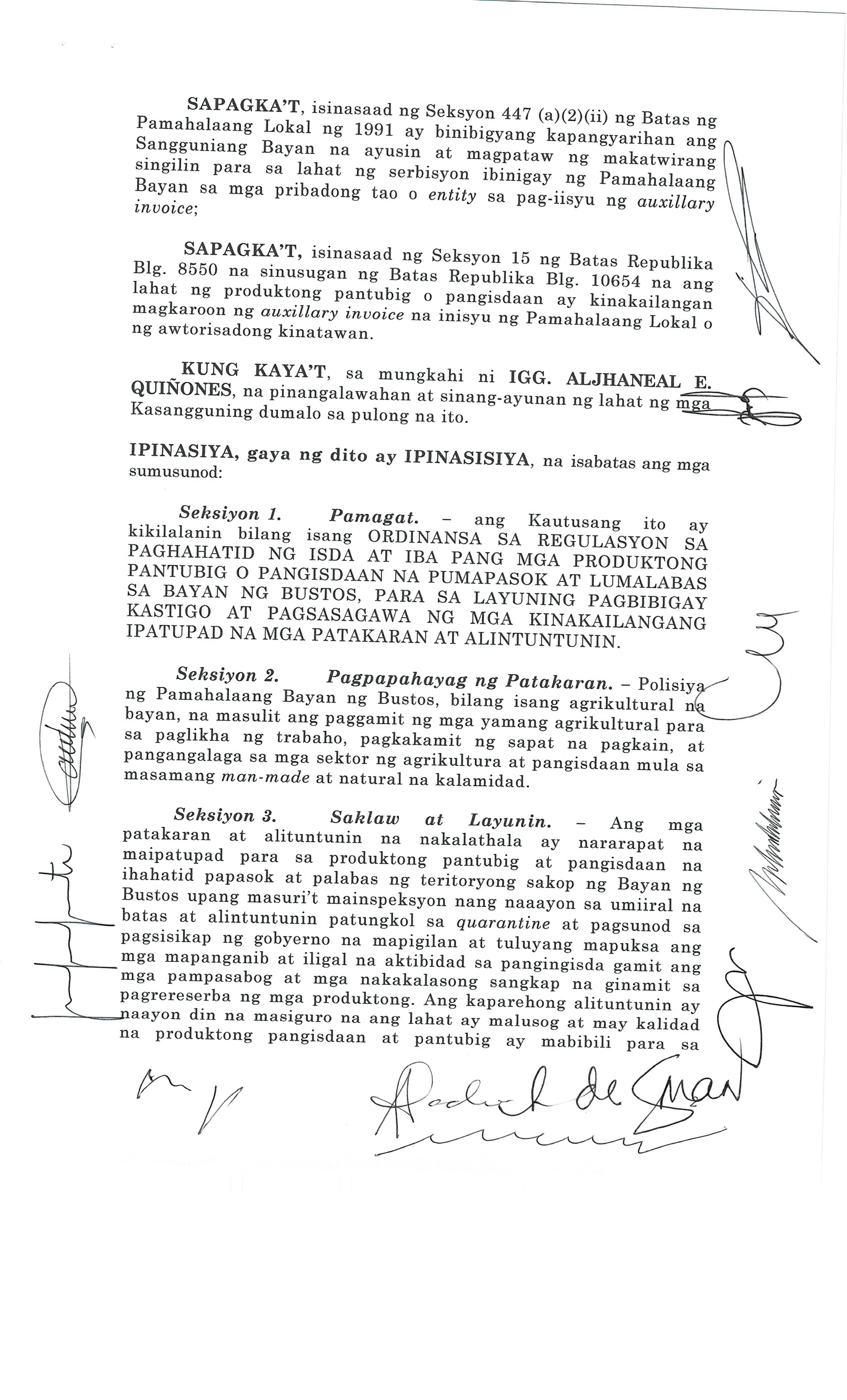 Browse through the official ordinances passed by the Sangguniang Bayan of Bustos, Bulacan