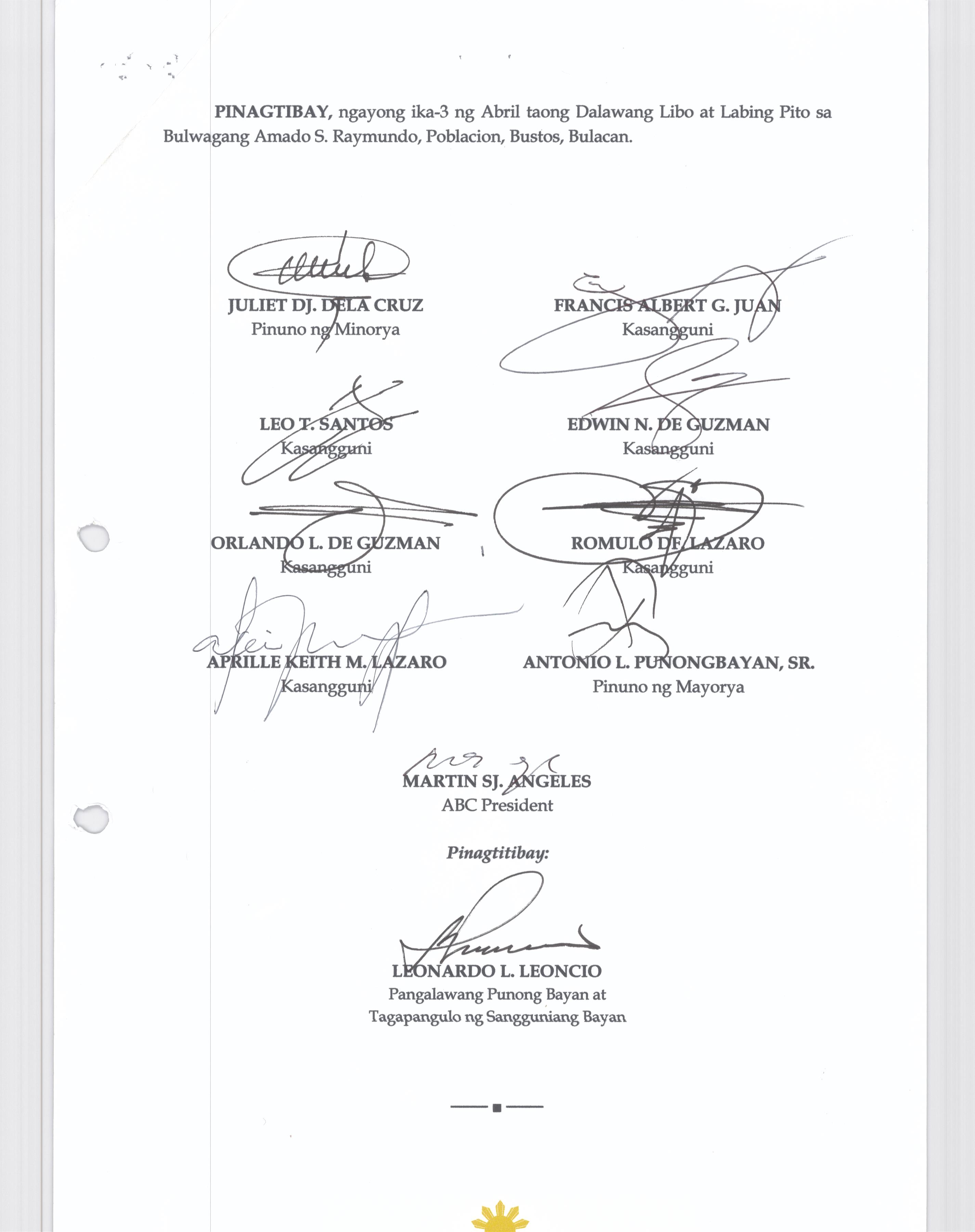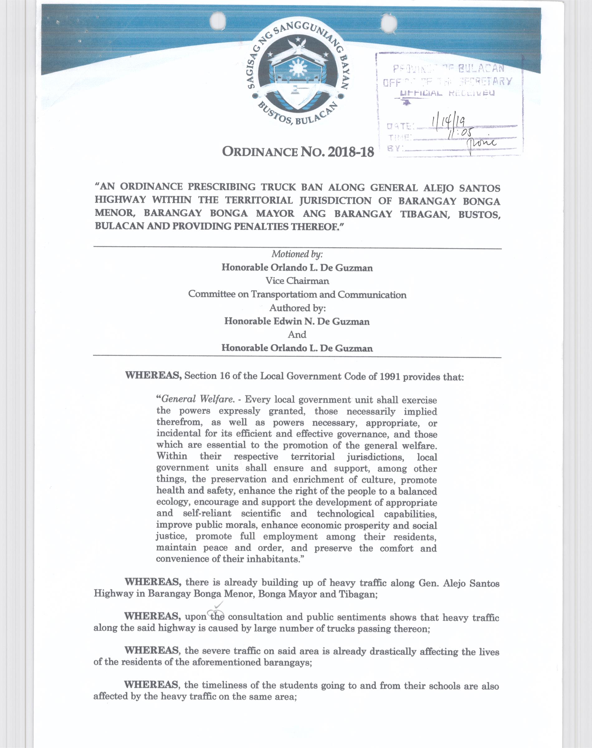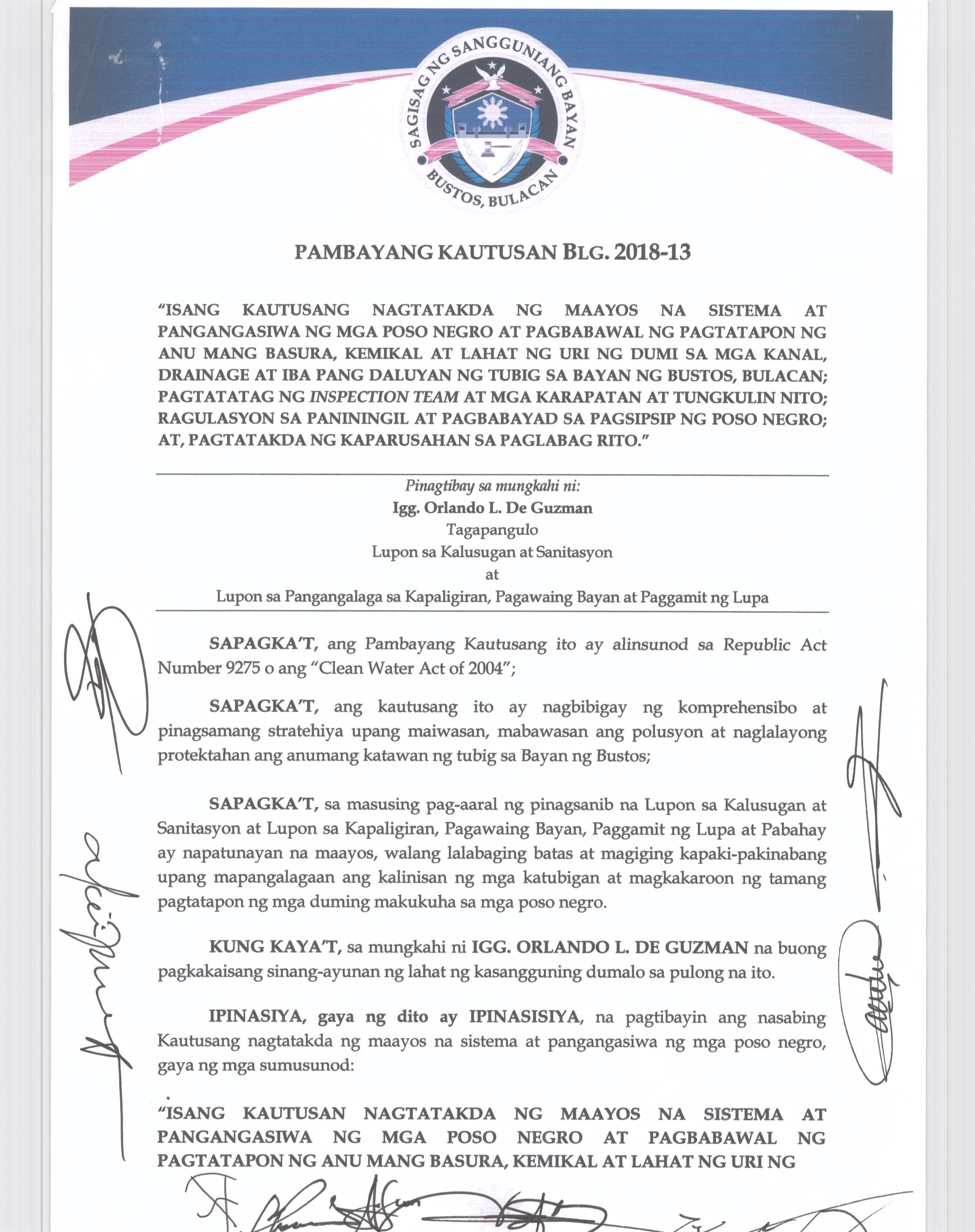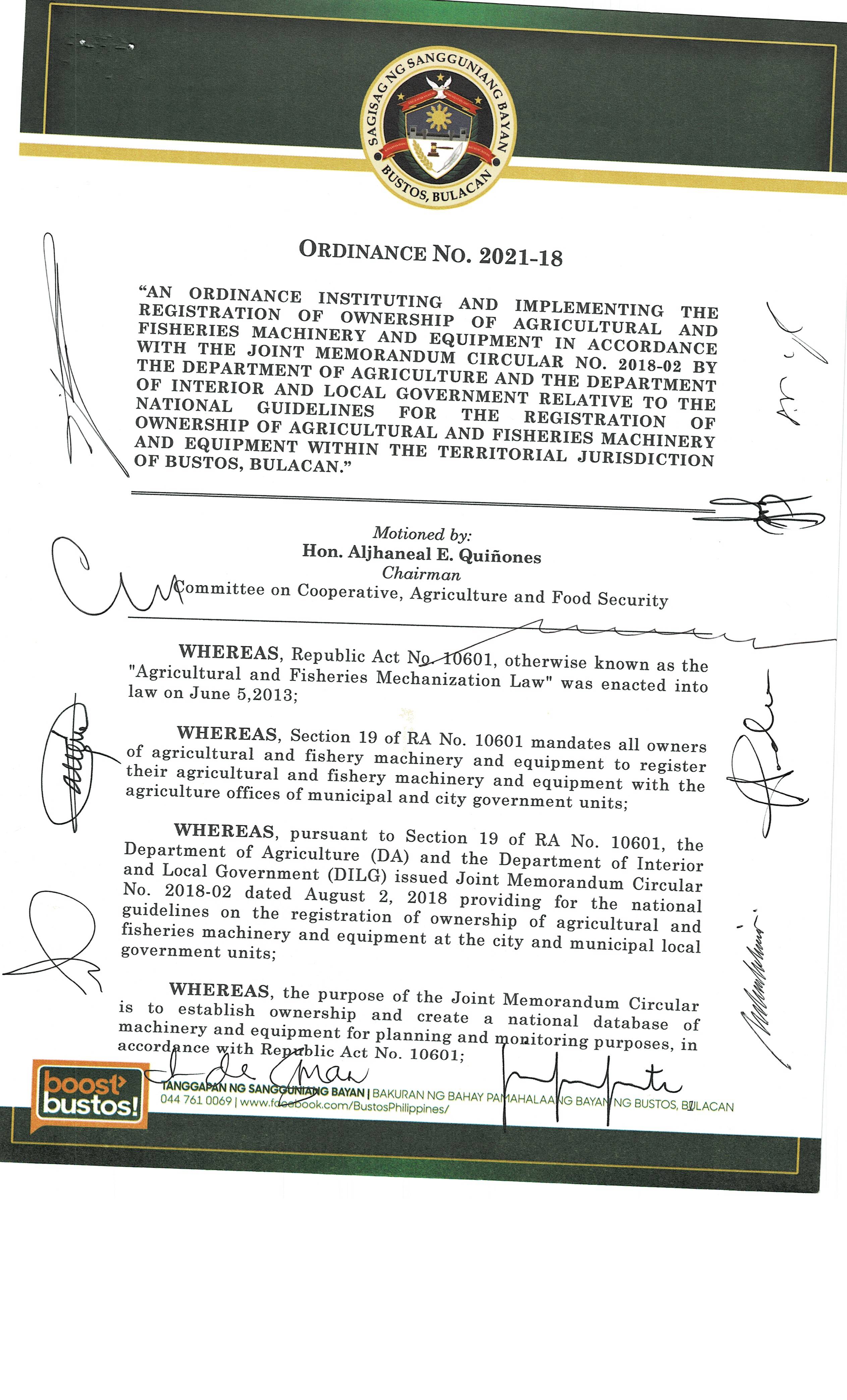 Browse through the official ordinances passed by the Sangguniang Bayan of Bustos, Bulacan