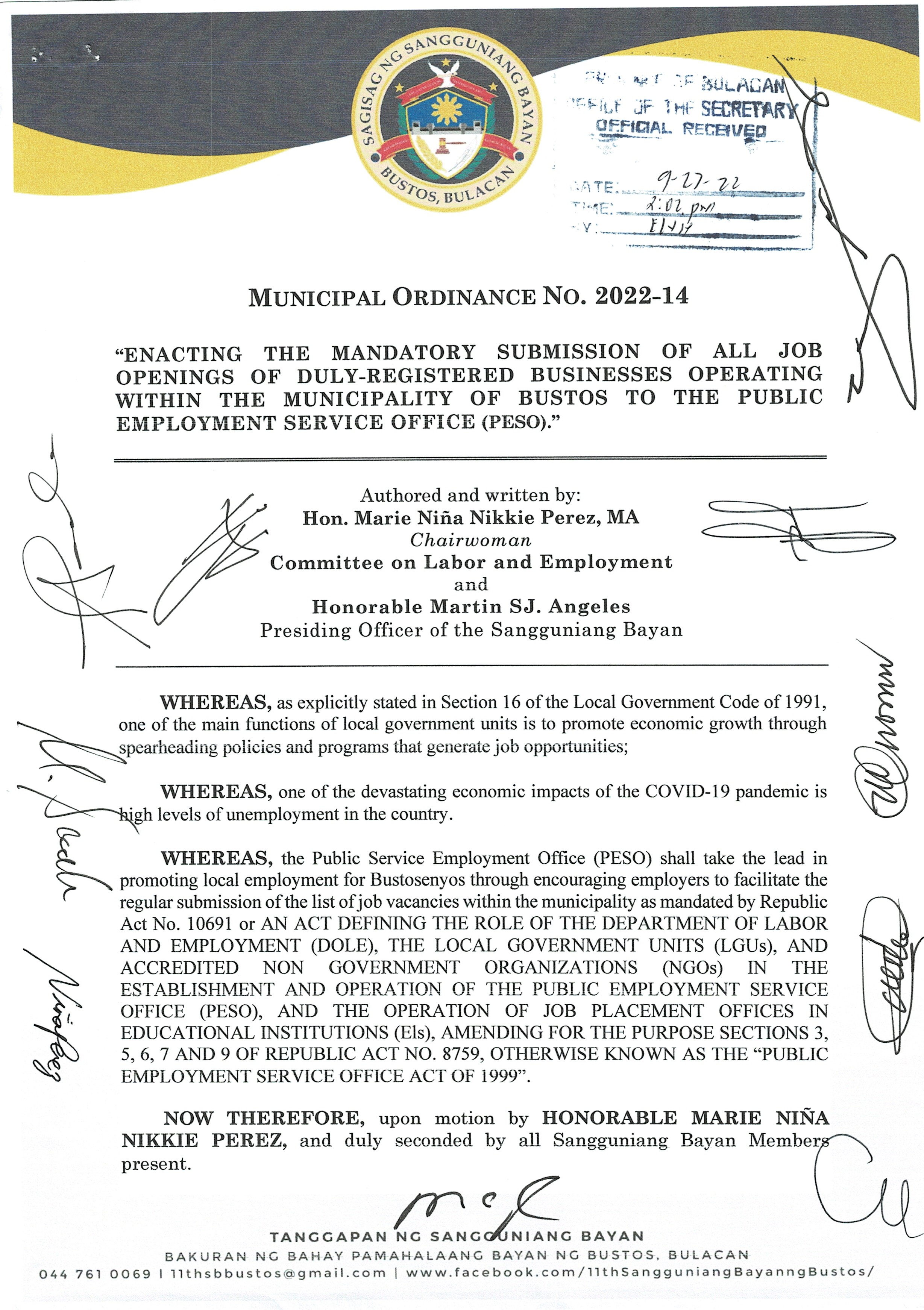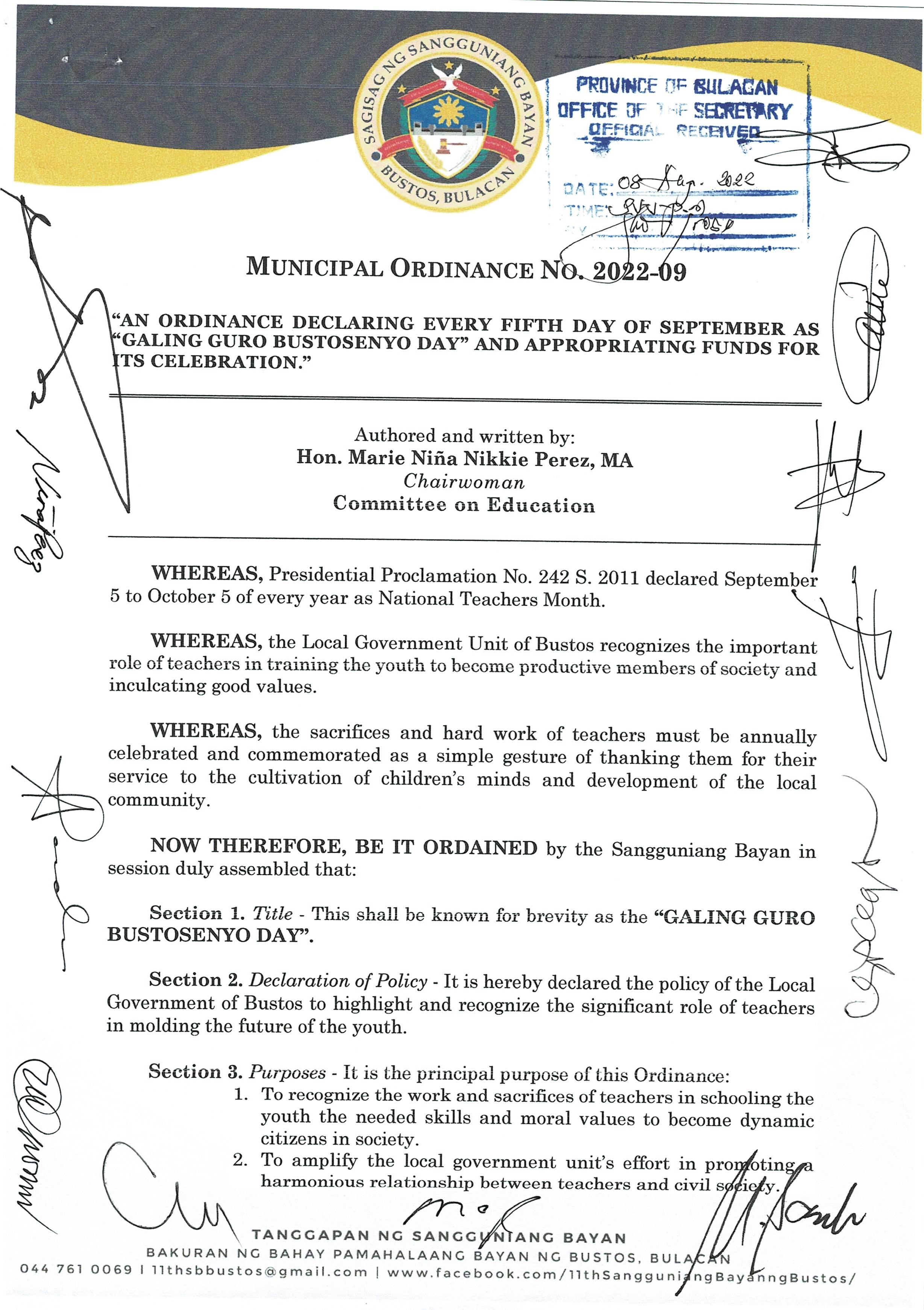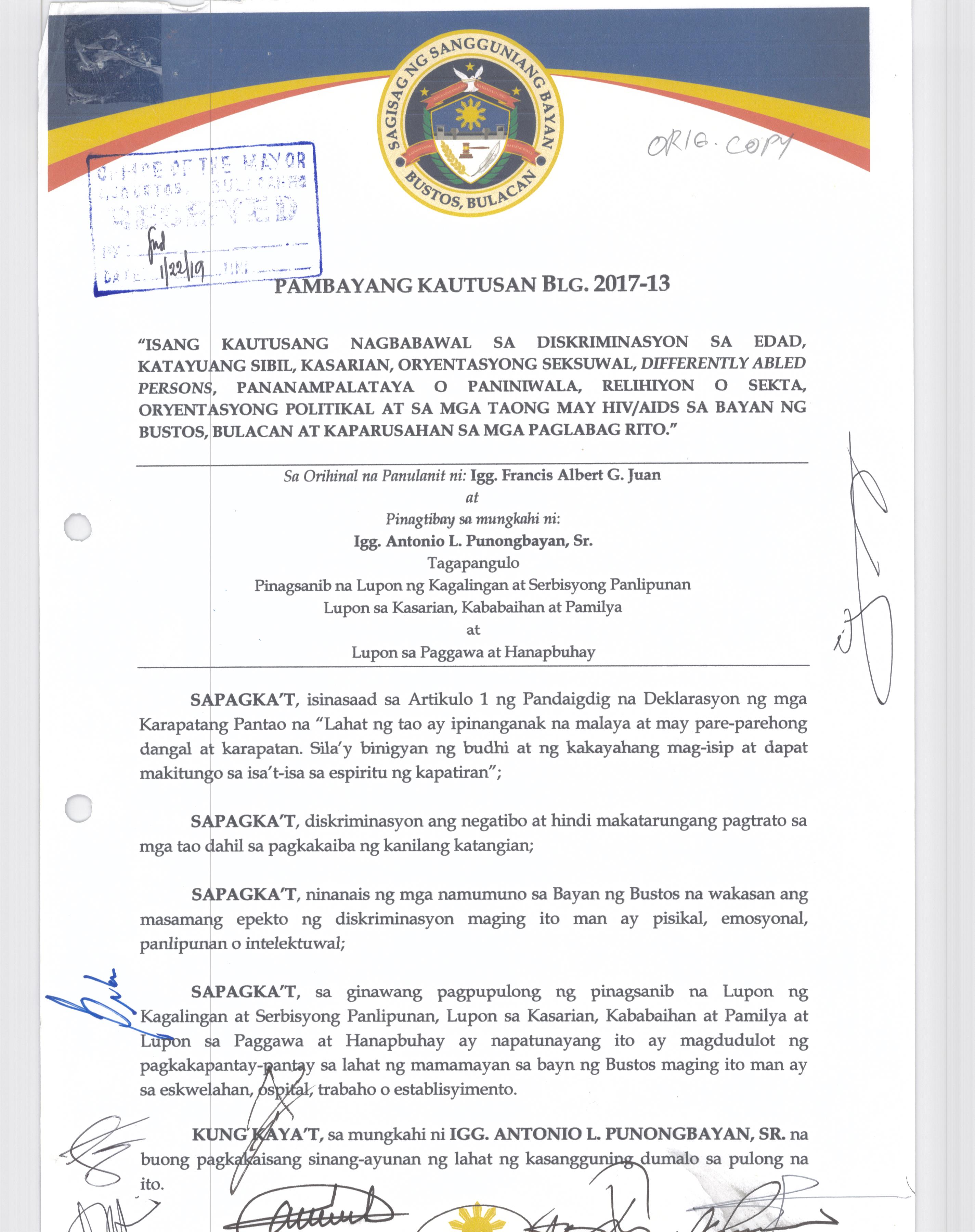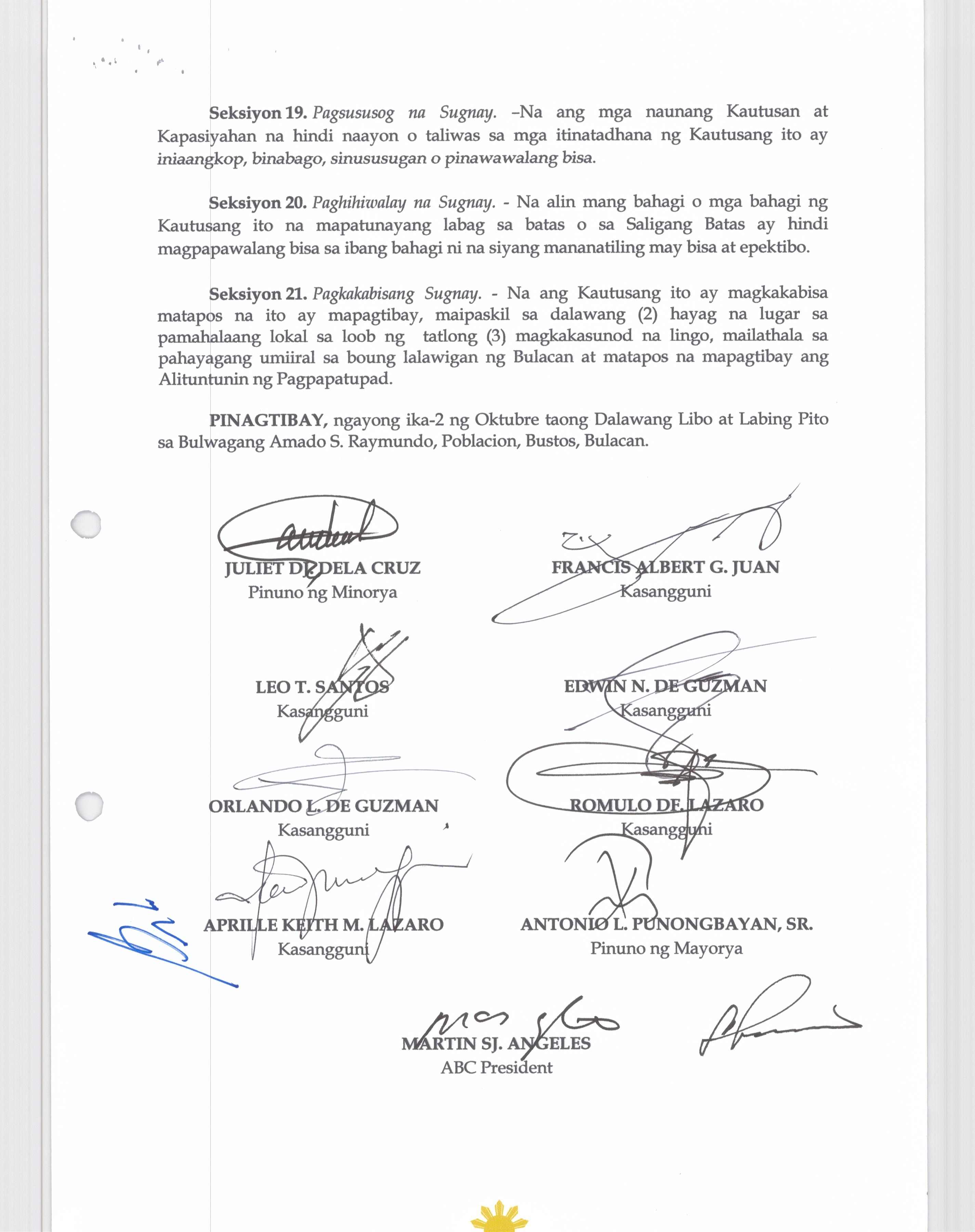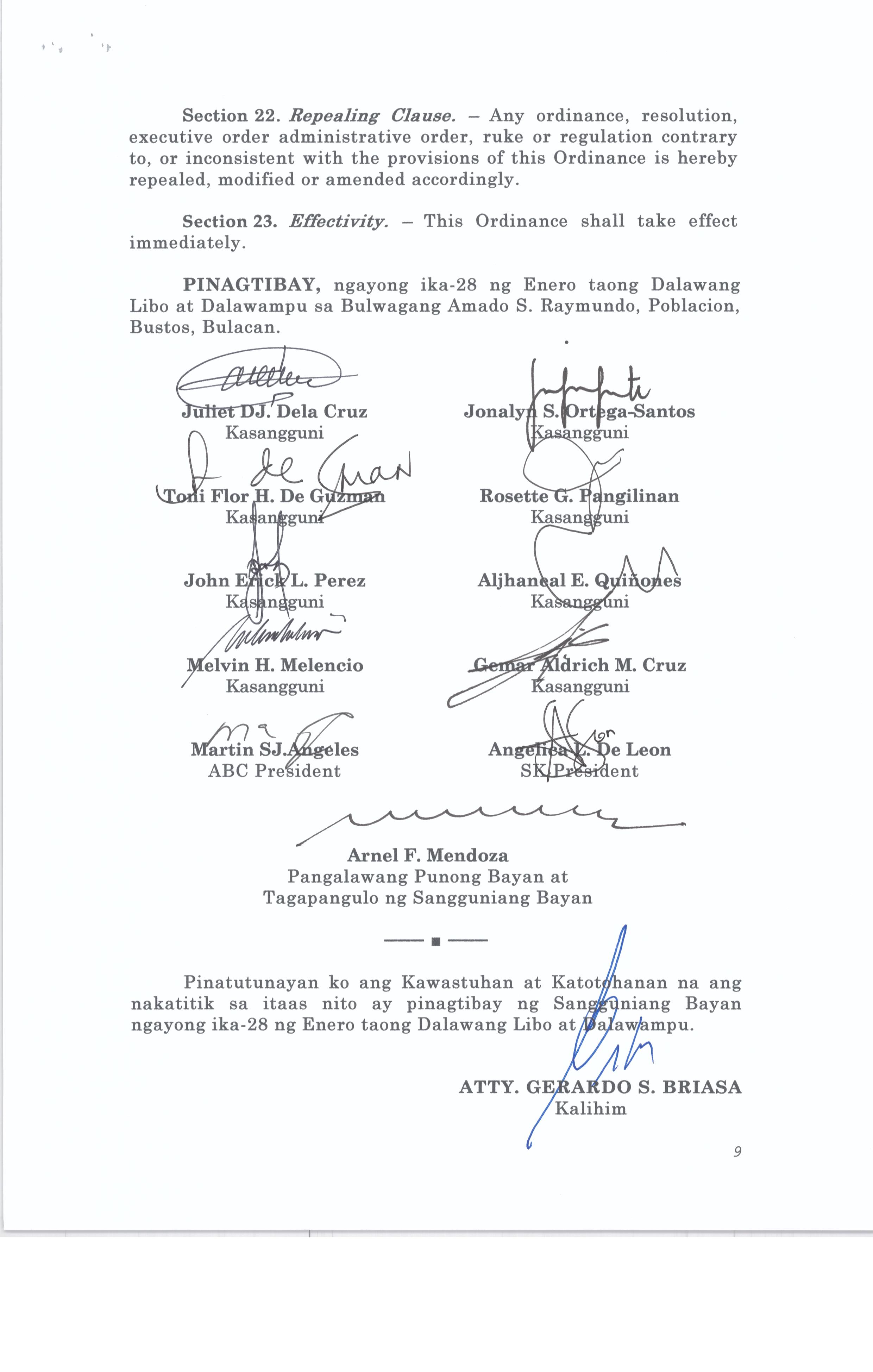 Browse through the official ordinances passed by the Sangguniang Bayan of Bustos, Bulacan
