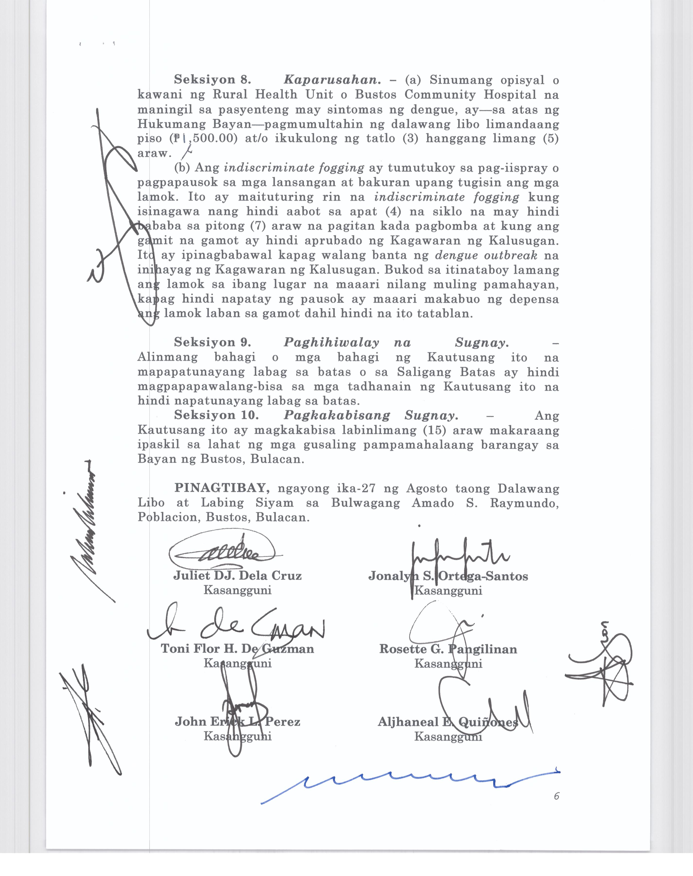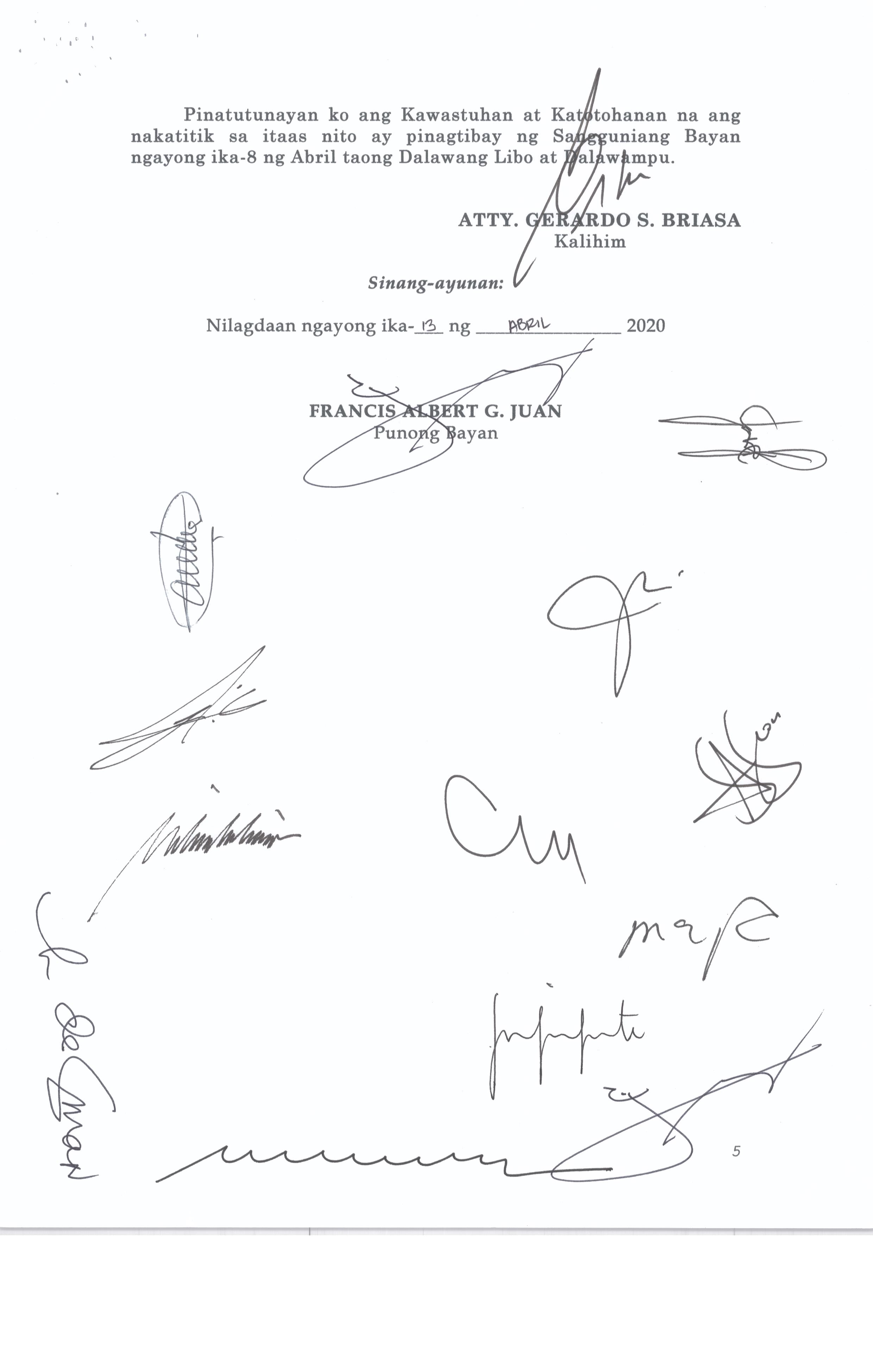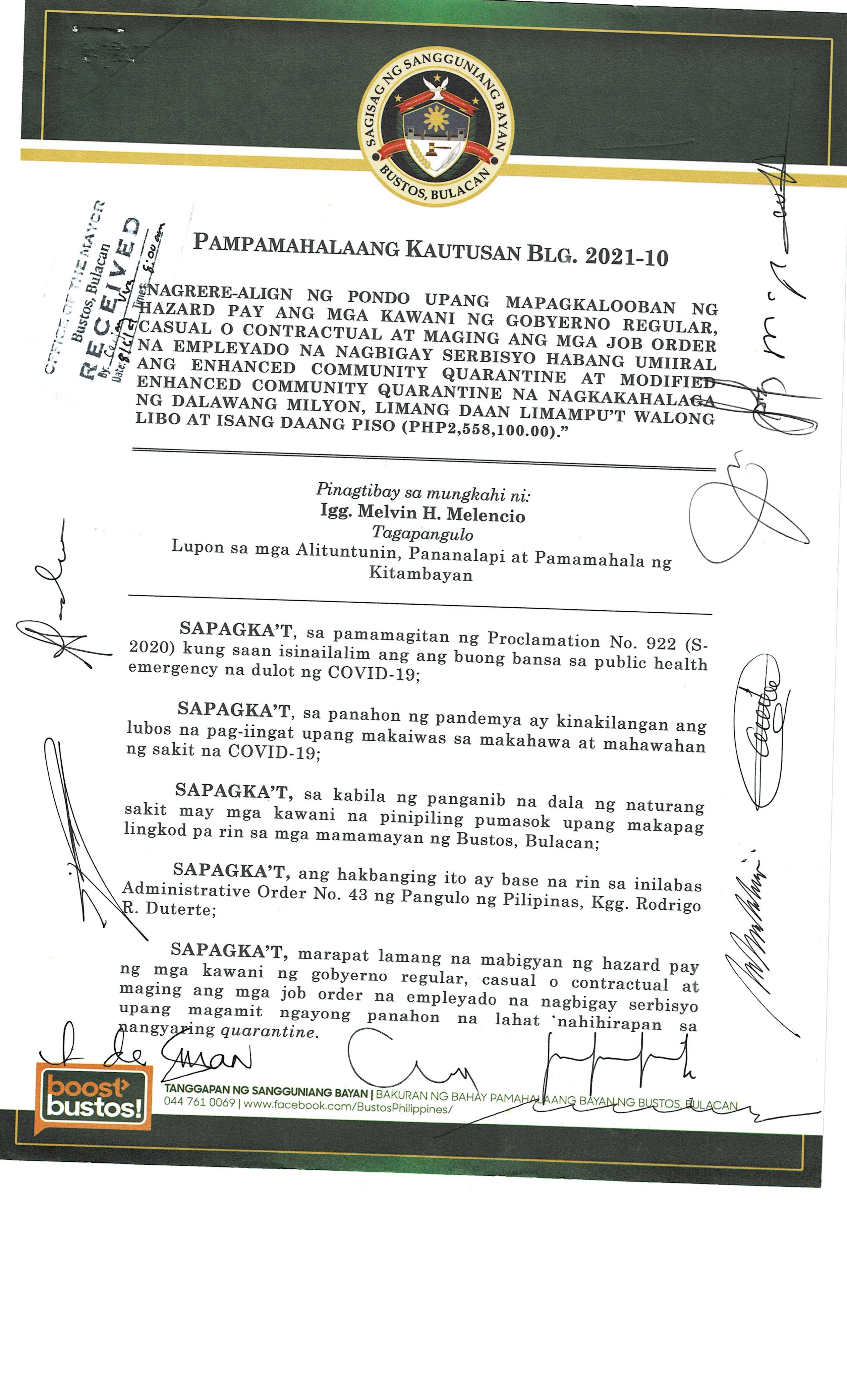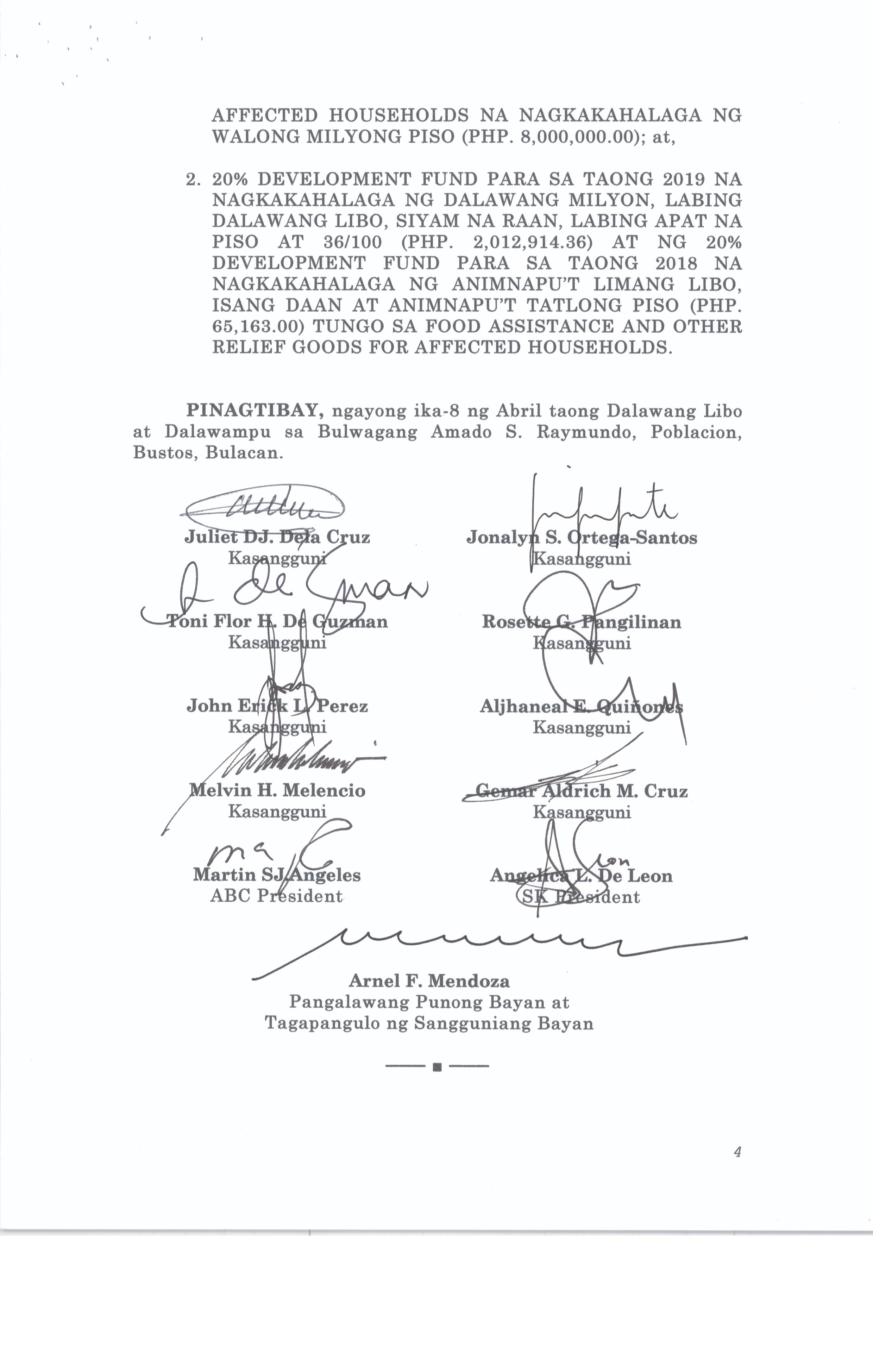 Isang Kautusang Nagpapatibay sa 5% Calamity Fund ng Pamahalaang Bayan ng Bustos Bulacan na nagkakahalaga ng Php.6,341,469.20
