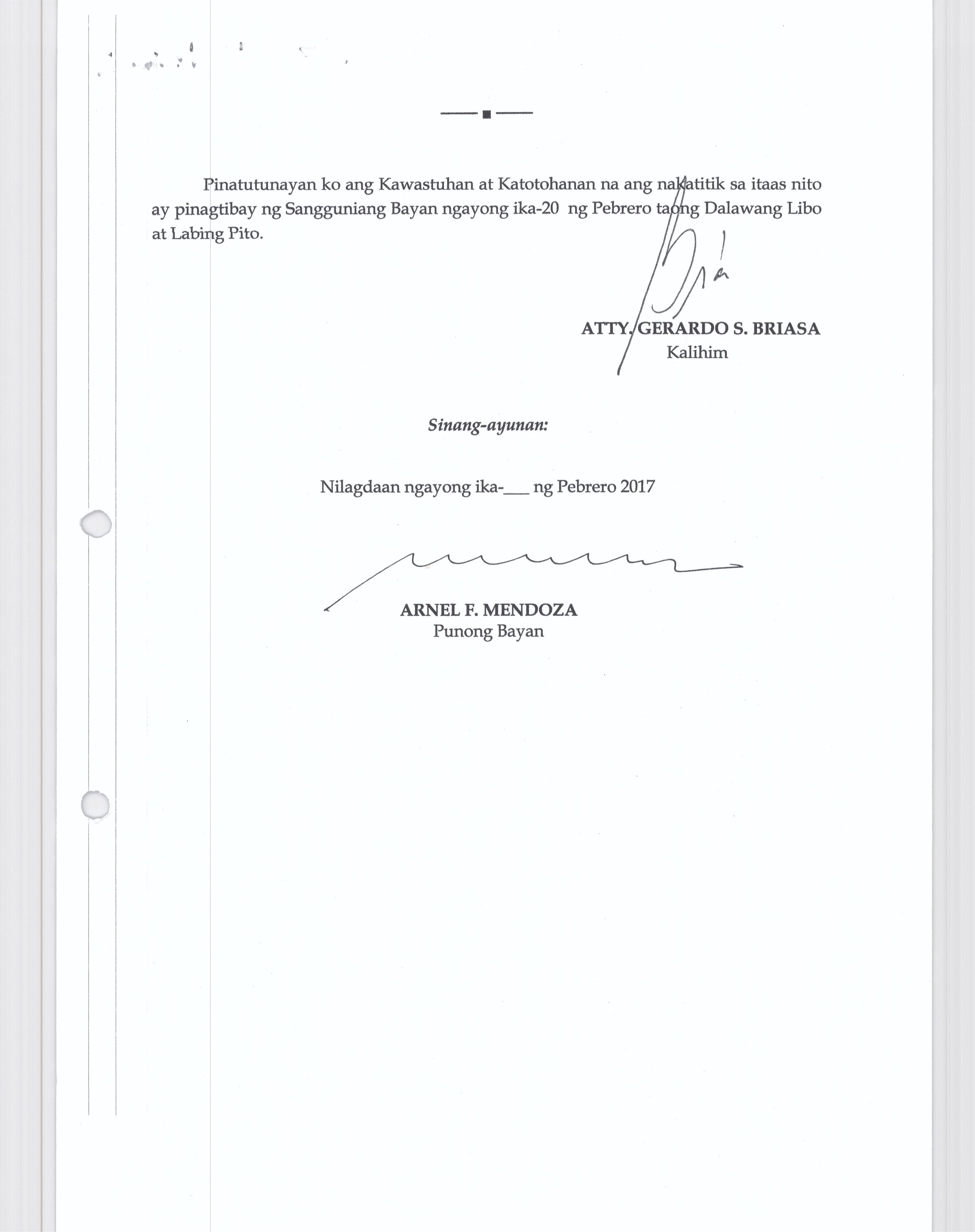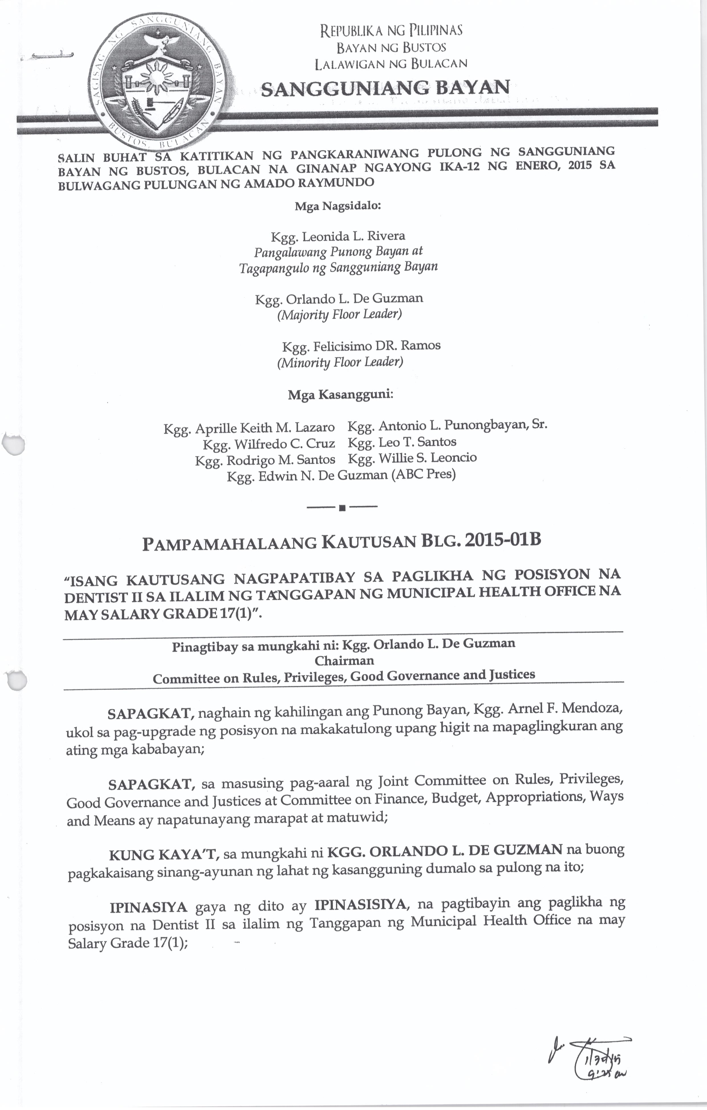 Isang Kautusang Nagpapatibay sa Paglikha ng mga Posisyon na Dentist ll sa Ilalimng Tanggapan ng Municipal Health Office na may Salary Grade 17 (1)