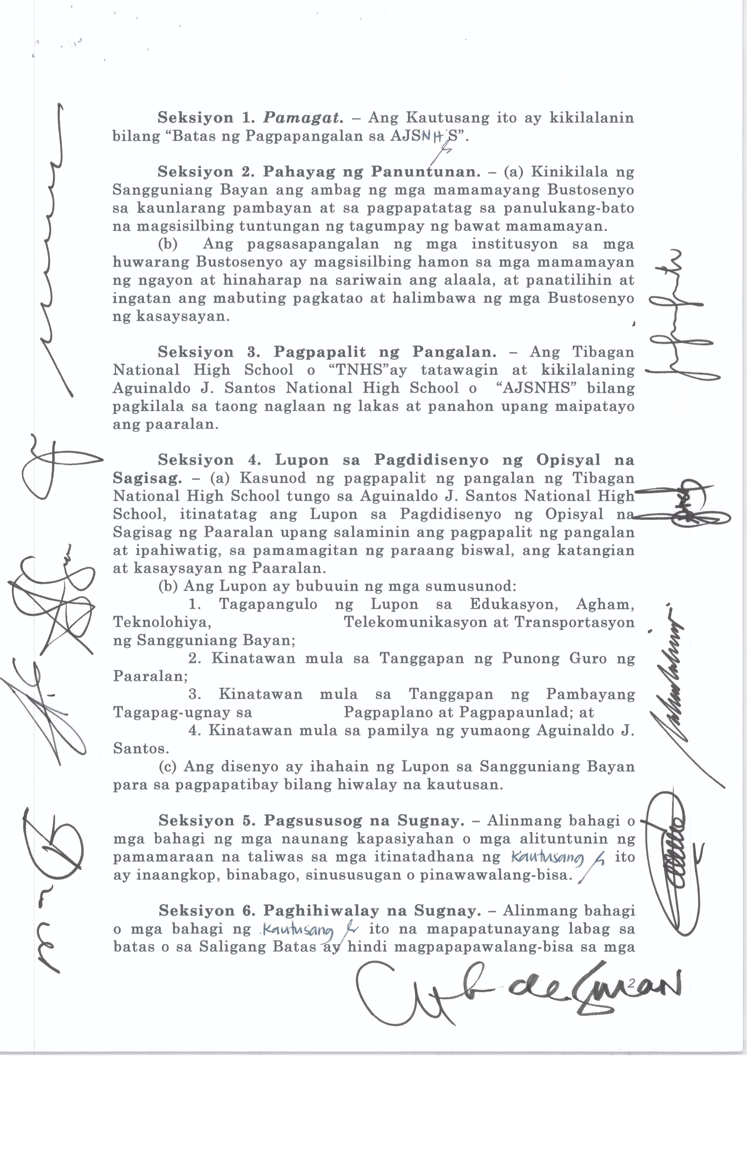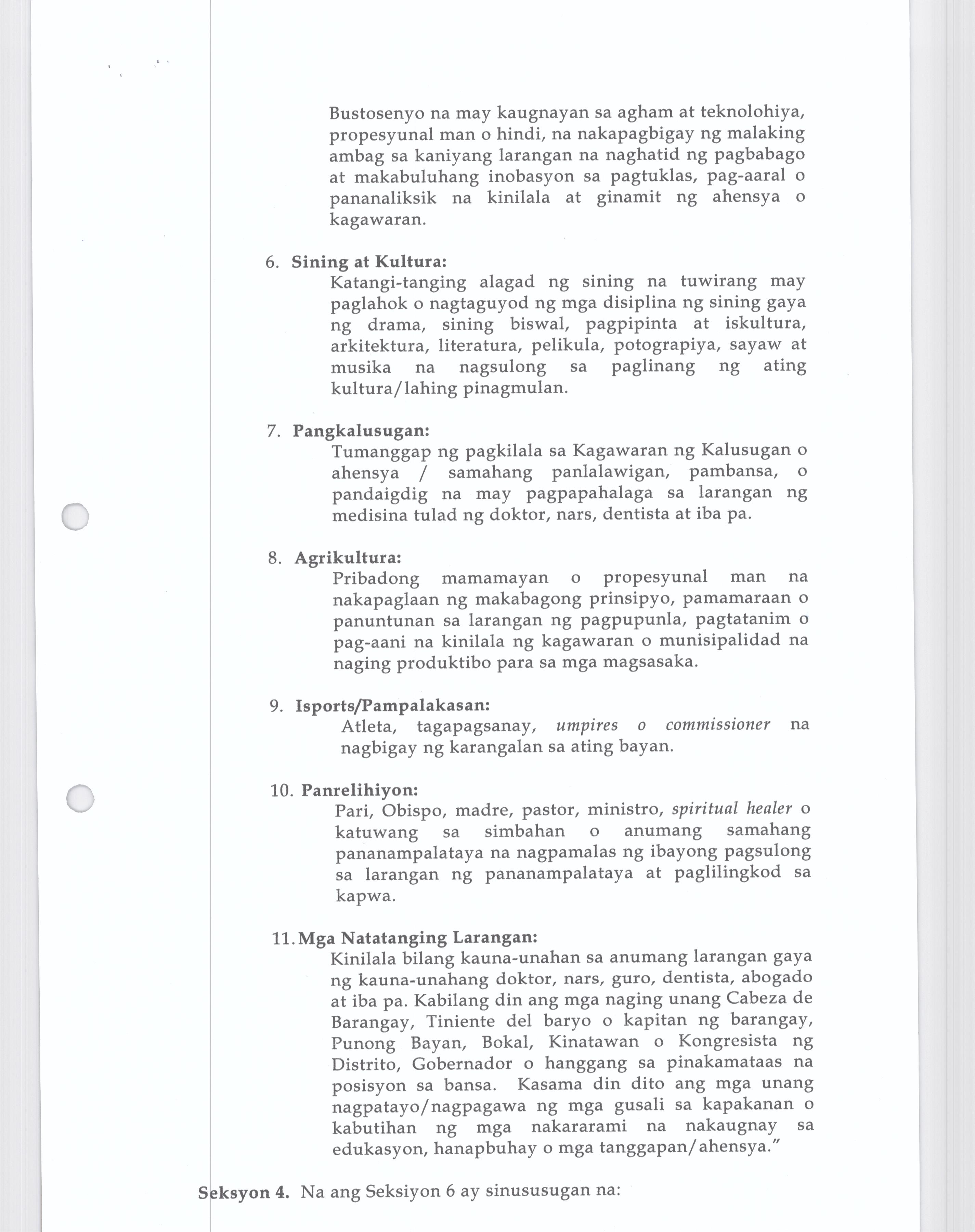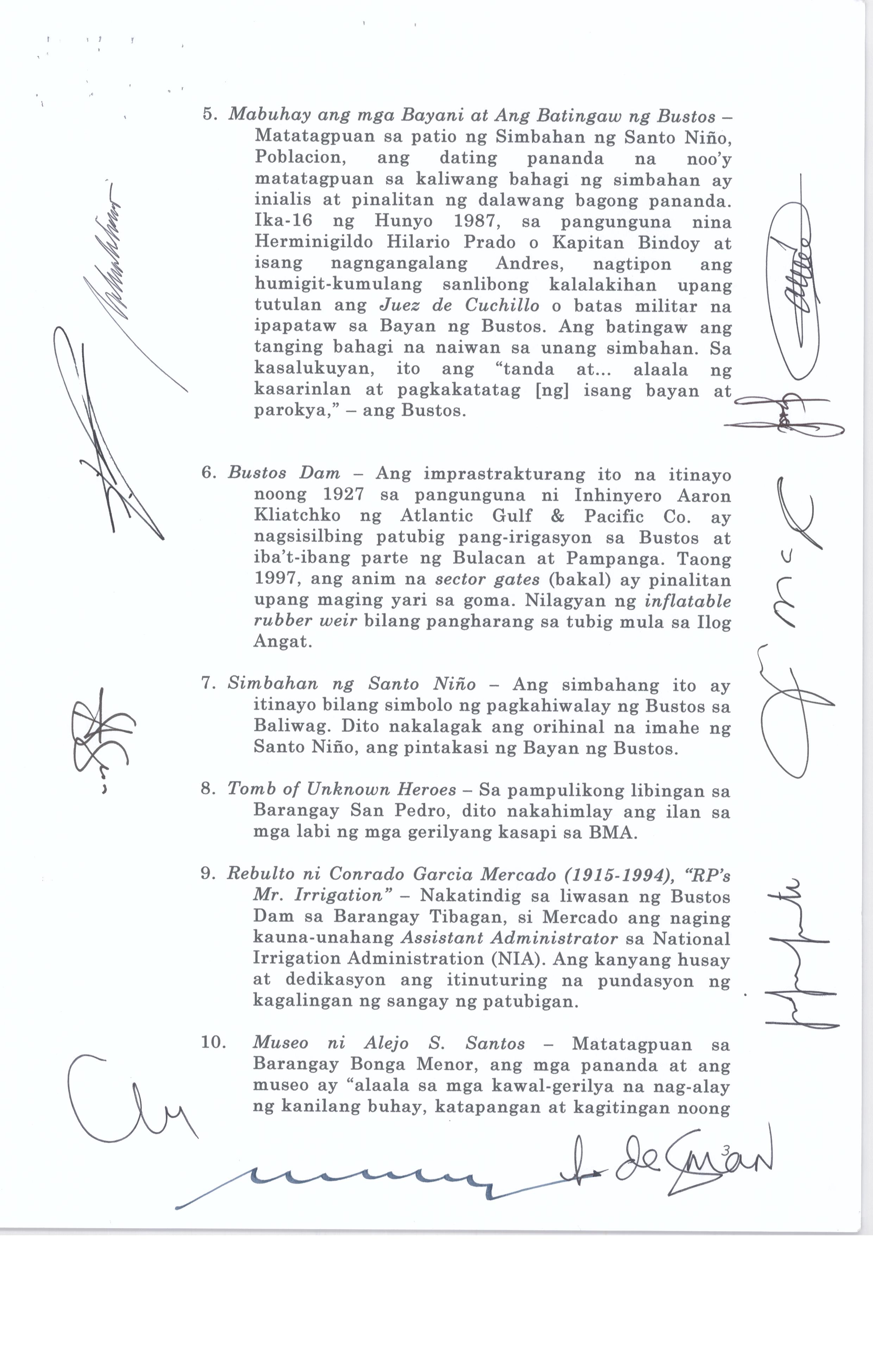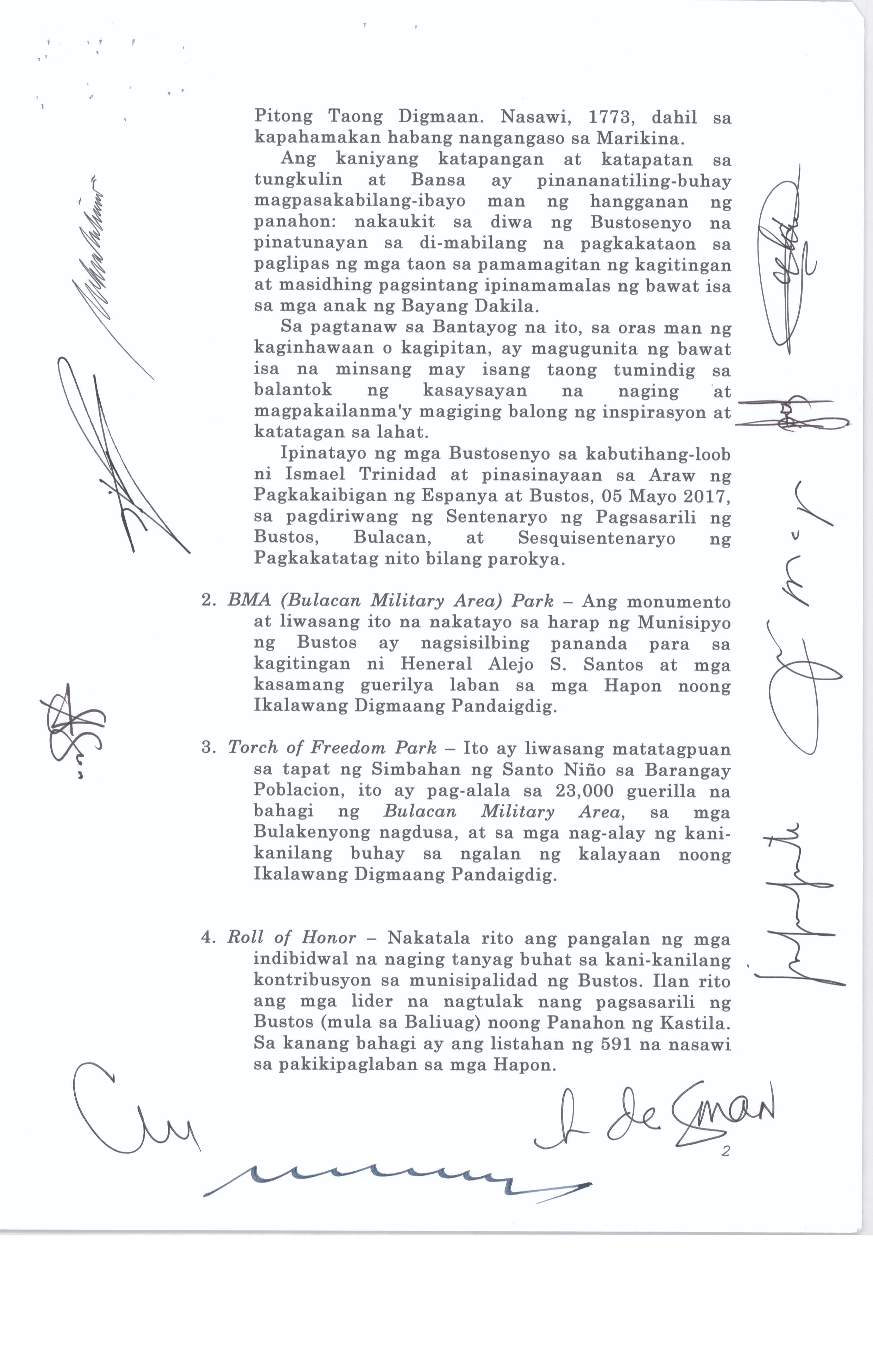 Isang kautusang nagpapatibay sa pagpaparangal sa mga Natatanging Bustosenyo para sa nalalapit na pagdiriwang ng Iika Isang Daan Taon ng Bayan ng Busto...