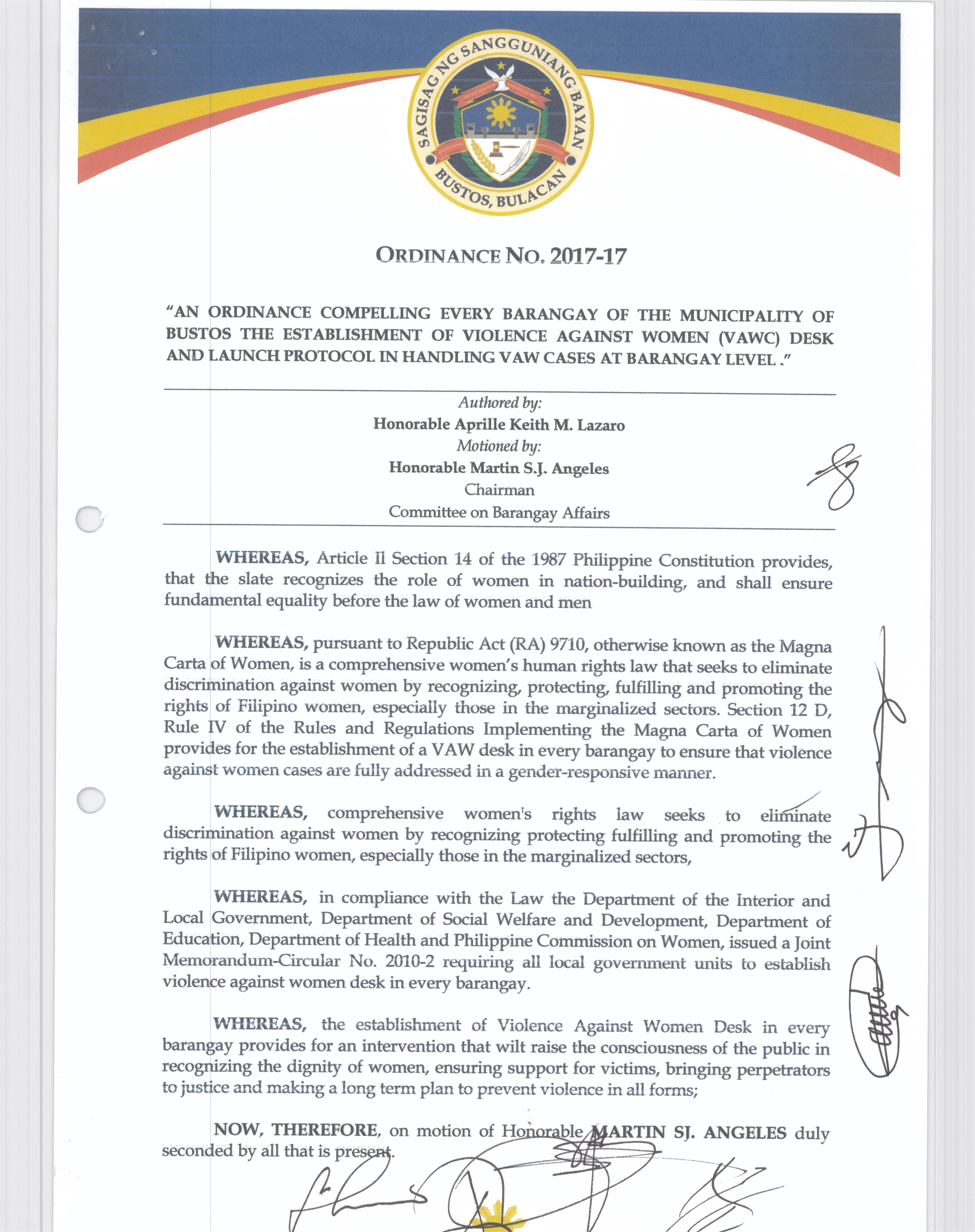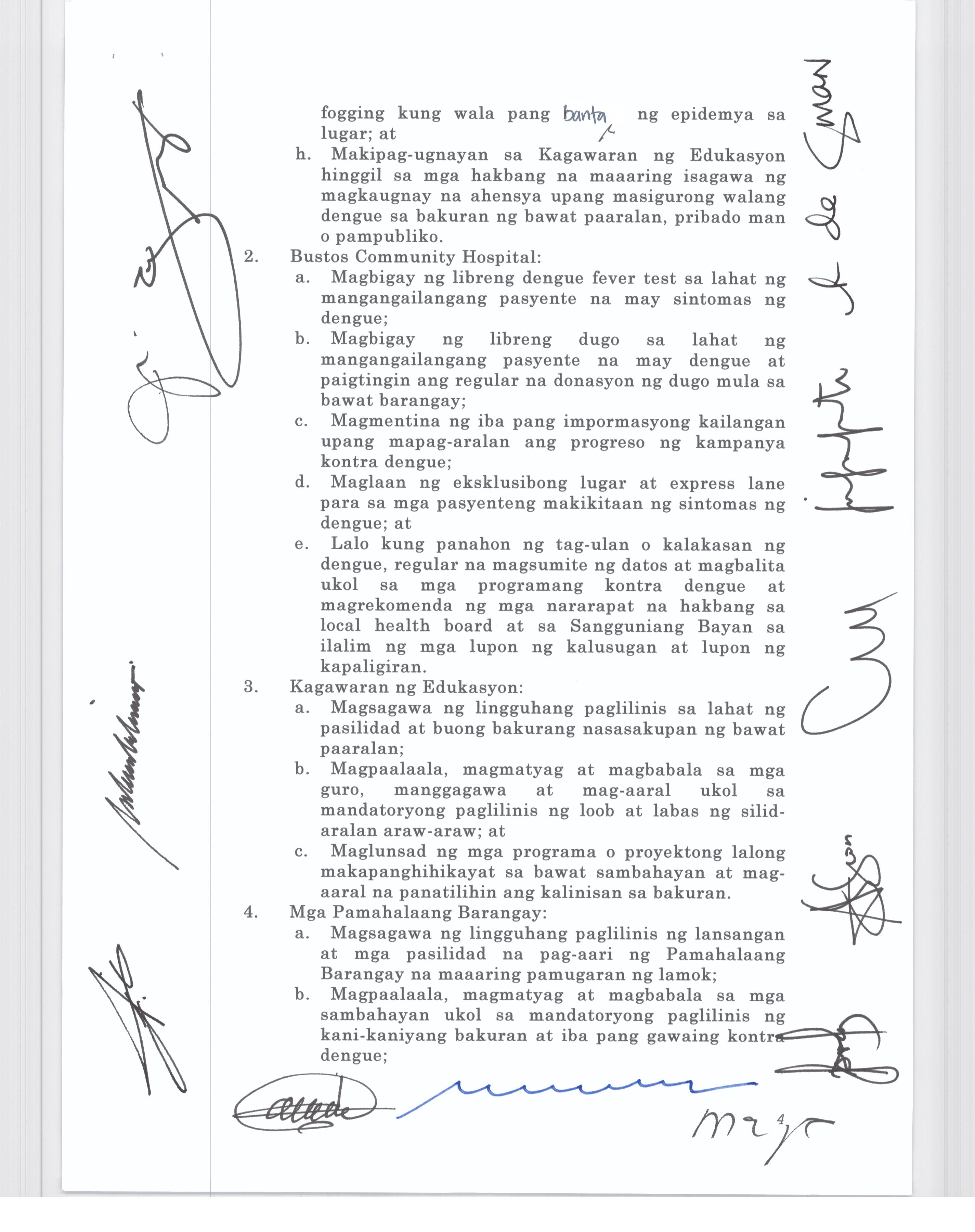 Isang Kautusang Nagtatakda ng Libreng Pap Smear sa lahat ng mga Kababaihan sa Bayan ng Bustos Tuwing sasapit ang Buwan ng Kababaihan.