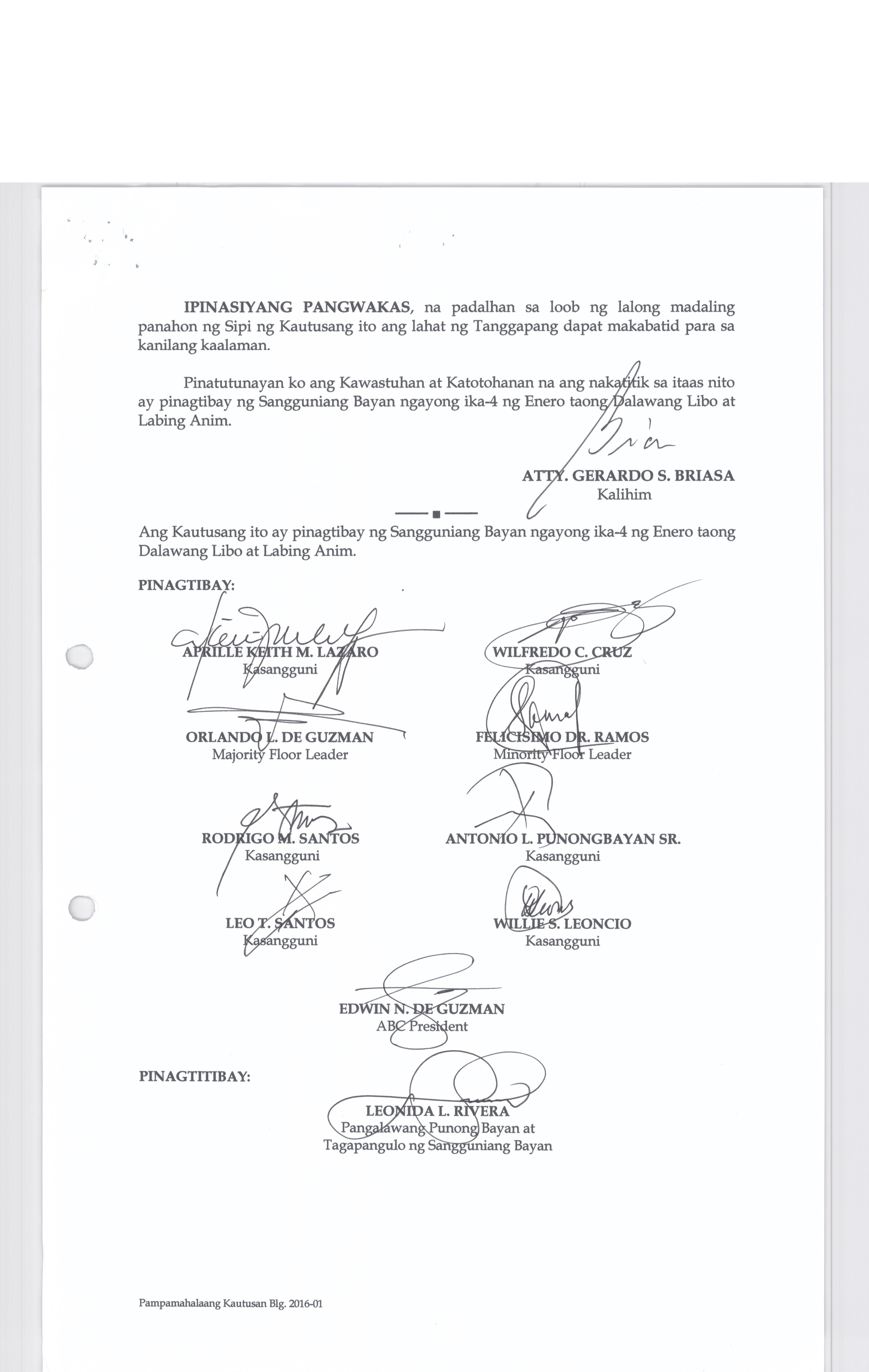 PAMBAYANG KAUTUSAN BLG. 2016-01