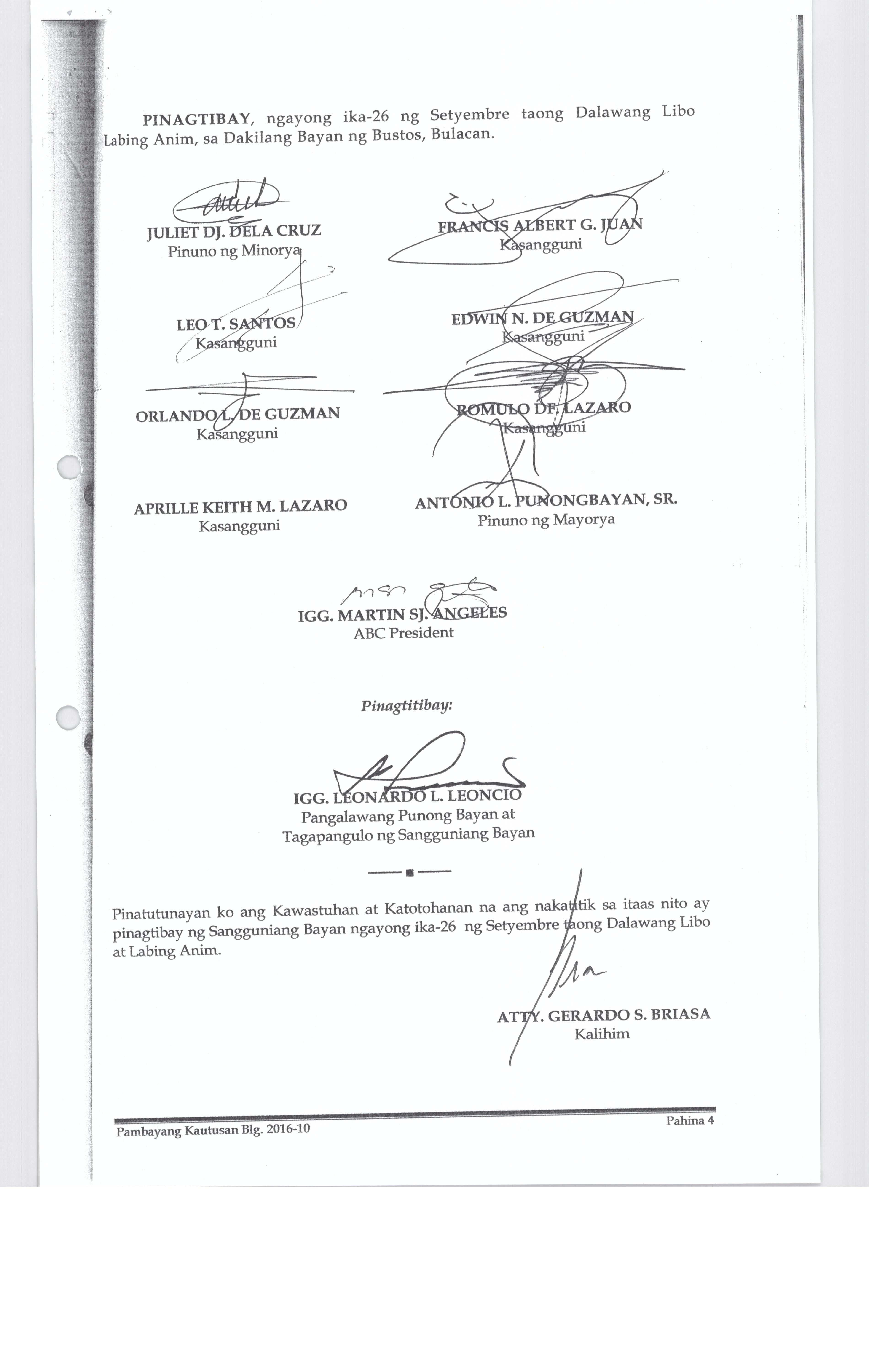 PAMBAYANG KAUTUSAN BLG. 2016-10