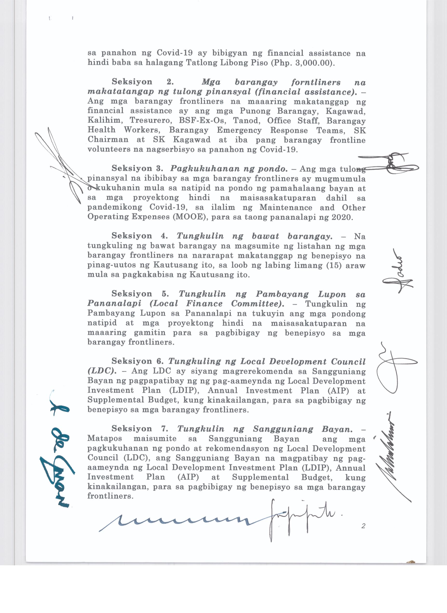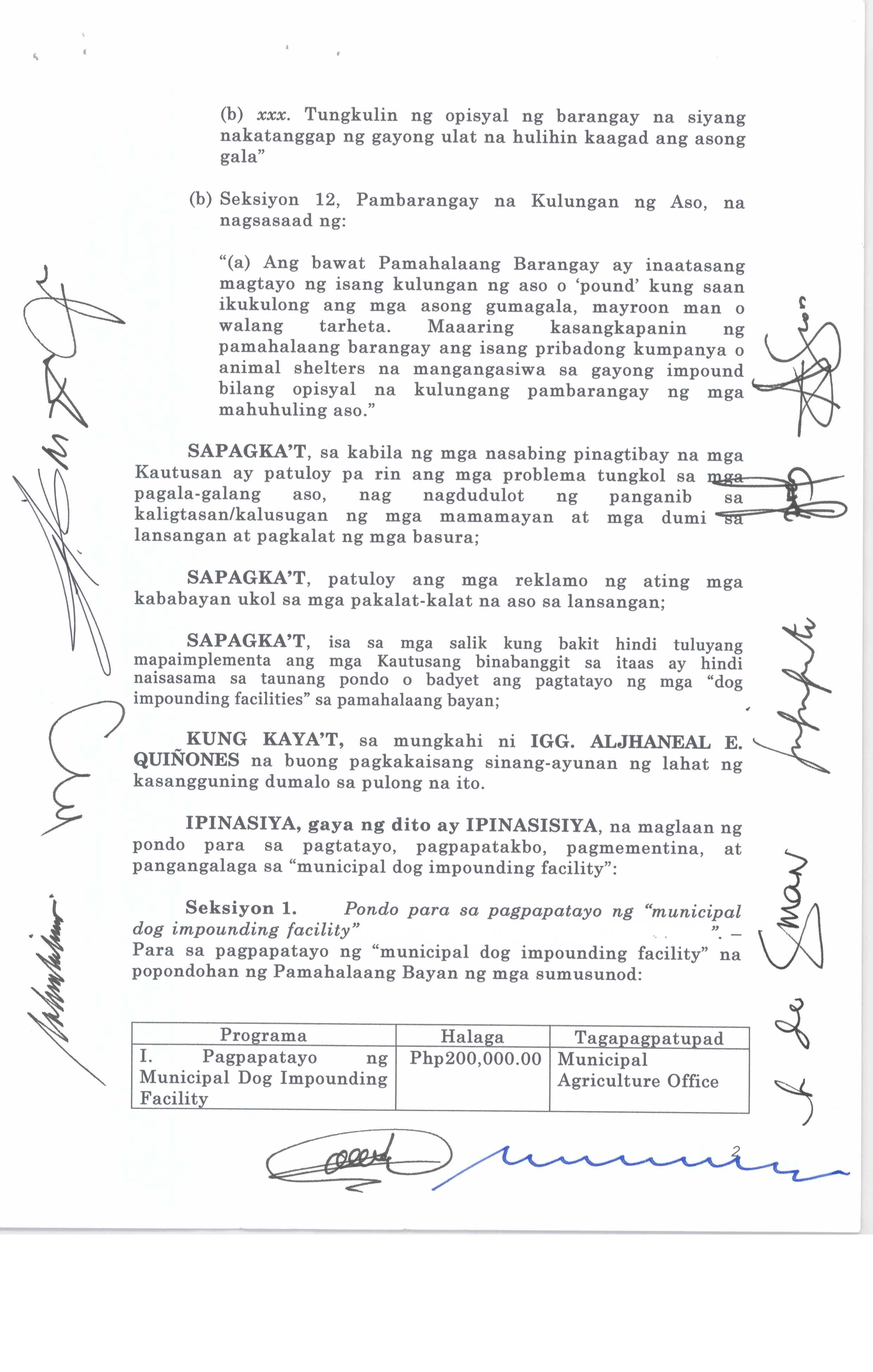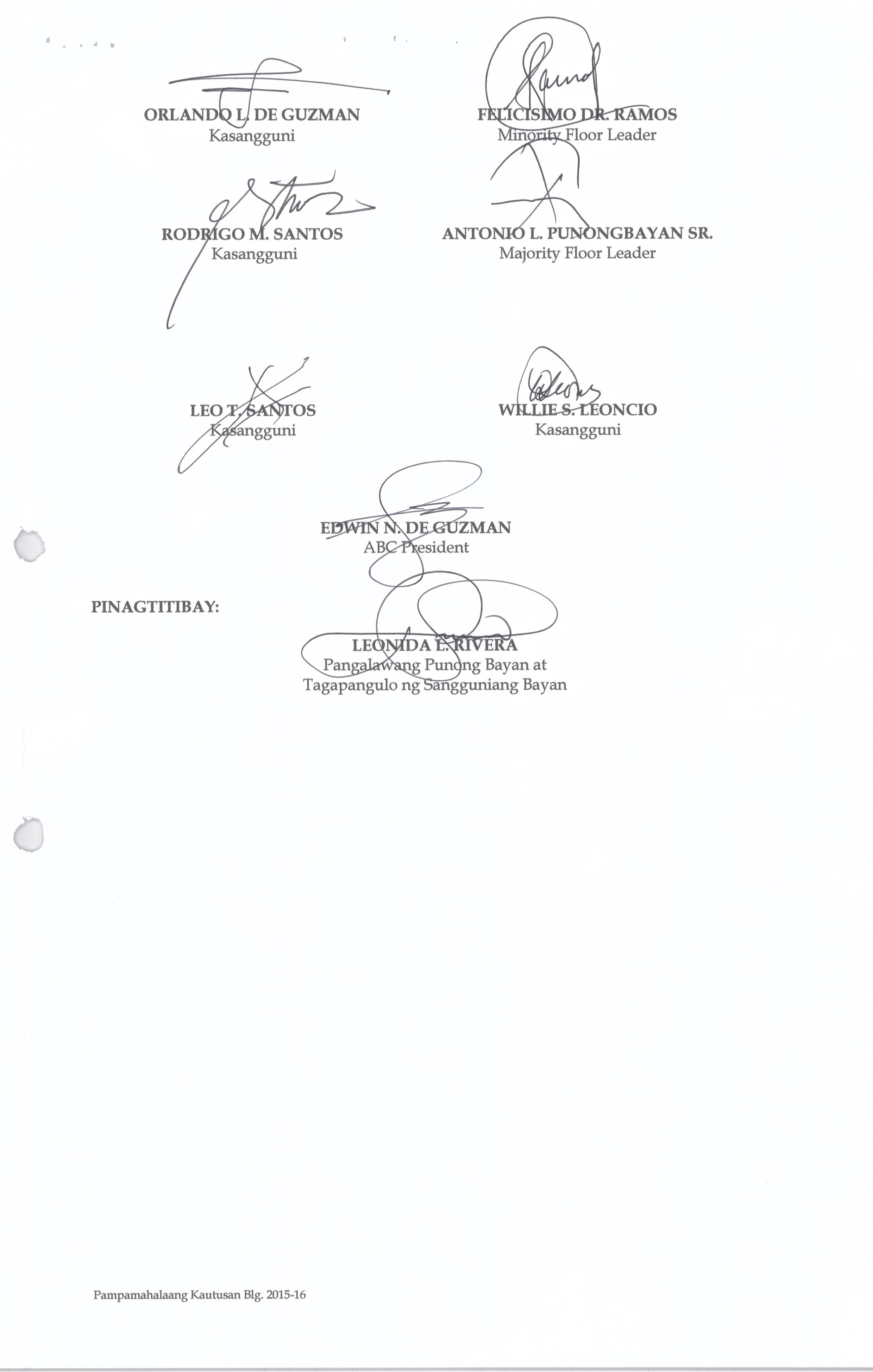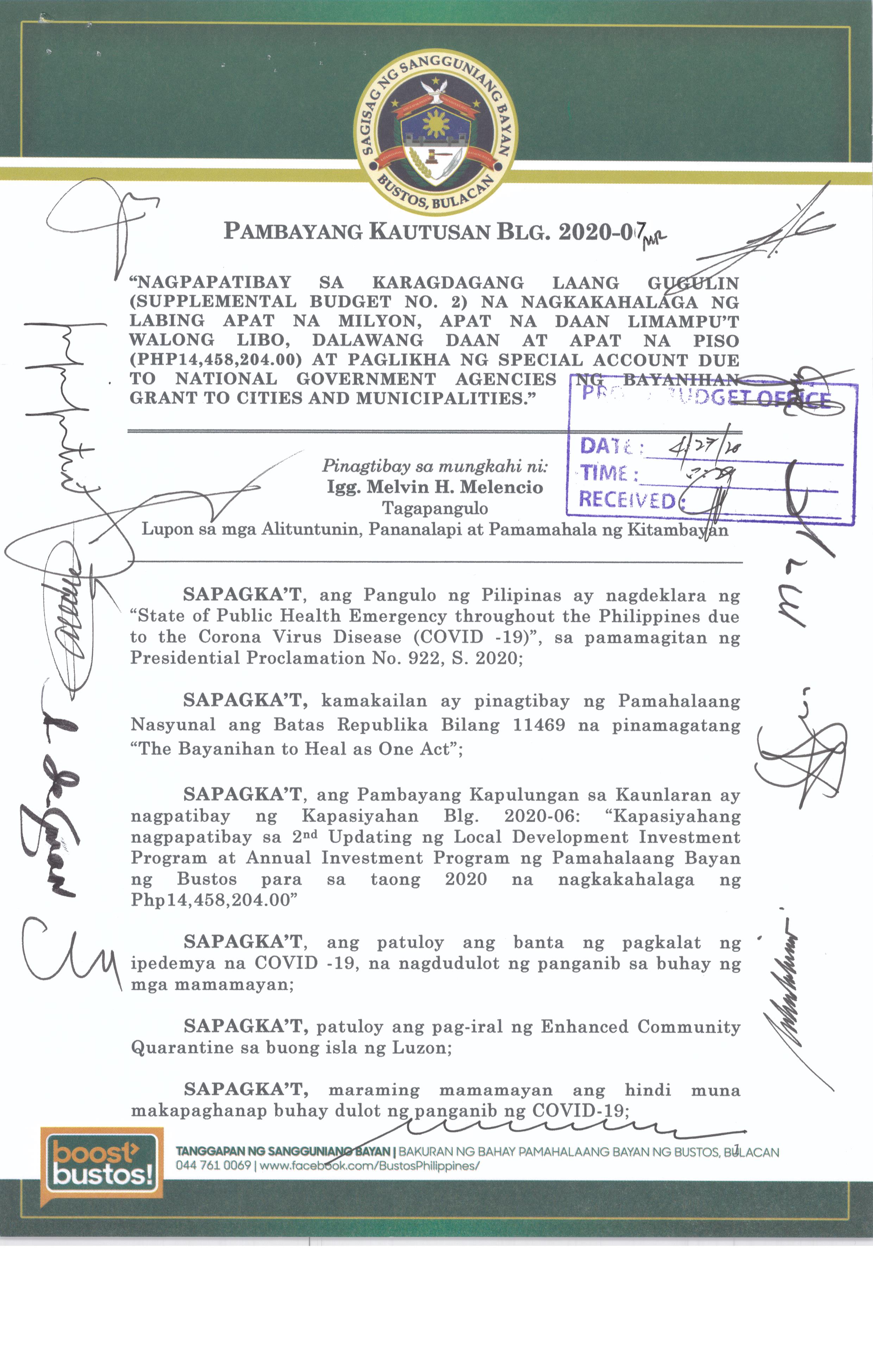 Isang Kautusang Nagpapatibay sa Kapasiyahan Blg. 2015-02 ng Pambayang Kapulungan na nauukol sa Supplemental Budget ng 20% Development Program para sa ...