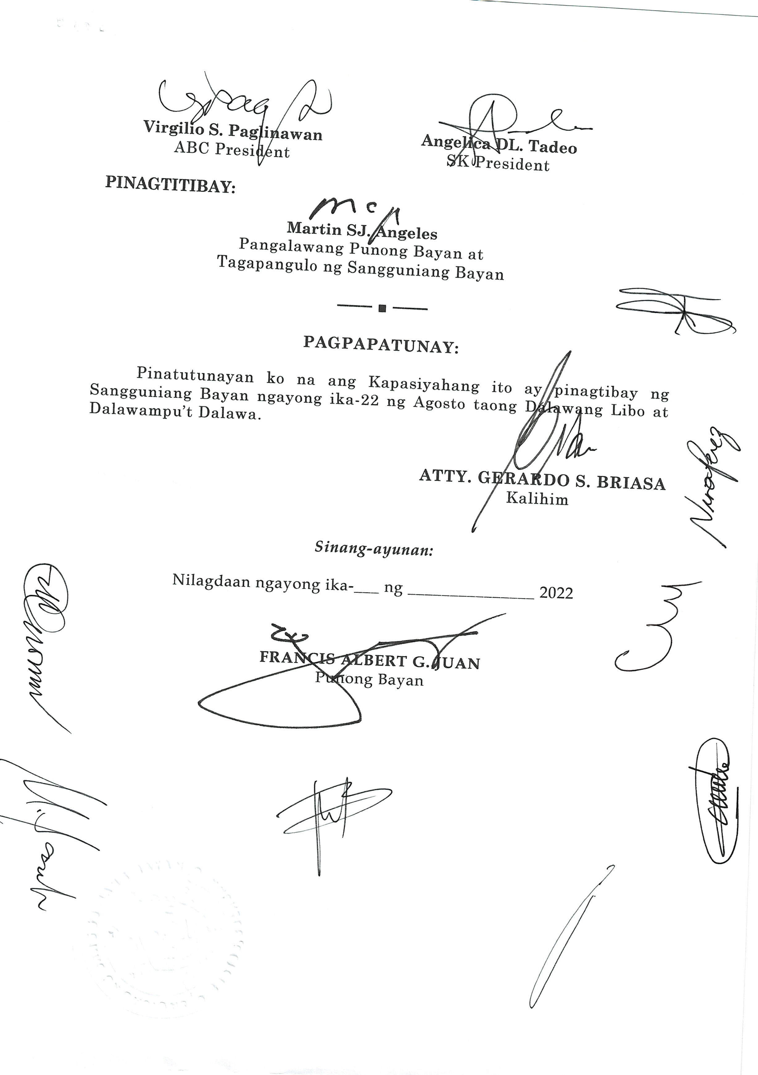 Isang Kautusang Nagpapatibay sa bagong Disenyo ng Sagisag ng Sangguniang Bayan
