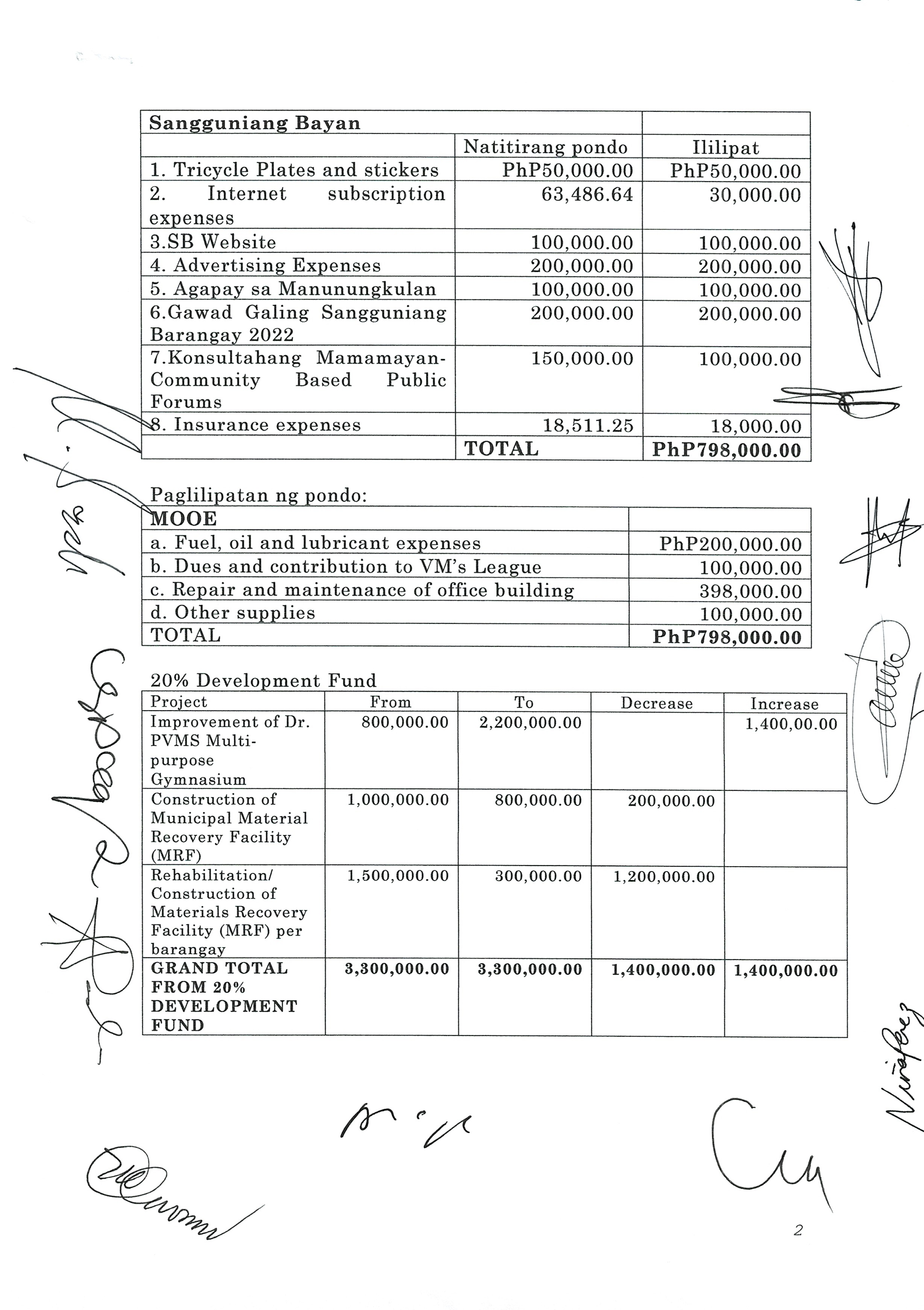 Kautusang naglilipat ng pondo sa ilalim ng 20% development fund na nagkakahalaga ng pitong milyon at siyam na daang libong piso (PHP7,900,000.00)