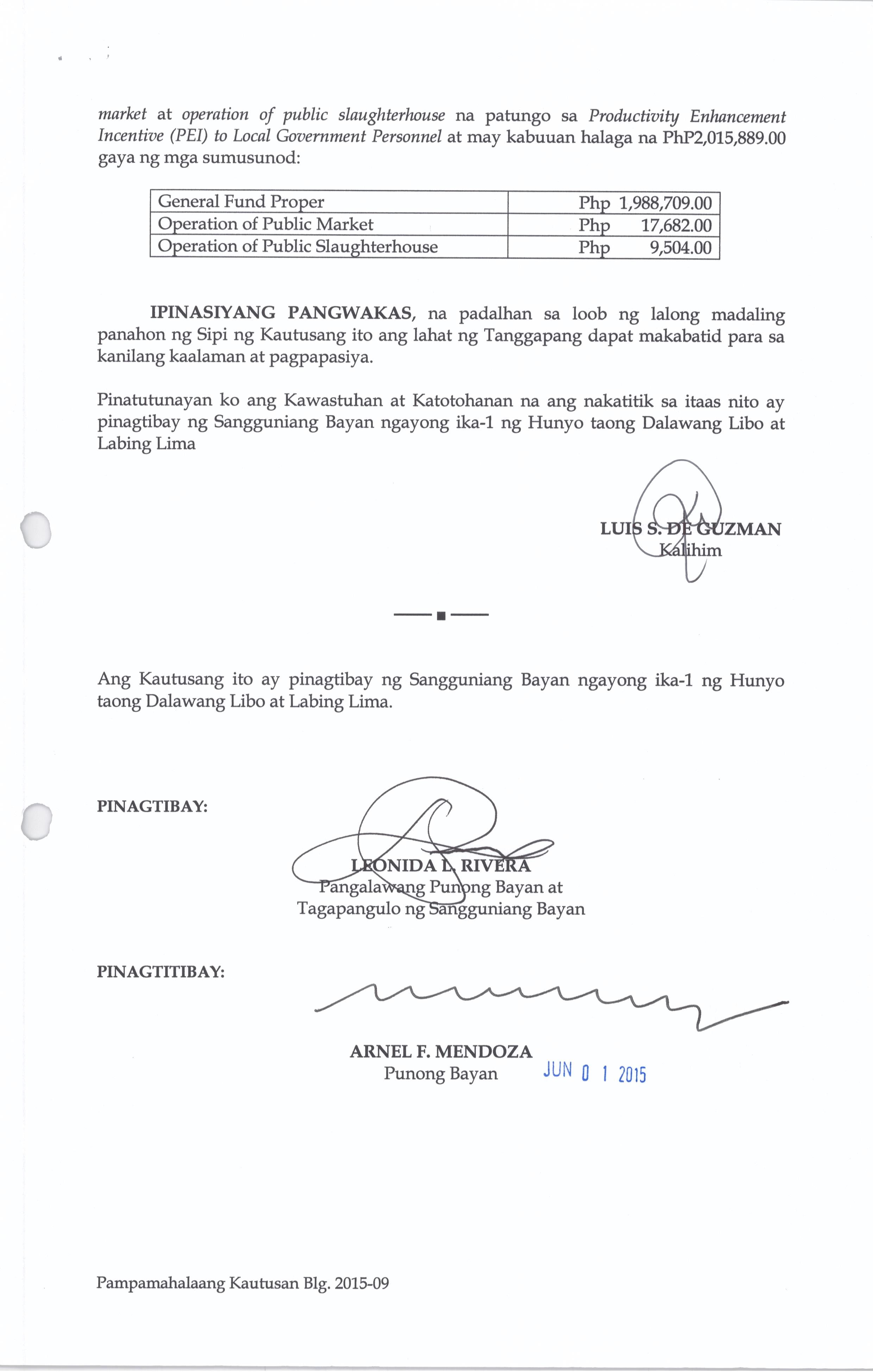 PAMBAYANG KAUTUSAN BLG. 2015-09